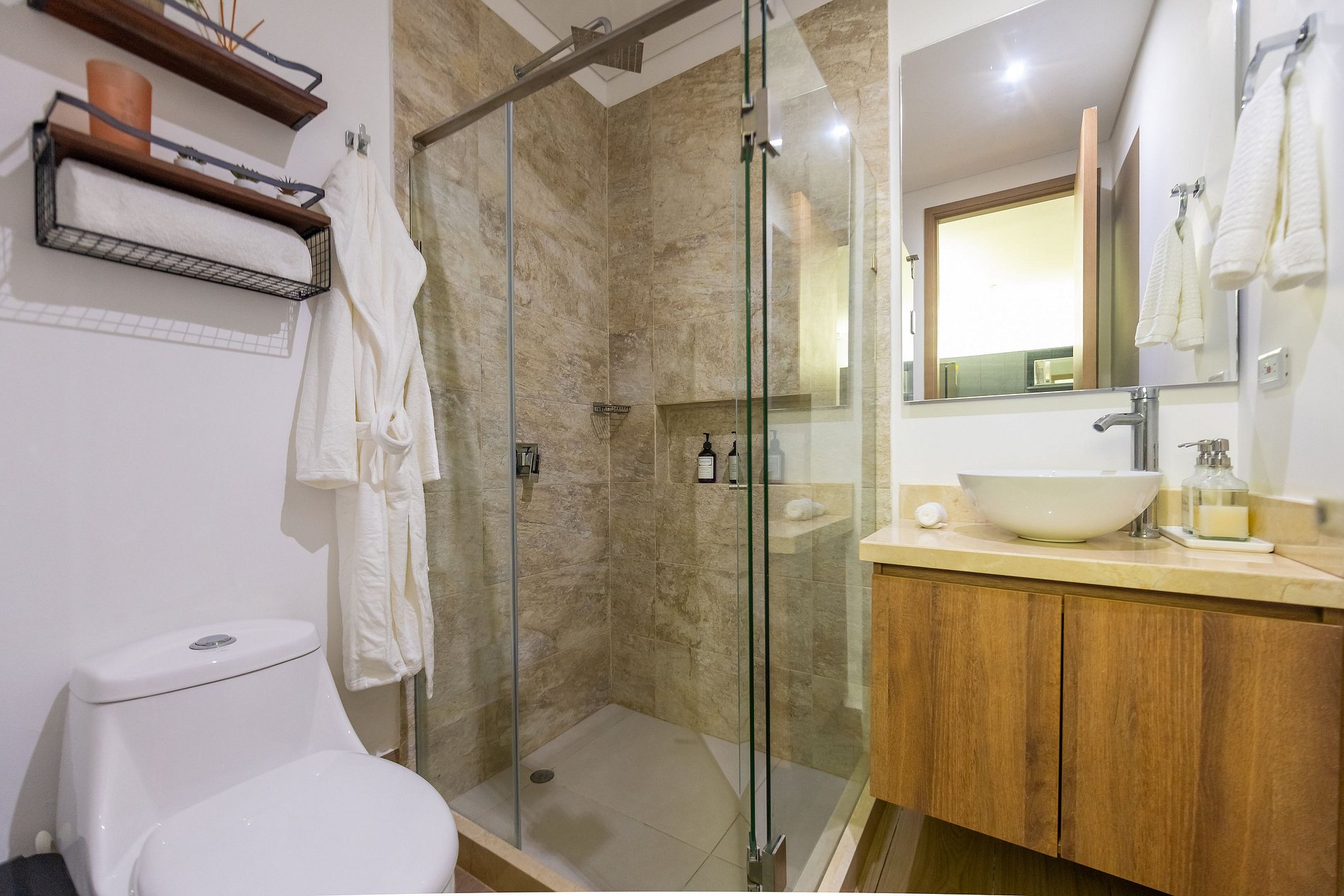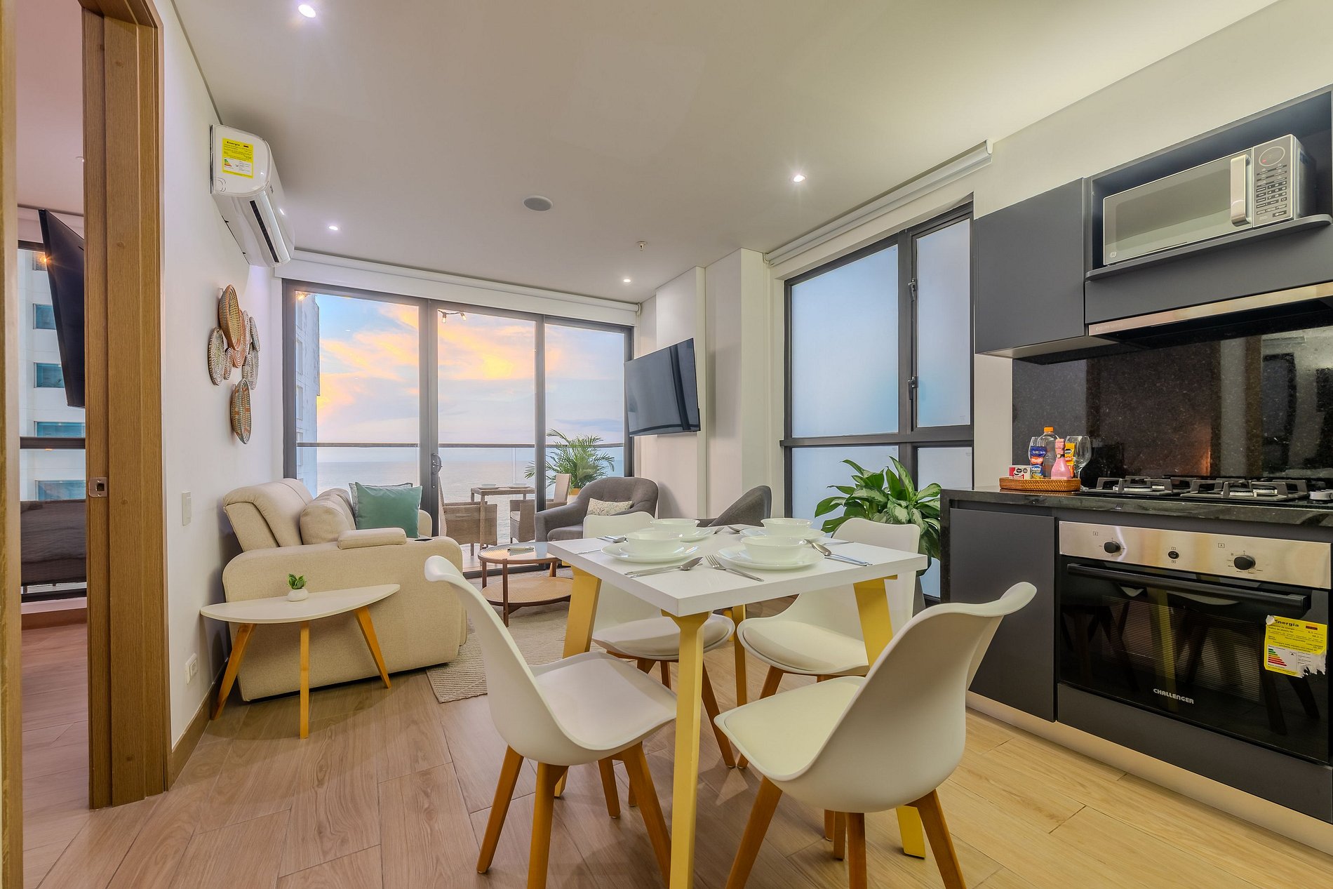 Disfruta este exclusivo y elegante apartamento nuevo en el condominio "Murano Centro" en el piso 11 con vista al Mar Caribe! Disfruta de la espectacular playa que está a una cuadra del edificio! Cuenta con todo lo necesario para pasar una estancia inolvidable. CONECTIVIDAD PREMIUM: - Conexión a internet banda ancha de 300mb - Ideal para trabajo remoto o streaming - Conexión estable y confiable COCINA COMPLETAMENTE EQUIPADA: - Cocina completamente dotada - Lavadora y secadora (2 en 1) - Calentador de agua SALA DE ESTAR CON AIRE ACONDICIONADO: - Espacio amplio y confortable - Baño completo en la zona social - Perfecto para relajarse - Sofá cama DOBLE. BALCÓN CON VISTA ESPECTACULAR: - Balcón con dos tipos de mobiliario: - 4 sillas exteriores y mesa - Mesa de centro exterior - Perfecto para disfrutar de una copa de vino con la espectacular vista al Mar Caribe - Ideal para disfrutar de un café, un desayuno o una charla mientras disfrutas el paisaje HABITACIÓN PRINCIPAL: - Cama queen - Smart TV de 55" - Aire acondicionado - Closet - Baño completo privado SEGUNDA HABITACIÓN: - 2 Cama Sencillas (1.20) - Smart TV de 44" - Aire acondicionado AMENITIES COMPLETOS: - Almohadas, toallas, sábanas y cobijas - Shampoo, acondicionador, jabón corporal y jabón para manos APARTAMENTO SOSTENIBLE Y EFICIENTE: Disfruta de un ambiente sostenible y eficiente, donde podrás reducir tu consumo de energía y contribuir al cuidado del medio ambiente. ¡Vive de manera responsable y cómoda en este alojamiento lleno de innovación y tecnología! SISTEMA DE AHORRO DE ENERGÍA TIPO HOTELERO: Este apartamento cuenta con un moderno sistema de ahorro de energía tipo hotelero. Al momento de su llegada se le enviará la clave para abrir una caja de seguridad donde se encuentra la tarjeta que abre la cerradura y activa el suministro de energía. IMPORTANTE: - No se permiten visitantes, ni cambios o adiciones de huéspedes - Solo podrán ingresar las personas registradas al momento de la reserva. NO INCLUIDO EN LA TARIFA: - $20.000 (5 dólares) por huésped, correspondiente a pulsera que los identifica como huéspedes del edificio