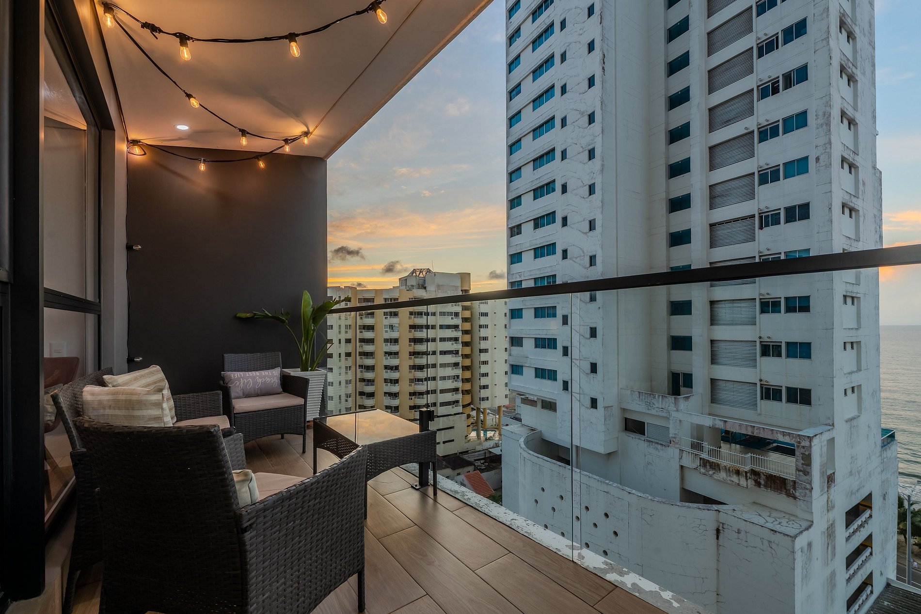 Disfruta este exclusivo y elegante apartamento nuevo en el condominio "Murano Centro" en el piso 11 con vista al Mar Caribe! Disfruta de la espectacular playa que está a una cuadra del edificio! Cuenta con todo lo necesario para pasar una estancia inolvidable. CONECTIVIDAD PREMIUM: - Conexión a internet banda ancha de 300mb - Ideal para trabajo remoto o streaming - Conexión estable y confiable COCINA COMPLETAMENTE EQUIPADA: - Cocina completamente dotada - Lavadora y secadora (2 en 1) - Calentador de agua SALA DE ESTAR CON AIRE ACONDICIONADO: - Espacio amplio y confortable - Baño completo en la zona social - Perfecto para relajarse - Sofá cama DOBLE. BALCÓN CON VISTA ESPECTACULAR: - Balcón con dos tipos de mobiliario: - 4 sillas exteriores y mesa - Mesa de centro exterior - Perfecto para disfrutar de una copa de vino con la espectacular vista al Mar Caribe - Ideal para disfrutar de un café, un desayuno o una charla mientras disfrutas el paisaje HABITACIÓN PRINCIPAL: - Cama queen - Smart TV de 55" - Aire acondicionado - Closet - Baño completo privado SEGUNDA HABITACIÓN: - 2 Cama Sencillas (1.20) - Smart TV de 44" - Aire acondicionado AMENITIES COMPLETOS: - Almohadas, toallas, sábanas y cobijas - Shampoo, acondicionador, jabón corporal y jabón para manos APARTAMENTO SOSTENIBLE Y EFICIENTE: Disfruta de un ambiente sostenible y eficiente, donde podrás reducir tu consumo de energía y contribuir al cuidado del medio ambiente. ¡Vive de manera responsable y cómoda en este alojamiento lleno de innovación y tecnología! SISTEMA DE AHORRO DE ENERGÍA TIPO HOTELERO