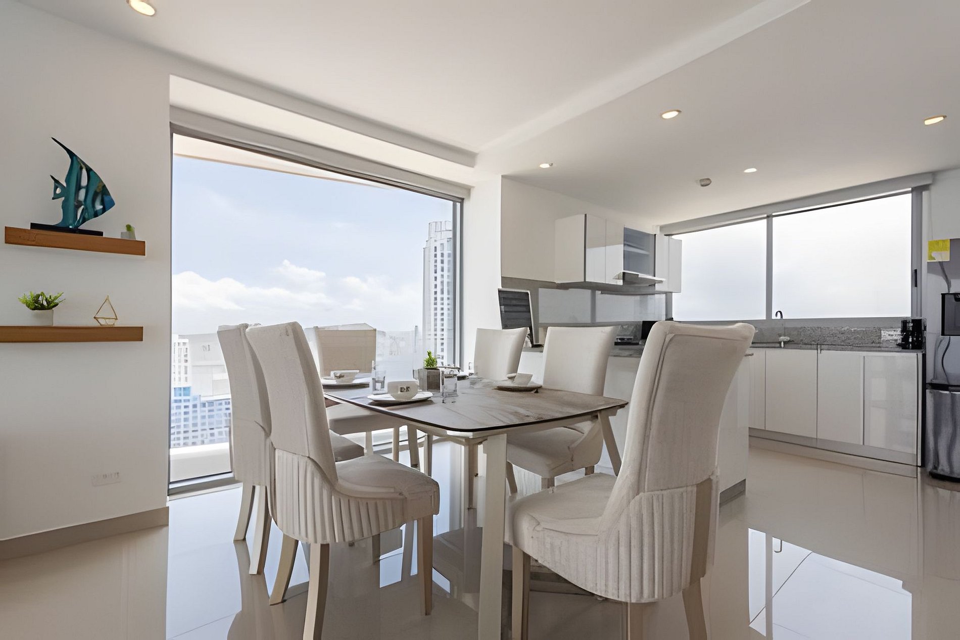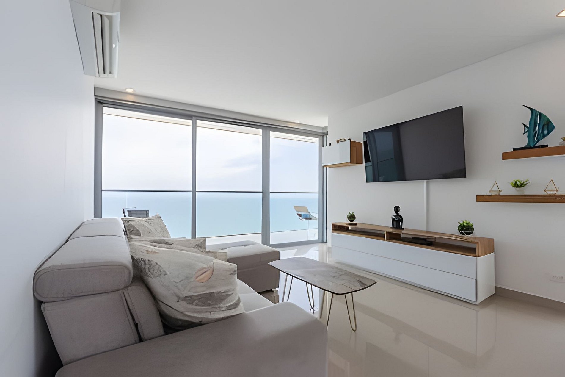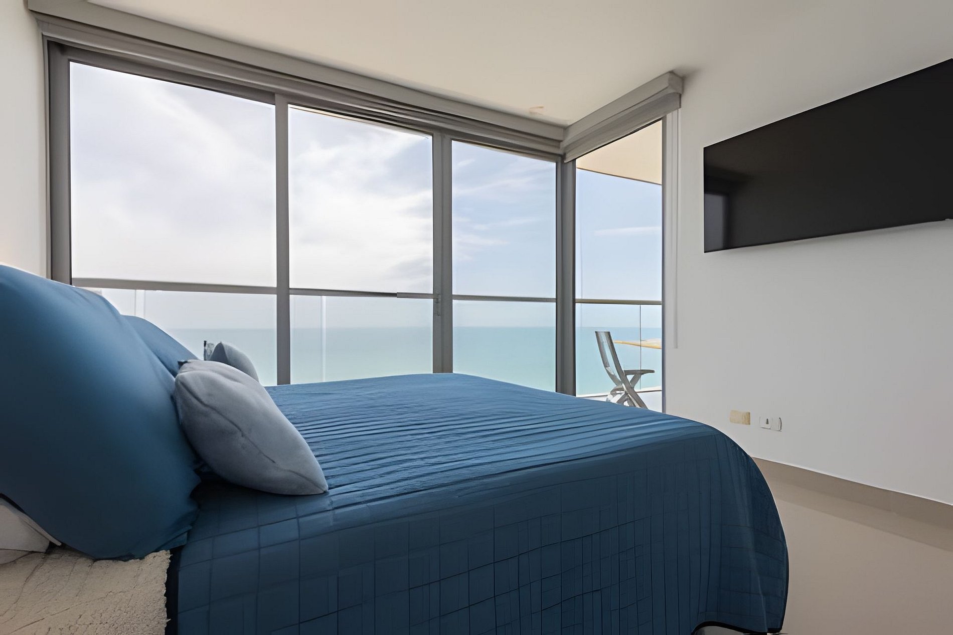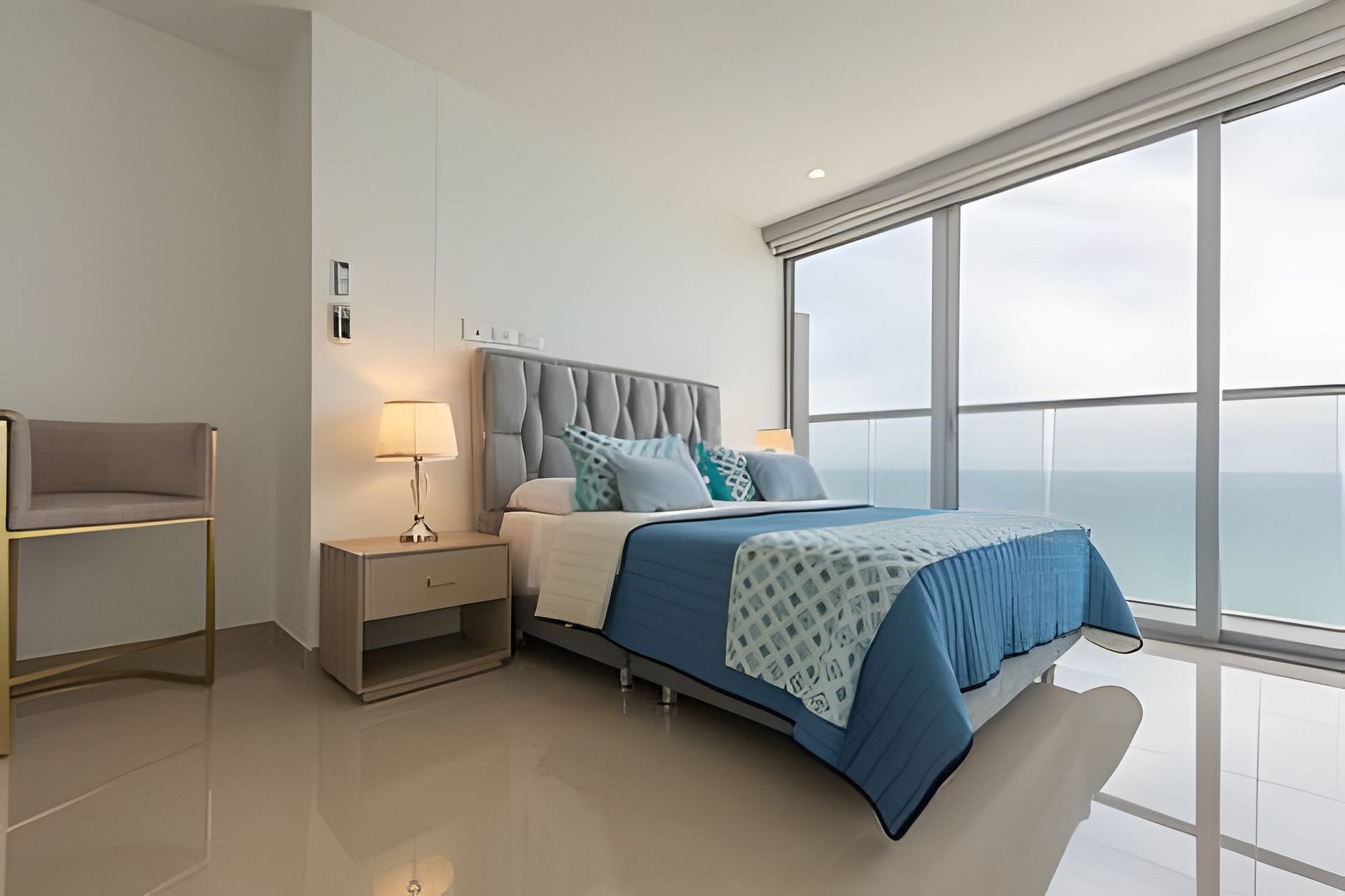 Enjoy with your family or friends this charming apartment on the 27th floor with panoramic views of the sea, the historic center and the bay of Cartagena. The “Morros City” building is located in “Bocagrande”, one of the best located and most exclusive neighborhoods in the city, enjoying direct access to the beach, restaurants, shopping centers, parks, pharmacies, supermarkets, casinos. A few minutes by taxi from the Historic Center. Beautiful and modern apartment, it has all the necessary amenities for you to have an unforgettable stay. Enjoy the spectacular panoramic view that this apartment offers you and all the comforts of this condominium. The beach is in front of the building! Full kitchen, dining room and living room with air conditioning, television and double sofa bed. Spectacular balcony with an outdoor room where you can enjoy a coffee, breakfast or watch a beautiful sunset. Master bedroom with air conditioning, extra double bed (1.80m), television, full bathroom, closet and access to the balcony. Room 2: air conditioning, extra double bed (1.80m), two armchairs, access to the balcony, full bathroom and closet. Room 3: air conditioning, 2 single beds (one of these beds is a trundle bed, that is, a bed can be removed from the bottom for 3 people in total), full bathroom and closet. Work area with washing machine, dryer and water heater. If you need cleaning service during your stay, you must notify us 24 hours in advance. This service has an additional cost 350mb fiber optic Wifi that allows you a fast and stable connection!