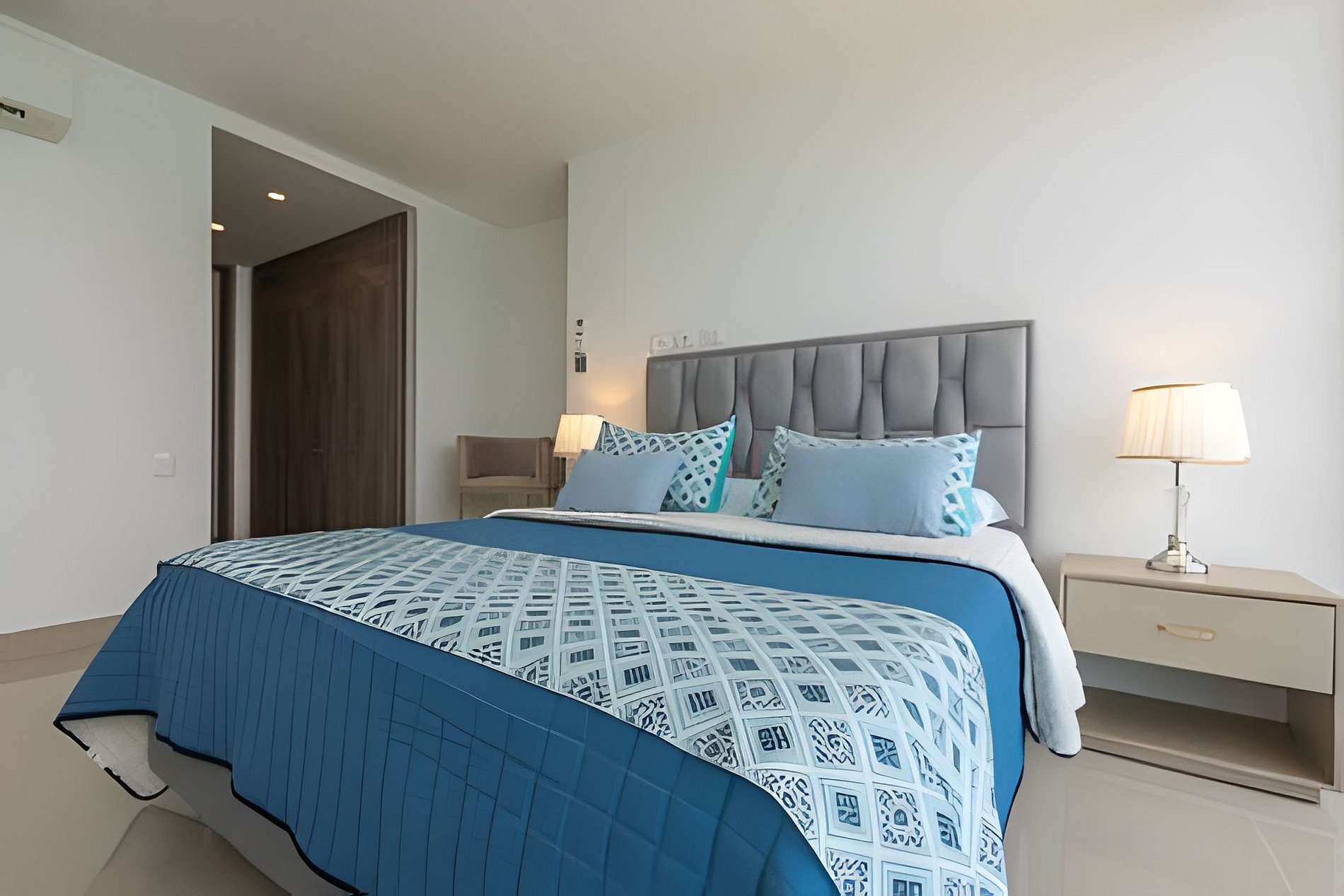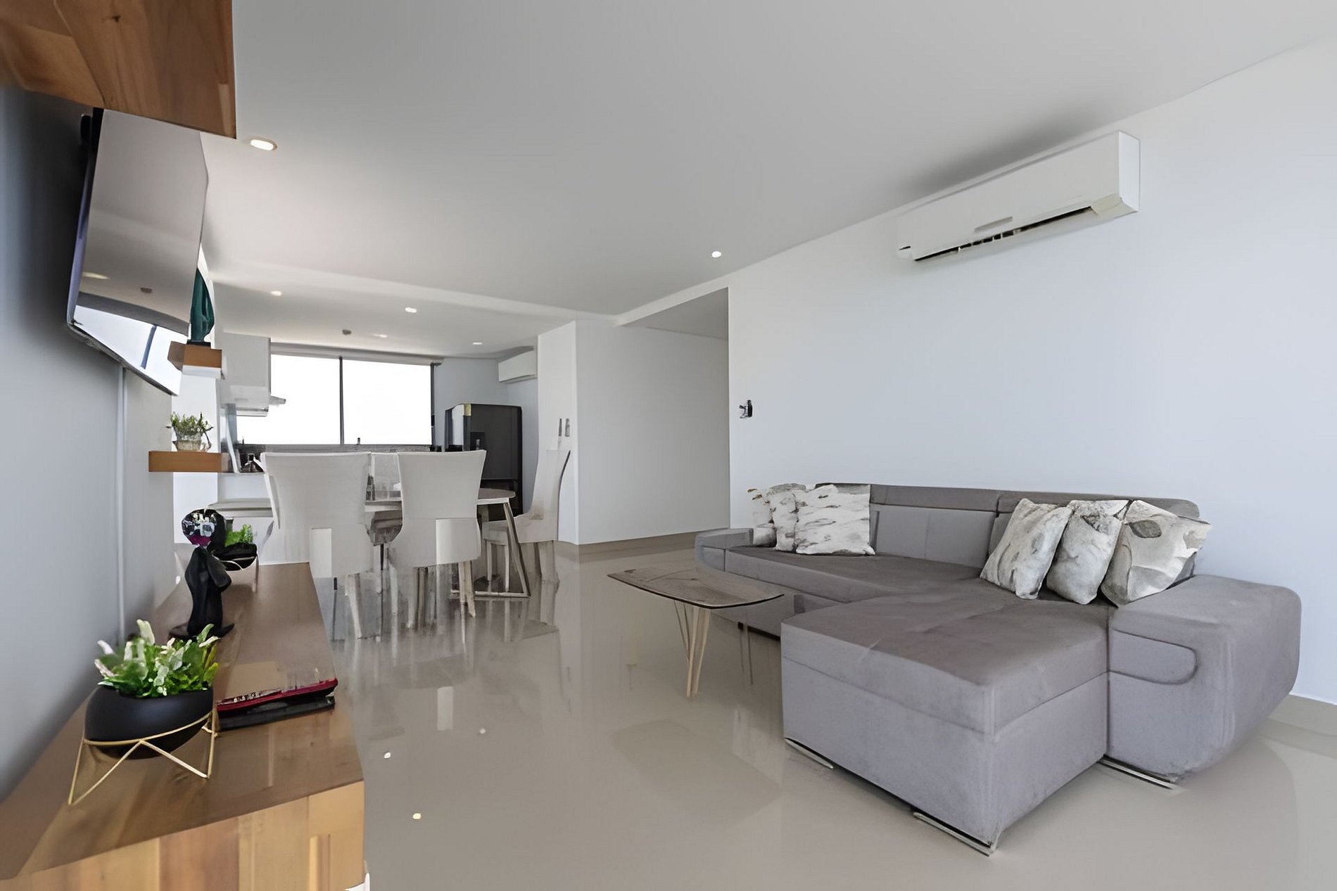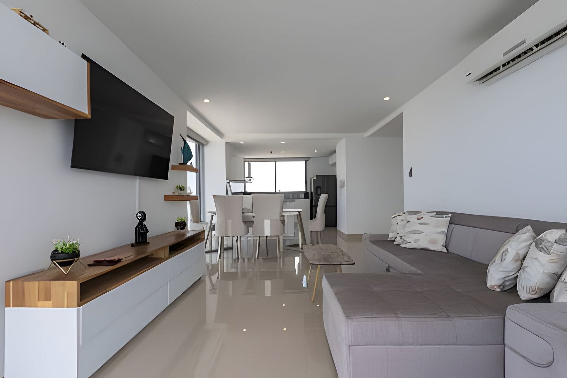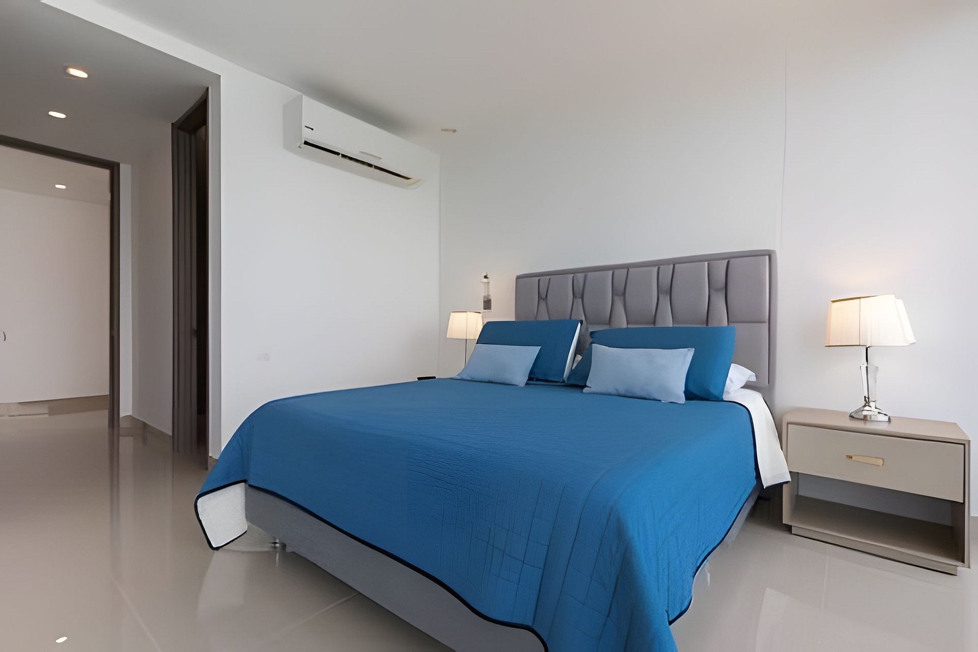 Enjoy with your family or friends this charming apartment on the 27th floor with panoramic views of the sea, the historic center and the bay of Cartagena. The “Morros City” building is located in “Bocagrande”, one of the best located and most exclusive neighborhoods in the city, enjoying direct access to the beach, restaurants, shopping centers, parks, pharmacies, supermarkets, casinos. A few minutes by taxi from the Historic Center. Beautiful and modern apartment, it has all the necessary amenities for you to have an unforgettable stay. Enjoy the spectacular panoramic view that this apartment offers you and all the comforts of this condominium. The beach is in front of the building! Full kitchen, dining room and living room with air conditioning, television and double sofa bed. Spectacular balcony with an outdoor room where you can enjoy a coffee, breakfast or watch a beautiful sunset. Master bedroom with air conditioning, extra double bed (1.80m), television, full bathroom, closet and access to the balcony. Room 2: air conditioning, extra double bed (1.80m), two armchairs, access to the balcony, full bathroom and closet. Room 3: air conditioning, 2 single beds (one of these beds is a trundle bed, that is, a bed can be removed from the bottom for 3 people in total), full bathroom and closet. Work area with washing machine, dryer and water heater. If you need cleaning service during your stay, you must notify us 24 hours in advance. This service has an additional cost 350mb fiber optic Wifi that allows you a fast and stable connection!