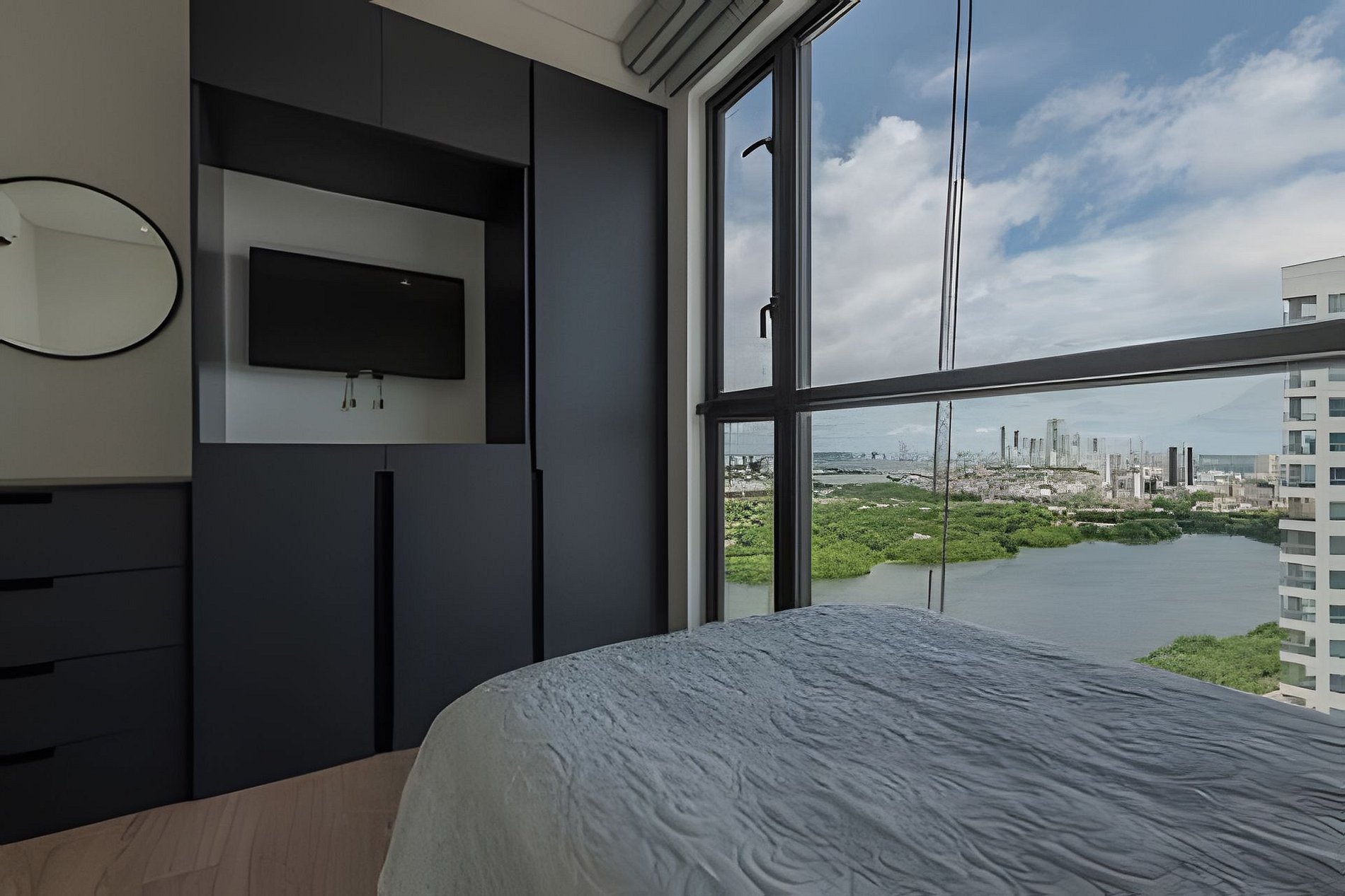 Disfruta este exclusivo y elegante apartamento nuevo en el condominio “Murano Centro” en el piso 21, tiene una vista panorámica increíble y cautivadora al Castillo de San Felipe, Ciénaga de La Virgen, Centro histórico y al Mar Caribe! Disfruta de la espectacular playa que está a una cuadra del edificio! Cuenta con todo lo necesario para pasar una estadía inolvidable.