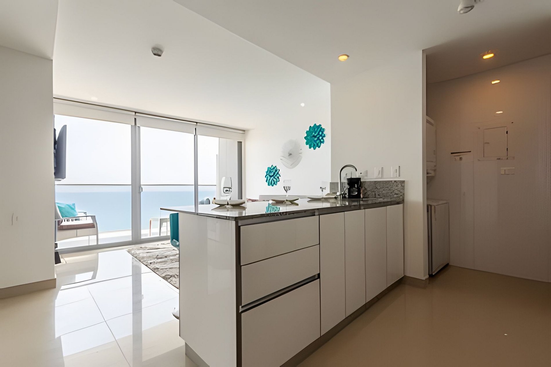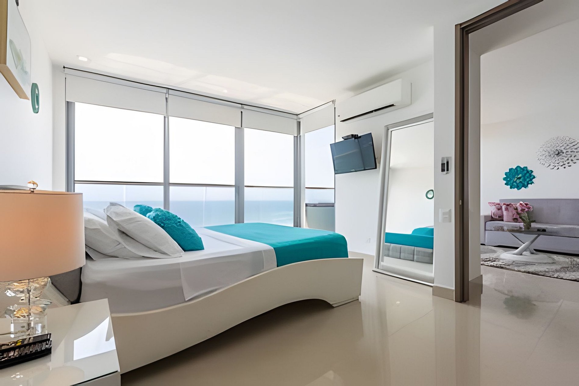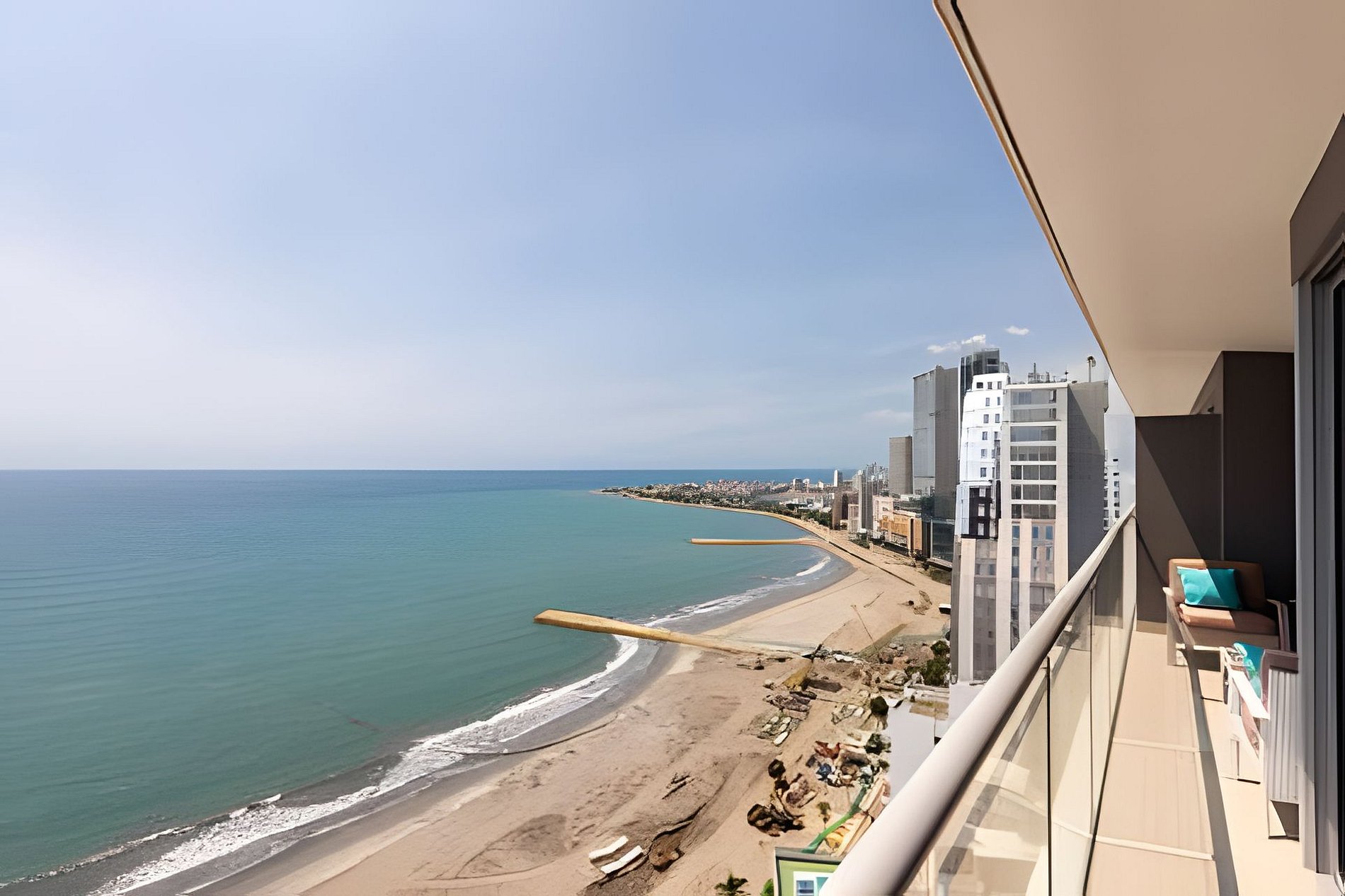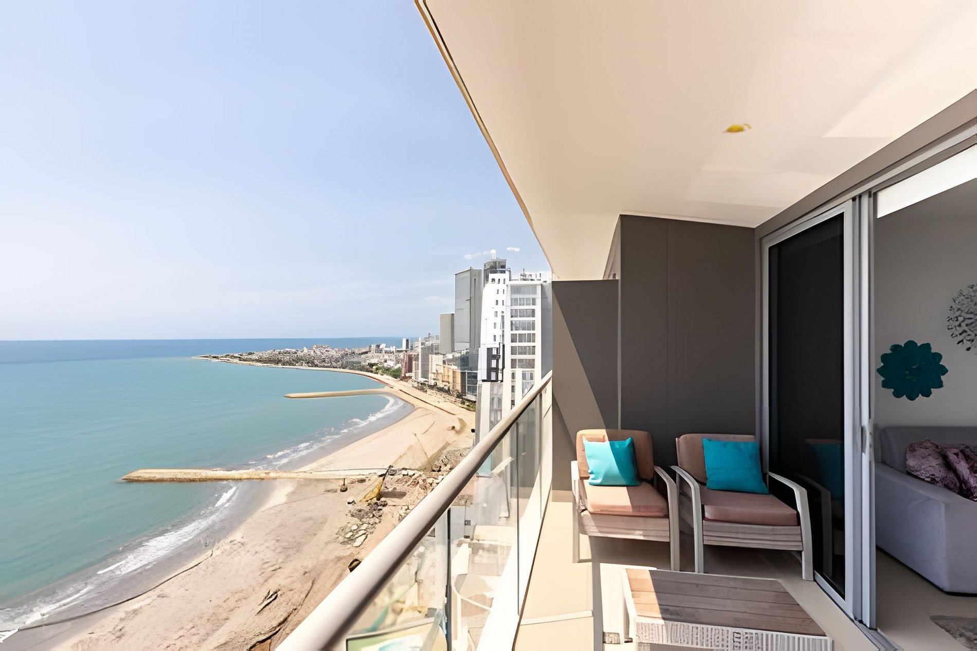 This apartment on the 26th floor has an incredible and captivating view. In front you have the Caribbean Sea and on the side you can see the Historic Center of the city. This apartment is 66 square meters (217 feet) and has everything you need for an unforgettable stay. Enjoy the spectacular beach that is in front of the building! It has a full kitchen, washing machine and dryer, living room with double sofa bed, air conditioning, Smart TV, full bathroom in the social area, balcony with chairs and an outdoor table so you can enjoy a coffee, breakfast or a chat. The main room also has direct ocean views, queen bed, Smart TV, air conditioning, closets and full bathroom. Pillows, towels, sheets and blankets. There is wifi and it is ideal for short or long stays. If you need cleaning service during your stay, you must notify us 24 hours in advance. This service has an additional cost. This apartment has a modern hotel-type energy saving system. Upon arrival you will be sent the key to open a safe where the card that opens the lock and activates the power supply is located. If you lose the card you will have to pay a value of US60.