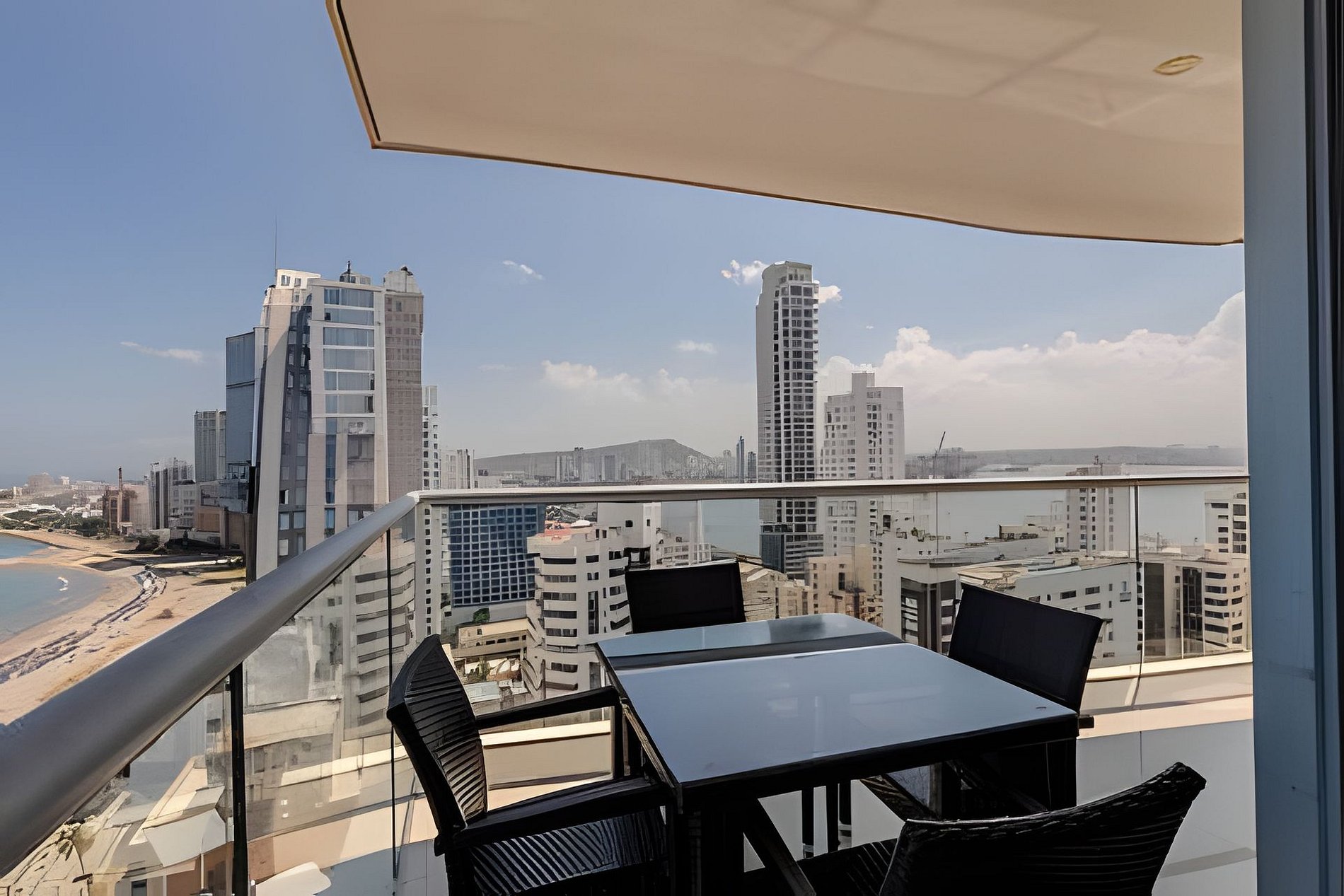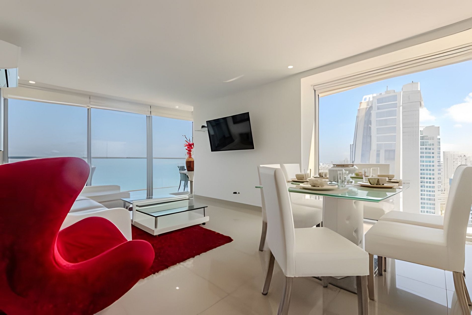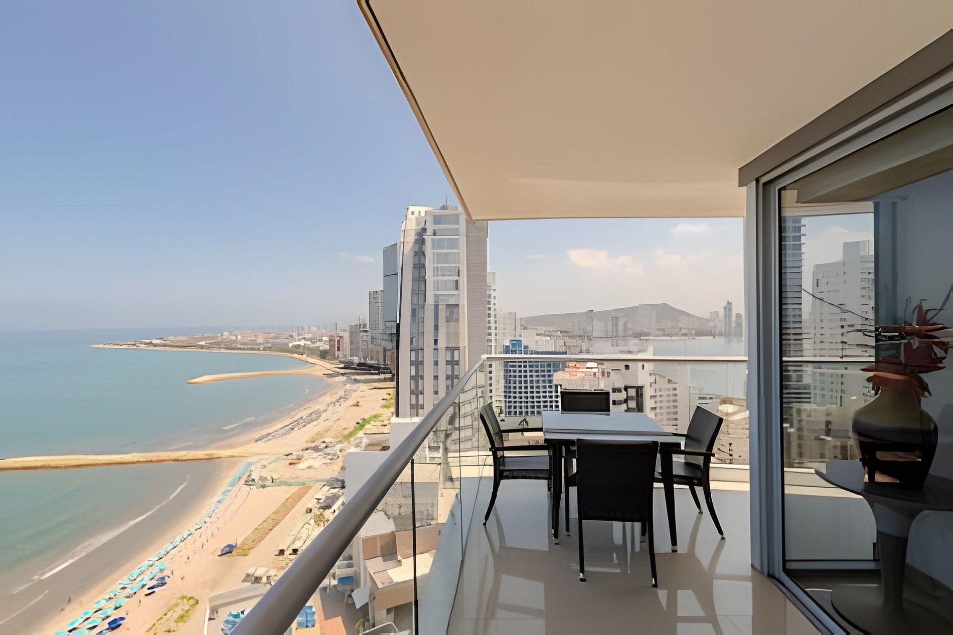 Enjoy with your family or friends this charming apartment on the 22nd floor with panoramic views of the sea, the historic center and the bay of Cartagena. The "Morros City" building is located in "Bocagrande", one of the best located and most exclusive neighborhoods in the city, enjoying direct access to the beach, restaurants, shopping centers, parks, pharmacies, supermarkets, casinos. 5 minutes by taxi from the historic center. Beautiful and modern apartment, it has all the necessary amenities for you to have an unforgettable stay. Enjoy the spectacular panoramic view that this apartment offers you and all the comforts of this condominium. The beach is in front of the building! Full kitchen, dining room and living room with air conditioning, television. Spectacular balcony with an outdoor dining area where you can enjoy coffee, have breakfast or watch a beautiful sunset. Master bedroom with queen bed, television, full bathroom, closet and access to the balcony. Room 2: air conditioning, television, two 1.20m beds, access to the balcony, full bathroom and closet. Bedroom 3: air conditioning, queen bed, full bathroom and closet. Work area with washing machine, dryer and water heater. If you need cleaning service during your stay, you must notify us 24 hours in advance; this service has an additional cost. 350 MB fiber optic WiFi Internet connection that allows you a fast and stable connection!