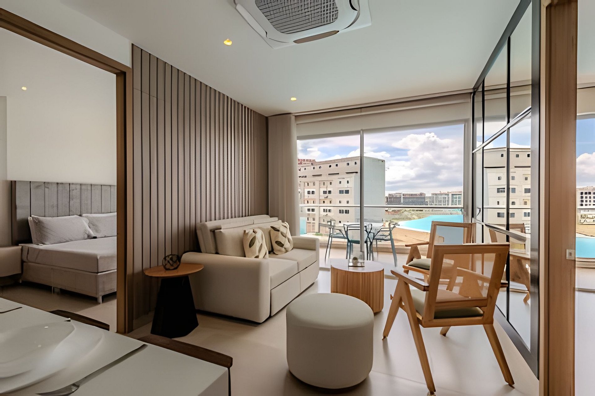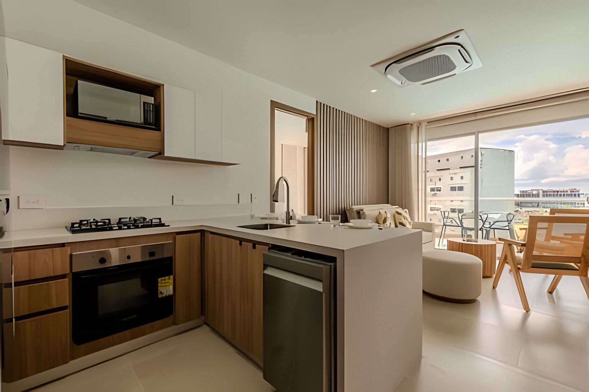 Welcome to our exclusive accommodation in Baia Kristal, designed to offer you a unique and luxurious experience. Our space is carefully decorated with sophisticated design and high-quality finishes, creating a cozy and elegant atmosphere. We offer you all the services and amenities necessary for an unforgettable stay. We invite you to live an experience of luxury and comfort, our apartment has two spacious bedrooms, each with a queen bed and Smart TV, in the living room a spectacular large and comfortable sofa bed, fully equipped integrated kitchen, air conditioning in the bedrooms and living room, work area with washer and dryer (2 in 1) and a beautiful balcony with outdoor furniture so you can enjoy an incredible view of the crystalline lagoon and white beach! Note: although the Baia Kristal condominium is still under construction, the apartment is completely finished and furnished, you will be able to fully enjoy the crystal clear lagoon and its activities, such as kayaking, keep in mind that the work on the condominium is done from Monday to Saturday from 8am to 6pm, we appreciate your understanding.
