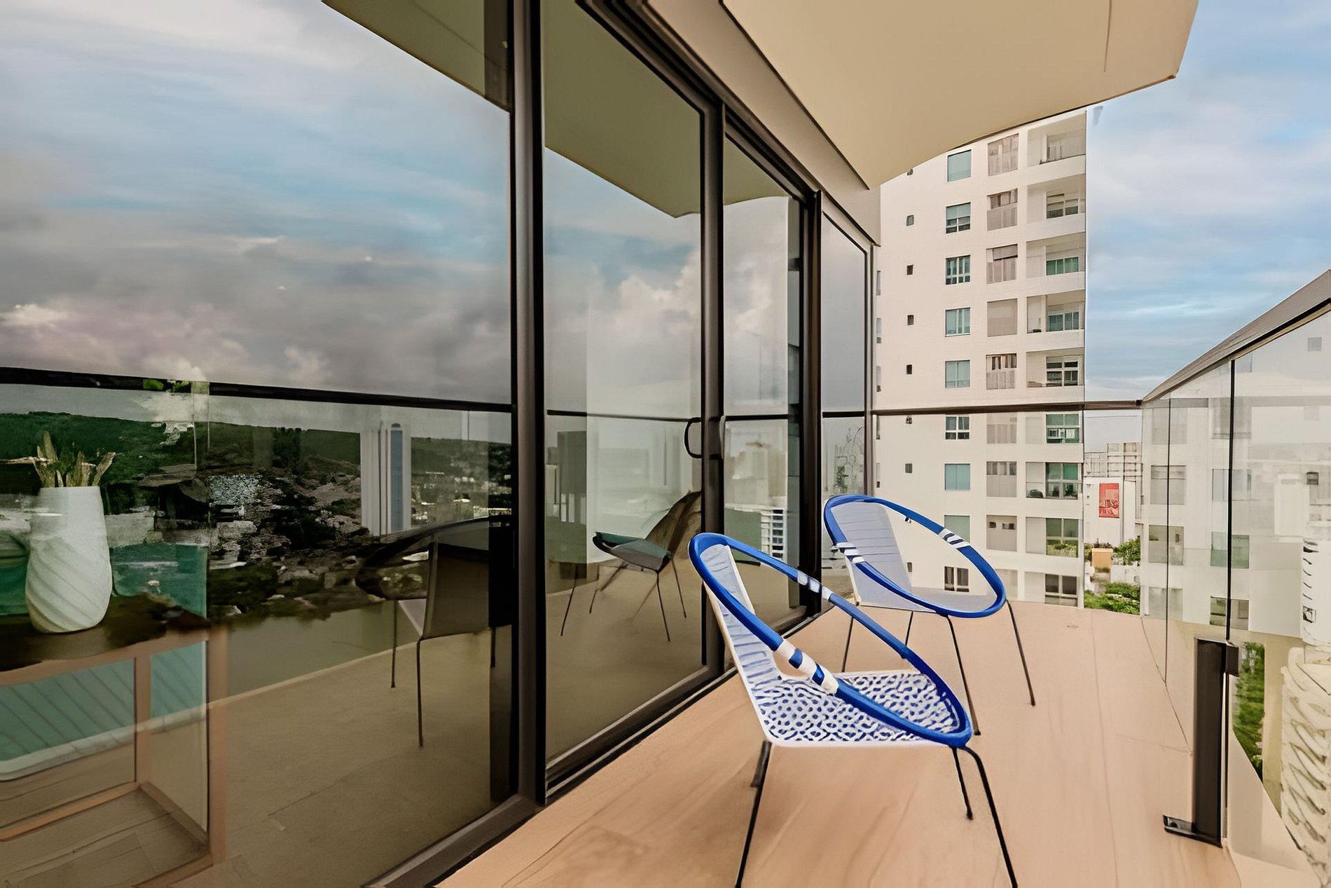 Disfruta de Cartagena desde las alturas en este exclusivo apartamento del piso 21 en Murano Centro. Con vista panorámica al centro histórico, el apartamento cuenta con dos habitaciones equipadas con aire acondicionado y Smart TV, dos baños completos, sala con sofá cama, cocina gourmet totalmente equipada y balcón privado para contemplar la ciudad.
