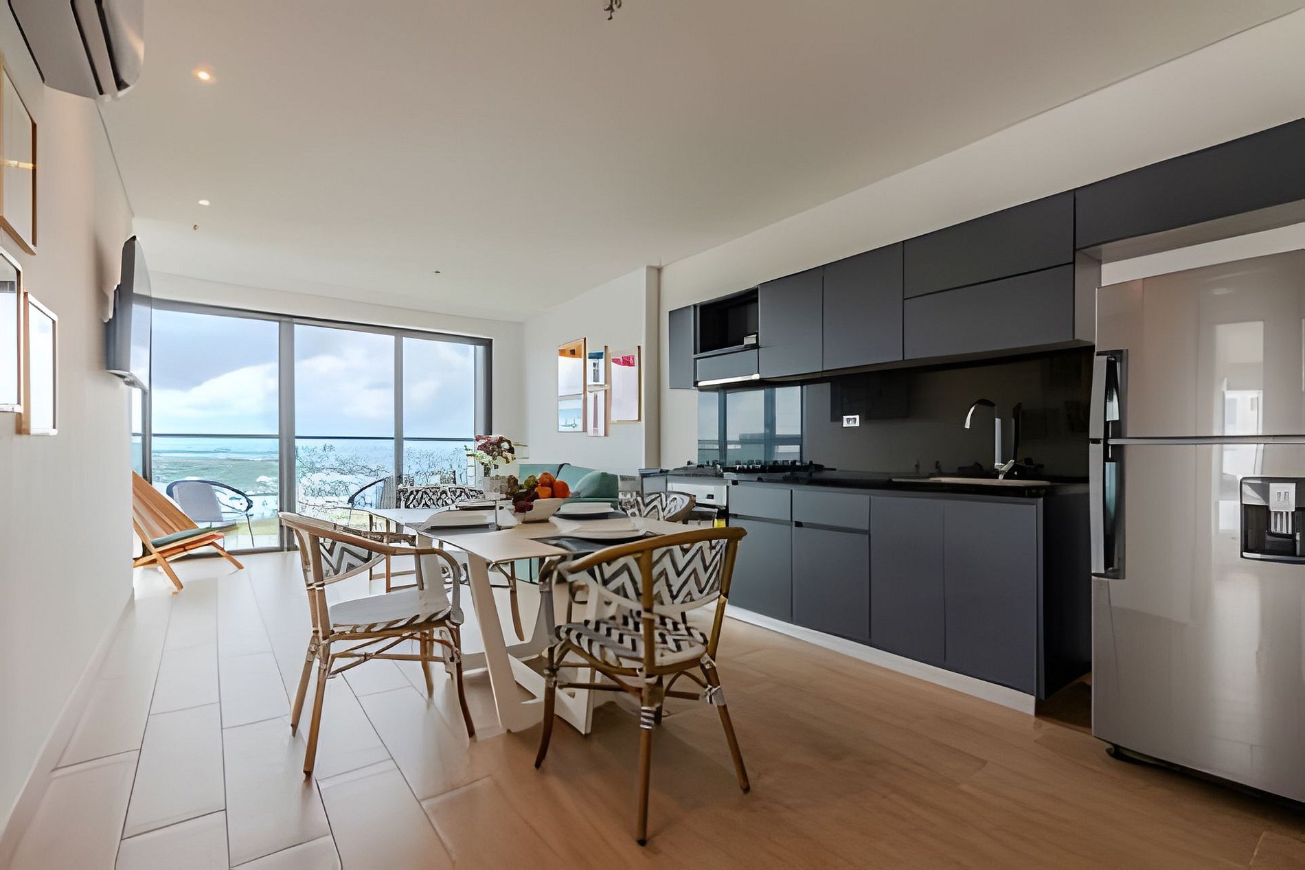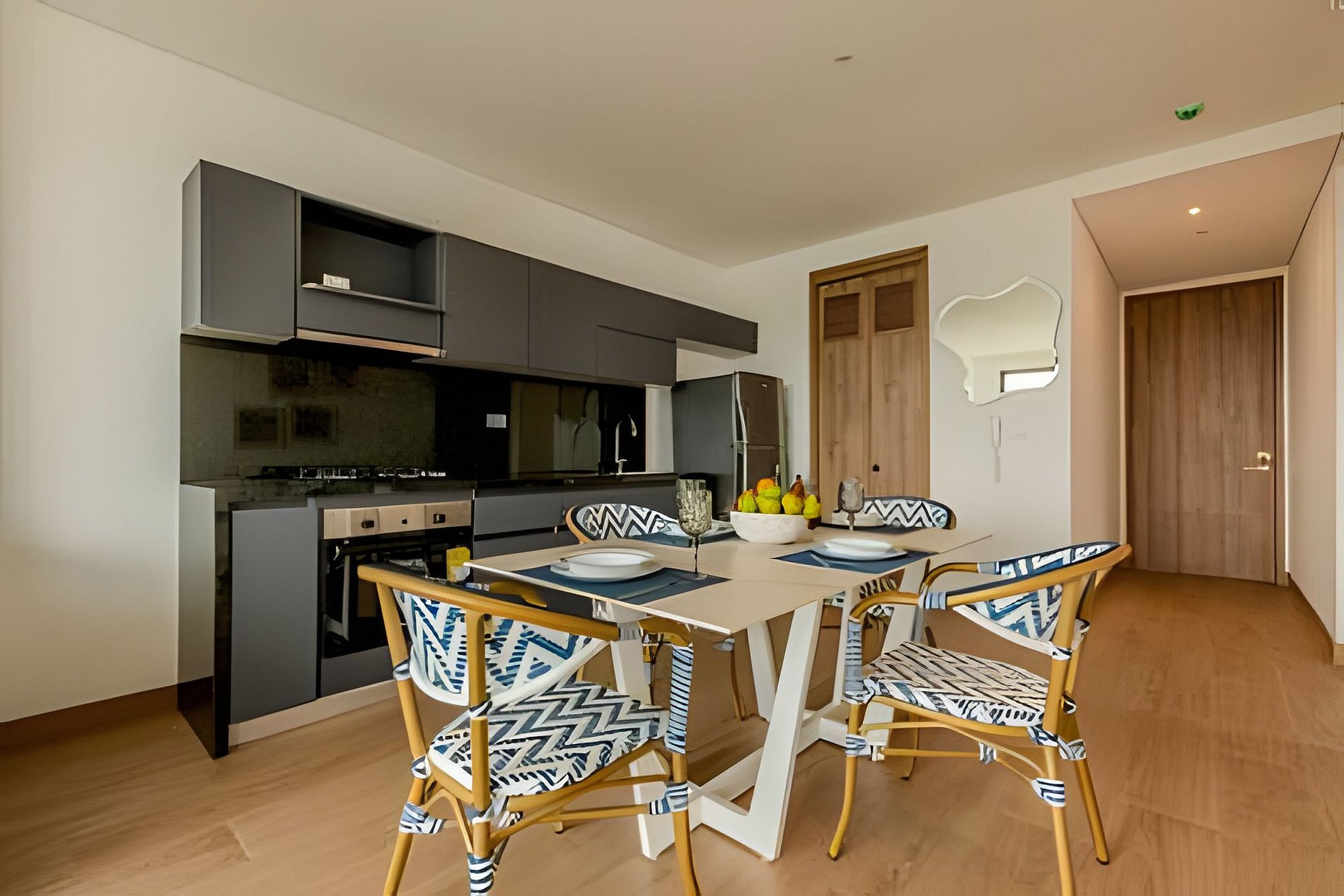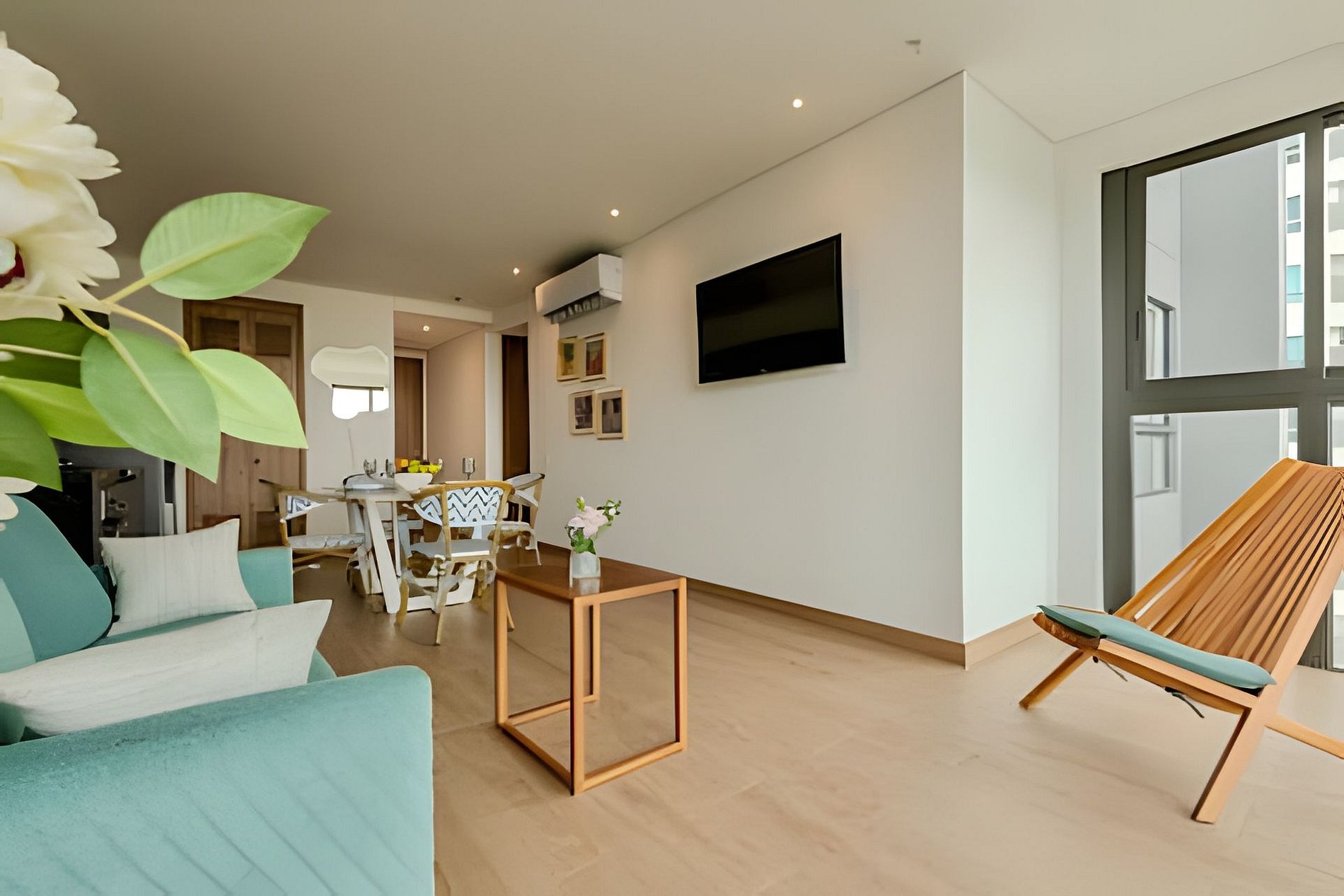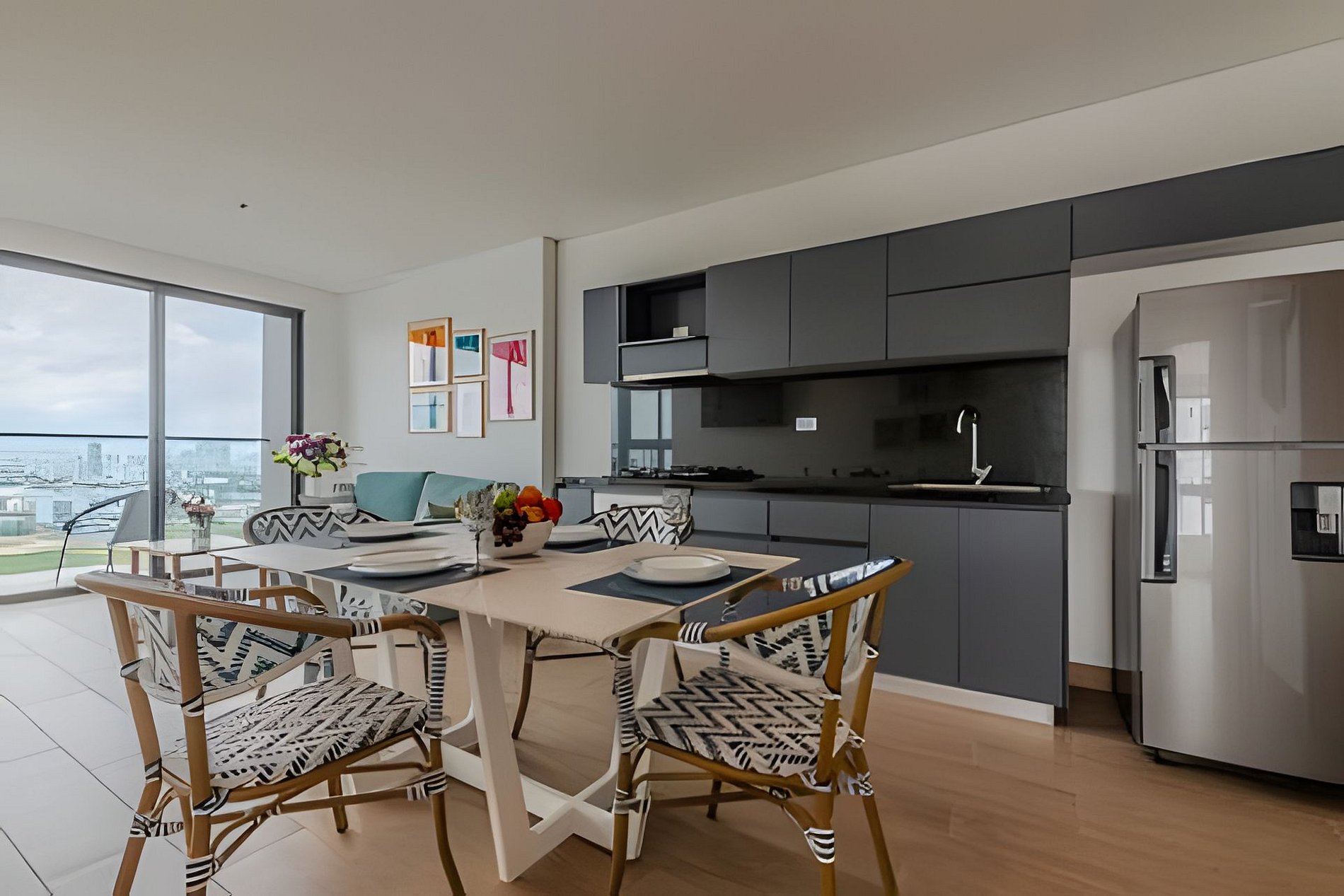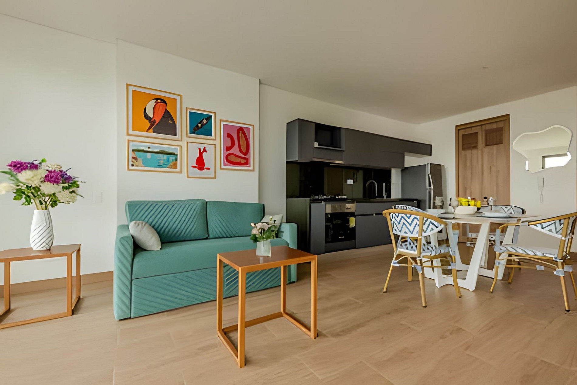 Completamente equipado con WiFi alta velocidad, lavadora, secadora y todos los elementos necesarios para una estadía perfecta. Incluye ropa de cama premium, toallas, artículos de aseo y kit de bienvenida. Capacidad para 6 huéspedes con la comodidad y elegancia que mereces en la ciudad más hermosa de Colombia.