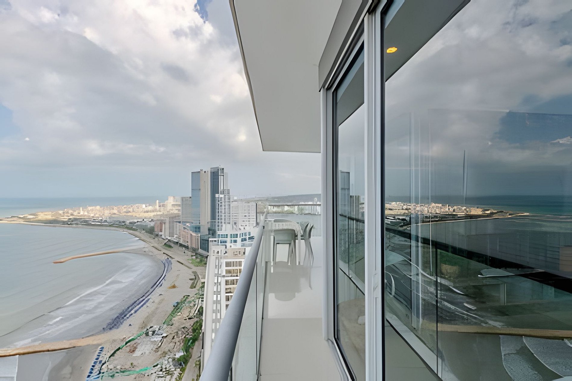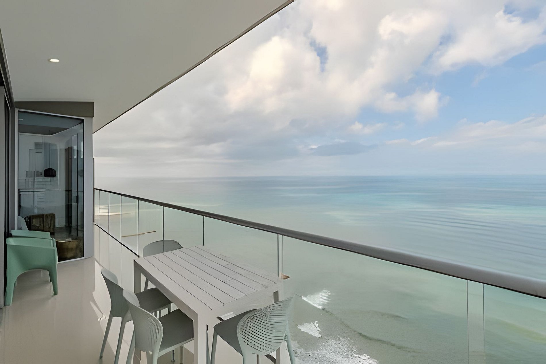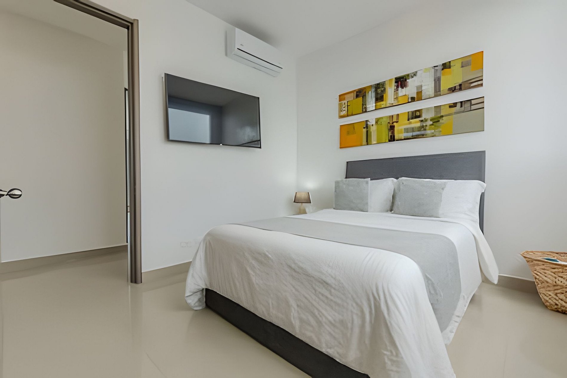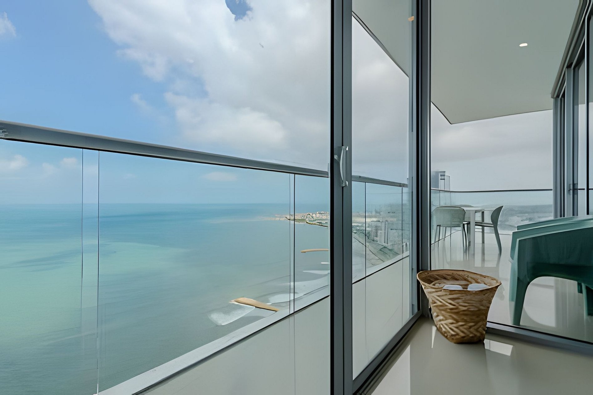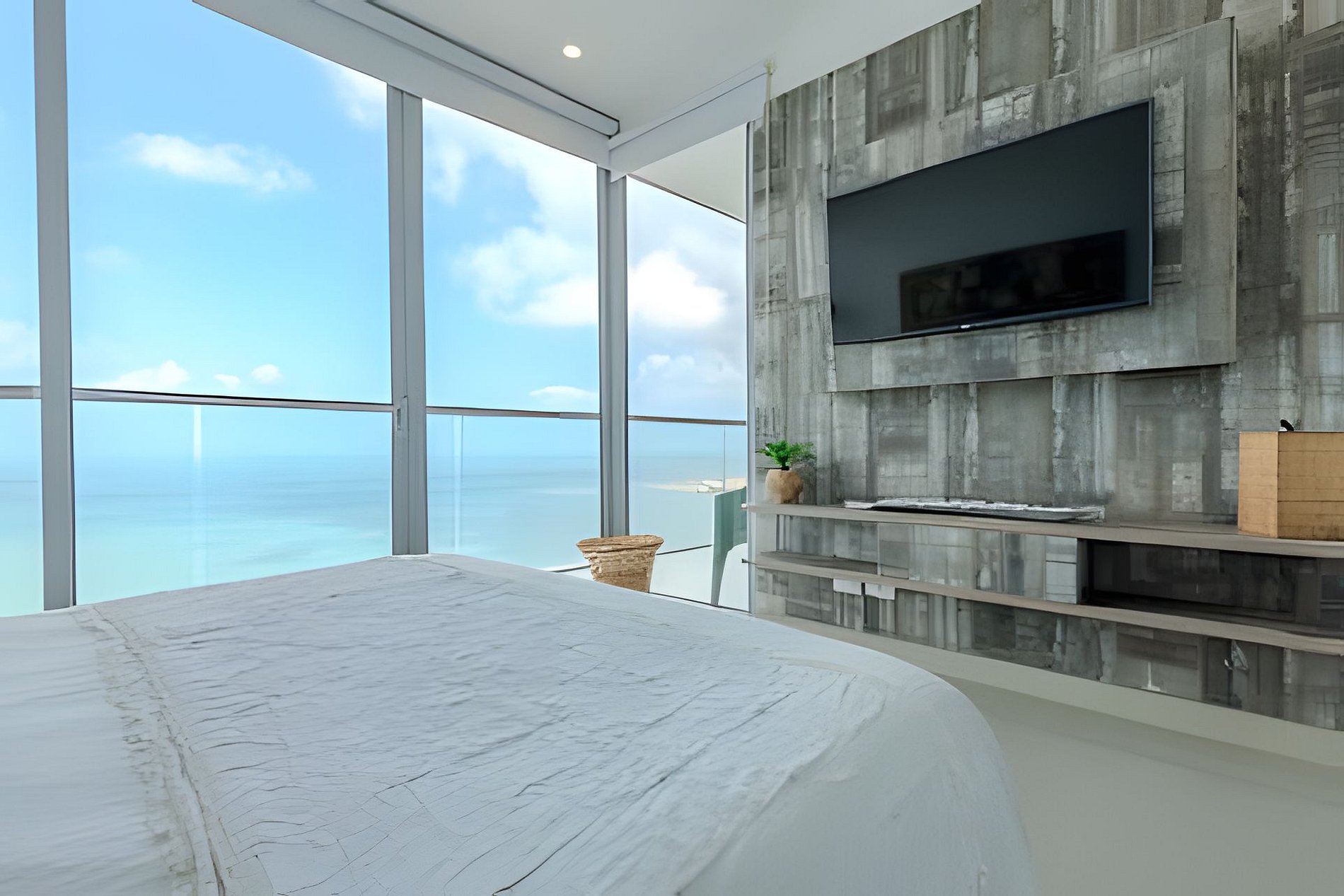 Impressive double-height design, with floor-to-ceiling windows that highlight the beauty and exclusivity of this unit! Enjoy its impressive panoramic view, feel on top of the world by staying in this 40th floor Penthouse with a spacious, open, bright space and a warm and elegant decoration! Our Penthouse has 2 cozy rooms ideal for resting after a day exploring the walled city. Each of the rooms has a full bathroom to provide complete privacy and comfort to all guests. The balcony is one of the most outstanding spaces of this apartment, as it offers an unparalleled view of the sea and a spectacular panoramic view of the walled city, the bay and its surroundings. There is nothing like enjoying a sunset, breakfast, having a cup of coffee or a glass of wine in this outdoor space! You can also enjoy the spectacular beach that is in front of the building! Furnished and equipped with everything you may need, living room with air conditioning, Smart TV, dining room, equipped kitchen, 350mb fiber optic internet that guarantees a fast and stable connection. Master bedroom with air conditioning, SmarTv, double trundle bed (another bed can be removed underneath, see photo), full bathroom and closet. Laundry room with washing machine, dryer and water heater. If you need cleaning service during your stay, you must request it 24 hours in advance. This service has an additional cost. For your convenience, it also includes a garage so you can park your vehicle for free and safely (inform when booking if you are bringing a vehicle). The condominium has 24-hour security, a concierge and a reception with bilingual staff to ensure the peace of mind of all guests. It has a power plant in case of emergency. In short, this apartment has it all: privileged location, large spaces, modern finishes and a wide range of internal and external features that make it ideal for having the best stay. Don't miss the opportunity to stay in this beautiful and exclusive apartment in Cartagena! Make your reservation today and get ready to live an unforgettable vacation in Colombia, we will be happy to help you! Visitors are not allowed in this condominium, changes or additions to the guest list are not allowed, only the people mentioned at the time of reservation can enter.