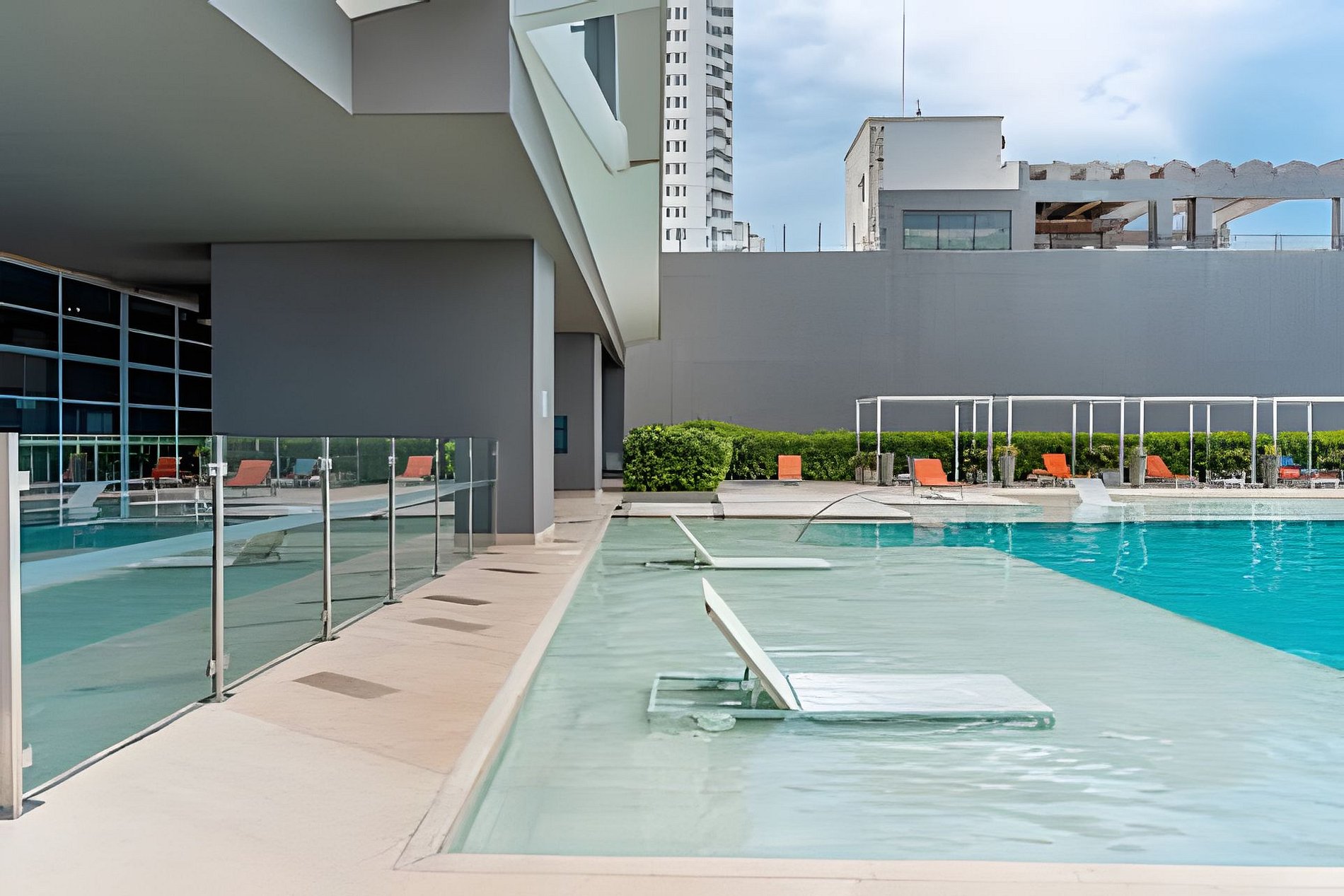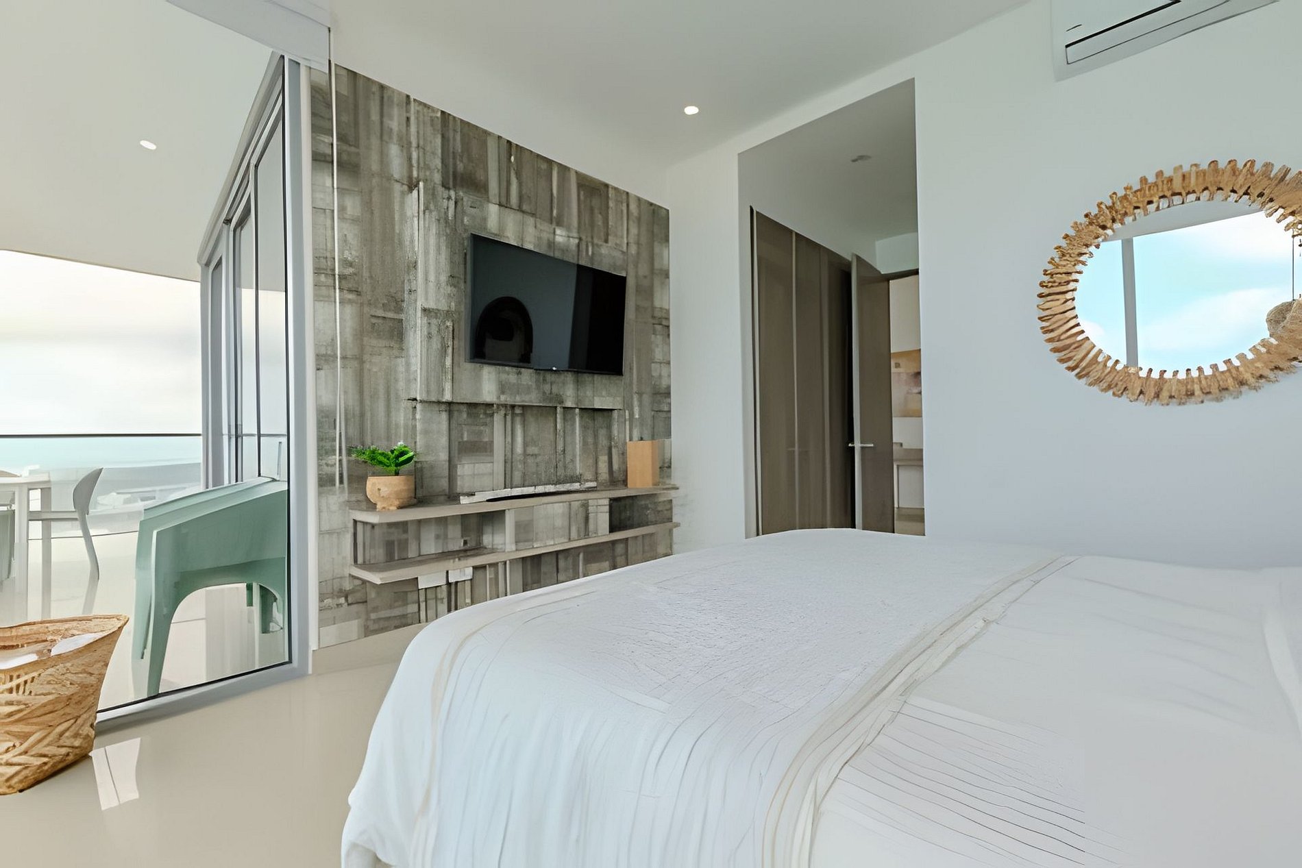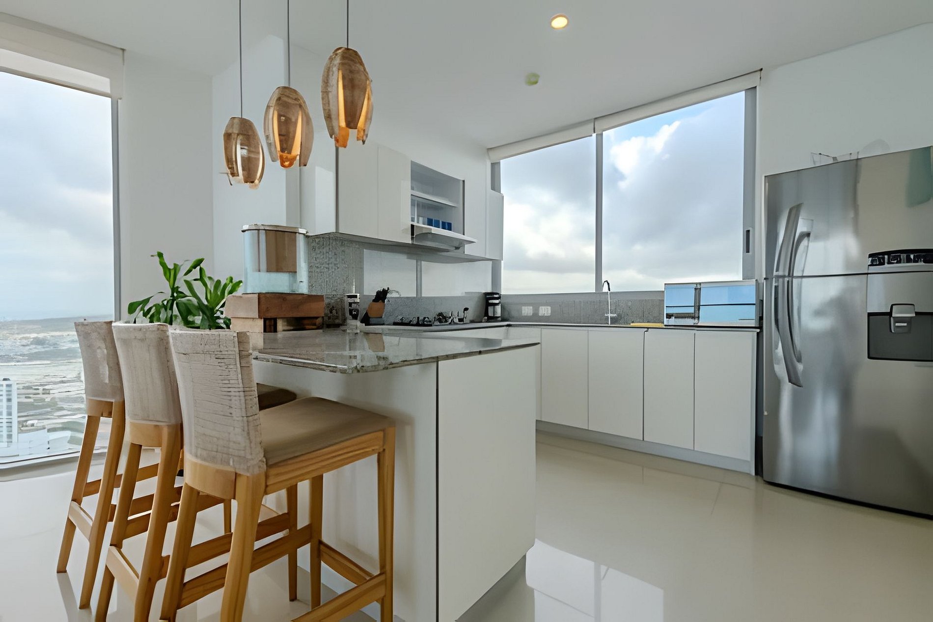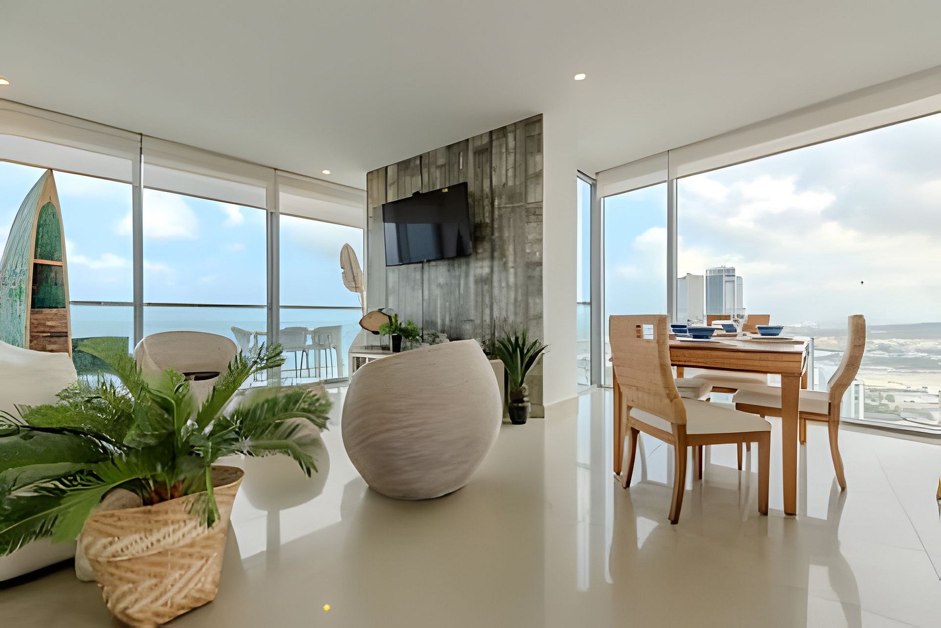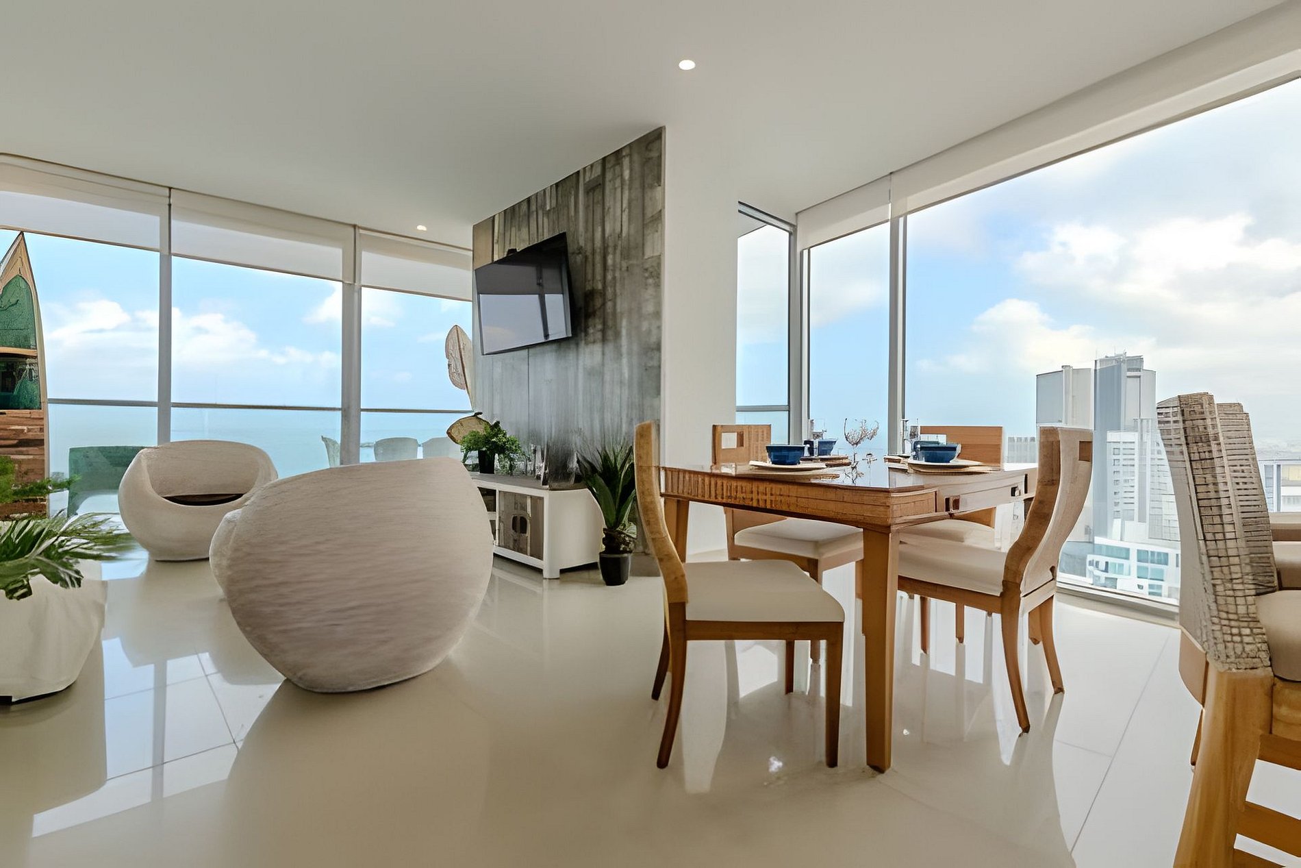 Enjoy the exclusivity and beauty of this double-height Penthouse, with a warm and unique atmosphere in the heart of Cartagena de Indias. Built area of 127 M2, this property is perfect for families or groups of friends who want to live a unique experience in one of the most beautiful cities in Colombia! Facing the sea, panoramic view of the historic center and the bay, in one of the best and most exclusive tourist condominiums in our city, "Morros City” in Bocagrande