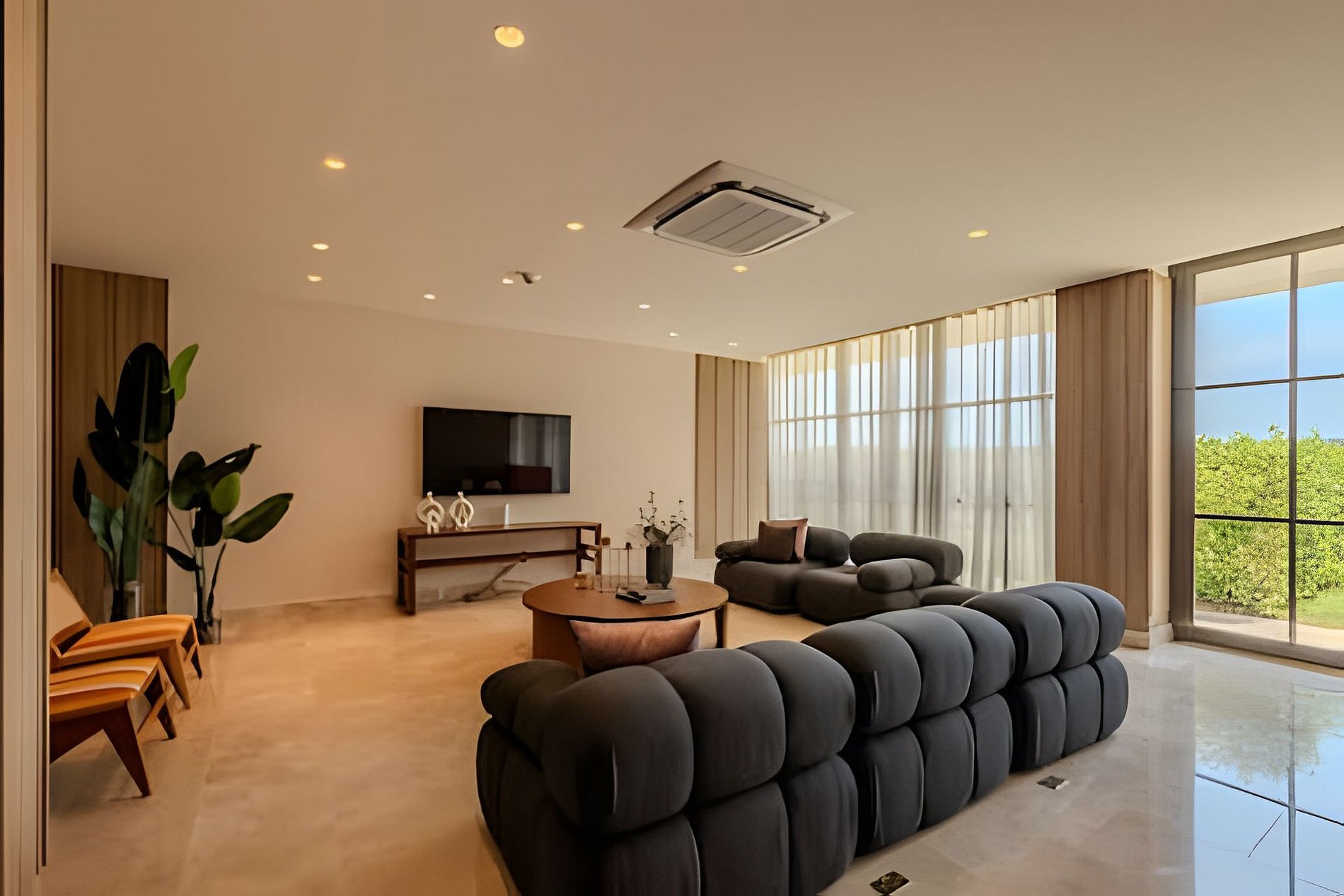 • Zona social moderna y acogedora, con sala equipada con Smart TV, Sofá Cama Queen y muebles elegantes para tu comodidad.