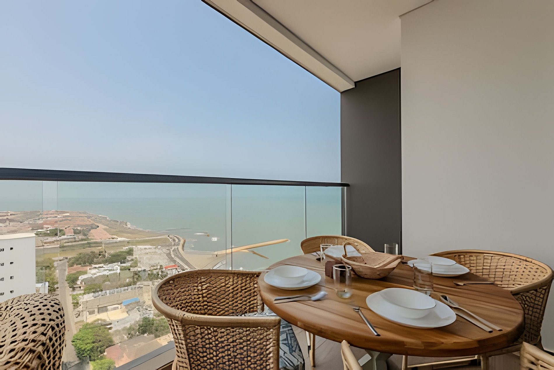 Disfruta este exclusivo, nuevo y elegante apartamento nuevo en el condominio "Murano Centro" en el piso 28, tiene una vista panorámica impresionante y cautivadora al Mar, Centro Histórico, Castillo de San Felipe y Ciénaga de la Virgen! Disfruta de la espectacular playa que está a una cuadra del edificio! Cuenta con todo lo necesario para pasar una estadía inolvidable en Cartagena. Conexión a internet banda ancha de 300mb. Tiene cocina completamente dotada, lavadora y secadora, calentador de agua, sala de estar con aire acondicionado y Sofá cama doble, medio baño en la zona social, balcón con sala exterior y comedor exterior que te permitirá disfrutar de un café, un desayuno o una copa de vino con este espectacular paisaje! La habitación principal tiene acceso al balcón, cama Queen, vestier y baño completo, Smart TV de 55 pulgadas, aire acondicionado. Disfruta de un ambiente sostenible y eficiente, donde podrás reducir tu consumo de energía y contribuir al cuidado del medio ambiente. ¡Vive de manera responsable y cómoda en este alojamiento lleno de innovación y tecnología! Este apartamento cuenta con un moderno sistema de ahorro de energía tipo hotelero. Al momento de su llegada se le enviará la clave para abrir una caja de seguridad donde se encuentra la tarjeta que abre la cerradura y activa el suministro de energía. Si pierdes debes pagar 60 dólares