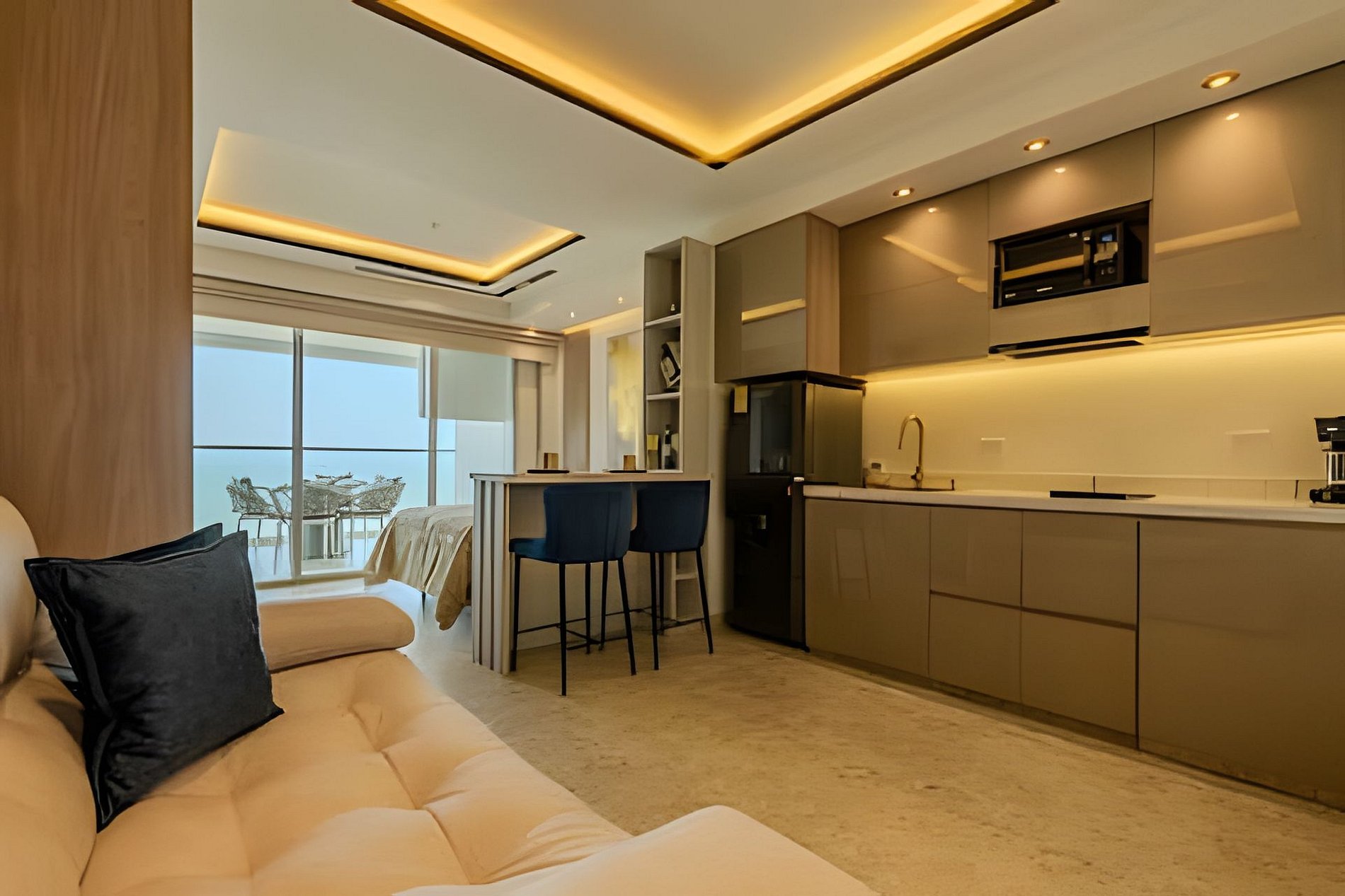 Grupo Vita te invita a descubrir una experiencia de alojamiento inigualable en nuestra aparta suite de lujo, ubicada en el piso 16 de Cartagena Beach Exclusive Resort & Residences. Diseñada para viajeros exigentes que valoran la comodidad, el estilo y una ubicación privilegiada, esta suite ofrece todo lo que necesitas para una estadía memorable frente al mar Caribe. Disfruta de una vista panorámica espectacular desde el amplio balcón con sala exterior de cuatro puestos, ideal para relajarte o disfrutar de un desayuno, café o una copa de vino mientras te deleitas viendo los espectaculares atardeceres de nuestra mágica ciudad! Cada rincón ha sido pensado para tu confort: acabados de lujo, iluminación cálida y detalles de diseño que marcan la diferencia. La suite está completamente dotada: cocina equipada, calentador de agua, aire acondicionado, Wi-Fi, cortina y blackout eléctricas, sistema de sonido, televisor de 55” con acceso a Netflix. Cuenta con una cama Queen de excelente calidad y un sofá cama muy cómodo con topper acolchado para un descanso reparador. El baño es moderno y funcional, y te ofrecemos amenidades de cortesía como shampoo, jabón, acondicionador y souvenirs de bienvenida. Esta es más que una suite, es una experiencia caribeña de lujo, con atención al detalle y una ubicación insuperable: frente a la playa, a 4 minutos caminando del aeropuerto y a 10 minutos del Centro Histórico de Cartagena. Por normas del condominio, no se permiten visitantes. Solo podrán ingresar al edificio las personas registradas previamente antes del check-in. Todos los huéspedes deberán portar un brazalete de identificación durante su estancia, el cual será entregado al momento del ingreso. Estas medidas garantiza la seguridad y tranquilidad de todos los huéspedes. La suite cuenta con un sistema de energía tipo hotelero, diseñado para aumentar la sostenibilidad y cuidar el planeta. Este sistema permite un uso eficiente de la energía mientras no estás en el apartamento, sin afectar tu experiencia de confort. Te pedimos cuidarla muy bien, ya que en caso de pérdida se aplicará un cobro de $60 USD.