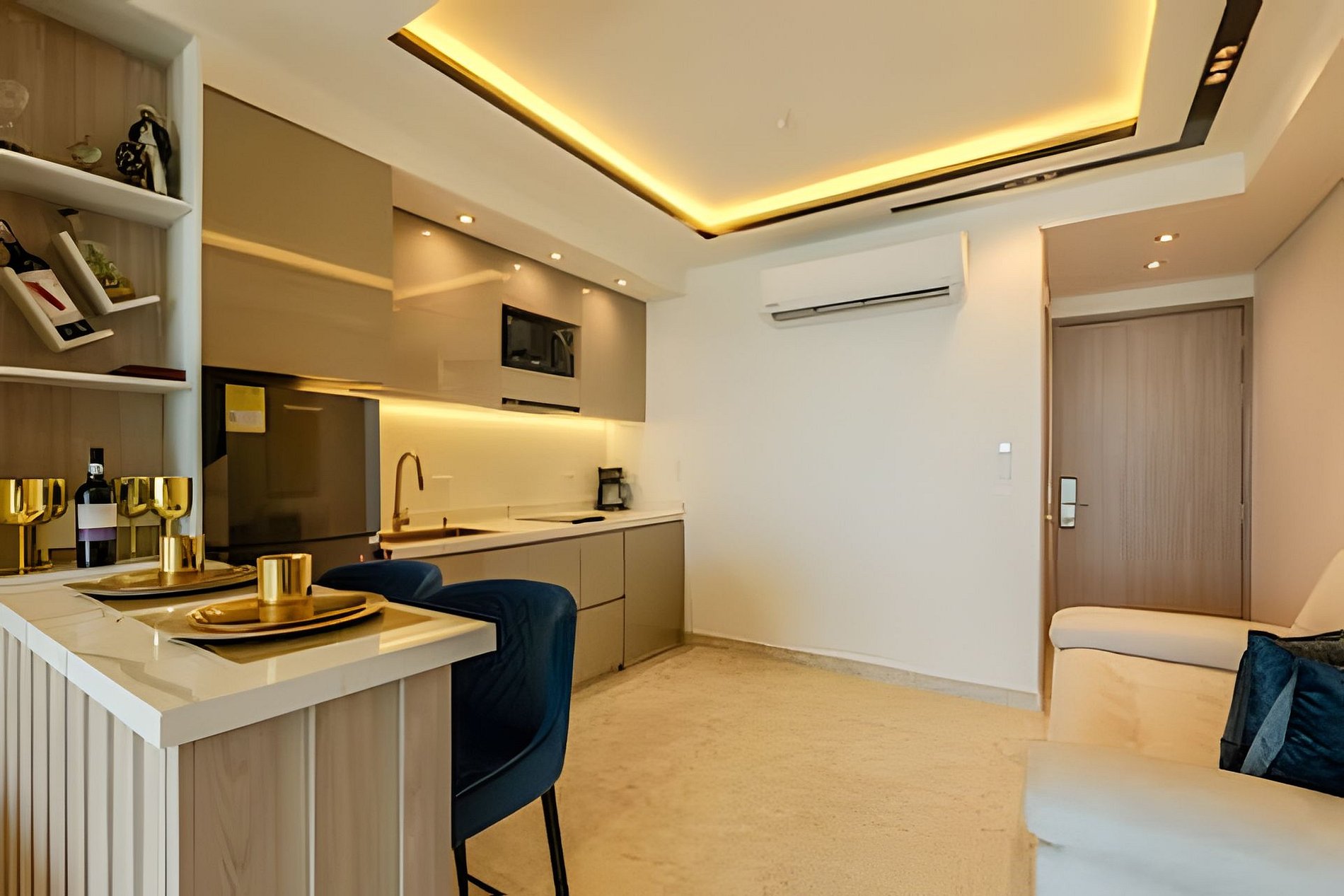 Grupo Vita te invita a vivir Cartagena desde las alturas en esta suite de lujo en el piso 16 de Cartagena Beach Exclusive Resort. Frente al mar, con una vista espectacular, diseño moderno y todas las comodidades. A solo 4 min caminando del aeropuerto y 10 min del Centro Histórico. ¡Ubicación, confort y experiencia caribeña en un solo lugar! Grupo Vita te invita a descubrir una experiencia de alojamiento inigualable en nuestra aparta suite de lujo, ubicada en el piso 16 de Cartagena Beach Exclusive Resort & Residences. Diseñada para viajeros exigentes que valoran la comodidad, el estilo y una ubicación privilegiada, esta suite ofrece todo lo que necesitas para una estadía memorable frente al mar Caribe. Disfruta de una vista panorámica espectacular desde el amplio balcón con sala exterior de cuatro puestos, ideal para relajarte o disfrutar de un desayuno, café o una copa de vino mientras te deleitas viendo los espectaculares atardeceres de nuestra mágica ciudad! Cada rincón ha sido pensado para tu confort: acabados de lujo, iluminación cálida y detalles de diseño que marcan la diferencia. La suite está completamente dotada: cocina equipada, calentador de agua, aire acondicionado, Wi-Fi, cortina y blackout eléctricas, sistema de sonido, televisor de 55” con acceso a Netflix. Cuenta con una cama Queen de excelente calidad y un sofá cama muy cómodo con topper acolchado para un descanso reparador. El baño es moderno y funcional, y te ofrecemos amenidades de cortesía como shampoo, jabón, acondicionador y souvenirs de bienvenida. Esta es más que una suite, es una experiencia caribeña de lujo, con atención al detalle y una ubicación insuperable: frente a la playa, a 4 minutos caminando del aeropuerto y a 10 minutos del Centro Histórico de Cartagena. Por normas del condominio, no se permiten visitantes. Solo podrán ingresar al edificio las personas registradas previamente antes del check-in. Todos los huéspedes deberán portar un brazalete de identificación durante su estancia, el cual será entregado al momento del ingreso. Estas medidas garantiza la seguridad y tranquilidad de todos los huéspedes. La suite cuenta con un sistema de energía tipo hotelero, diseñado para aumentar la sostenibilidad y cuidar el planeta. Este sistema permite un uso eficiente de la energía mientras no estás en el apartamento, sin afectar tu experiencia de confort. Te pedimos cuidarla muy bien, ya que en caso de pérdida se aplicará un cobro de $60 USD. Actualmente se encuentran habilitadas las piscinas para adultos y niños, el jacuzzi, así como los baños y duchas de la zona social, para el disfrute de nuestros huéspedes. Sin embargo, es importante tener en cuenta que el condominio aún se encuentra en etapa de construcción, por lo que podrían presentarse ruidos y operarios durante el día. Nuestra comunicación será principalmente a través del chat de la plataforma