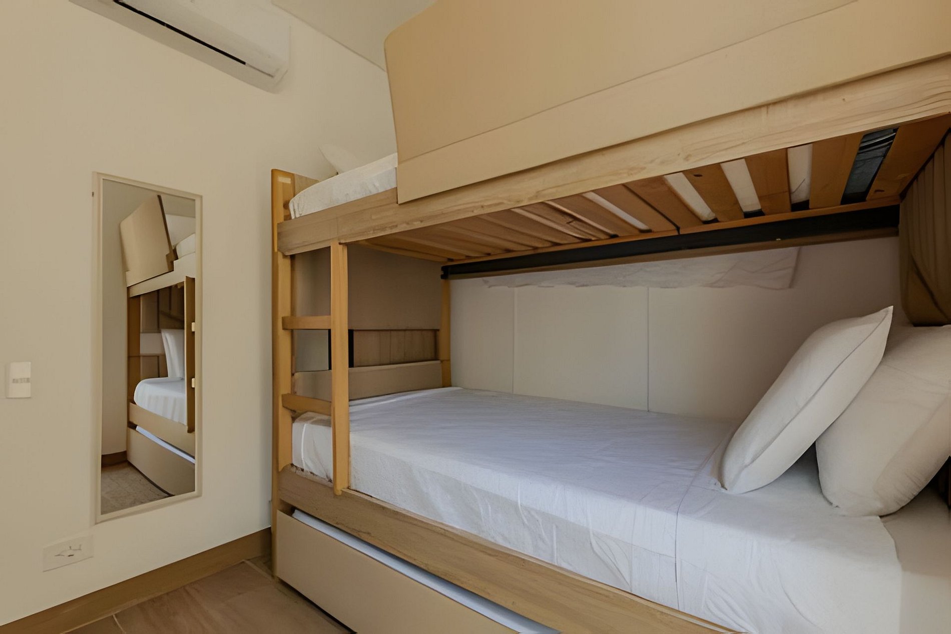 Inmobiliaria Grupo Vita te ofrece este espectacular apartamento para estrenar en el condominio Murano Centro, con una ubicación estratégica, a una cuadra del mar y a 480 metros del centro comercial la Serrezuela y Centro Histórico. Las zonas sociales te dejarán asombrado, con una vista panorámica 360 grados de la ciudad, piscina, jacuzzi coworking, gimnasio, turco y bar. Nuestro apartamento es perfecto para aquellos que buscan comodidad y estilo en una de las ciudades más hermosas de Colombia! Disfruta este exclusivo y elegante apartamento nuevo en el condominio “Murano Centro” en el piso 12 con vista al Mar Caribe! Disfruta de la espectacular playa que está a una cuadra del edificio! Cuenta con todo lo necesario para pasar una estancia inolvidable. Conexión a internet banda ancha. Tiene cocina completamente dotada, lavadora y secadora (2 en 1), calentador de agua, sala de estar con aire acondicionado, baño completo en la zona social, balcón con muebles de exterior , para que disfrutes de una copa de vino o un café con la espectacular vista al Mar Caribe! También hay una sala exterior con mesa de centro para que disfrutes de un café, La habitación principal tiene cama queen, smart TV de 50”, aire acondicionado, closet y baño completo. La segunda habitación tiene un camarote con dos camas sencillas (1.20), smart TV y aire acondicionado. Ofrecemos almohadas, toallas, sábanas y cobijas, shampoo, acondicionador, jabón corporal y jabón para manos. Nuestro apartamento es ideal para estadías cortas o largas. Disfruta de un ambiente sostenible y eficiente, donde podrás reducir tu consumo de energía y contribuir al cuidado del medio ambiente. ¡Vive de manera responsable y cómoda en este alojamiento lleno de innovación y tecnología! Este apartamento cuenta con un moderno sistema de ahorro de energía tipo hotelero. Al momento de su llegada se le enviará la clave para abrir una caja de seguridad donde se encuentra la tarjeta que abre la cerradura y activa el suministro de energía. No se permiten visitantes, ni cambios o adiciones de huéspedes, sólo podrán ingresar las personas registradas al momento de la reserva. •No incluido en la tarifa: $20.000 (5 dólares) por huésped, correspondiente a pulsera que los identifica como huéspedes del edificio.