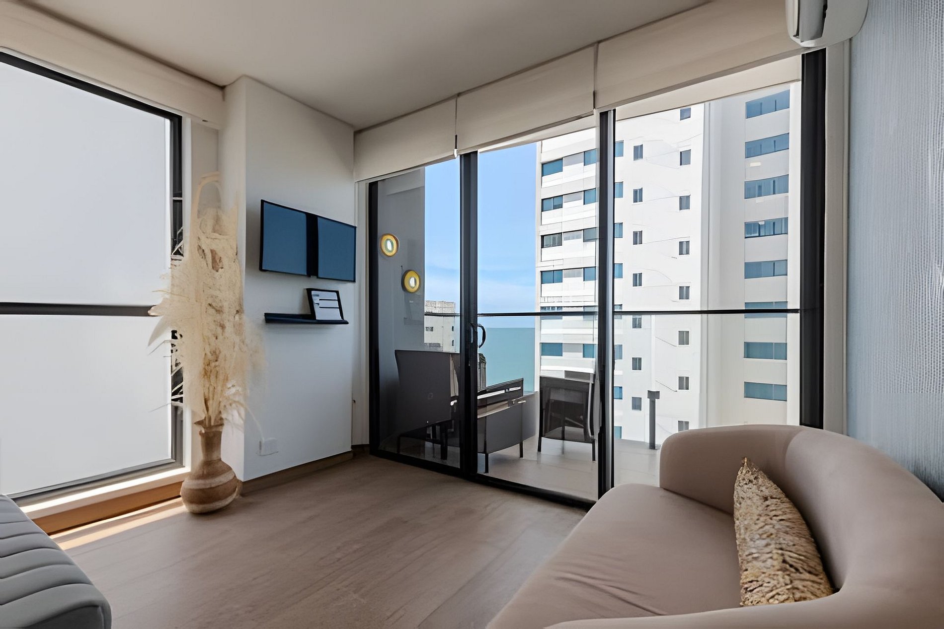 Inmobiliaria Grupo Vita te ofrece este espectacular apartamento para estrenar en el condominio Murano Centro, con una ubicación estratégica, a una cuadra del mar y a 480 metros del centro comercial la Serrezuela y Centro Histórico. Las zonas sociales te dejarán asombrado, con una vista panorámica 360 grados de la ciudad, piscina, jacuzzi coworking, gimnasio, turco y bar. Nuestro apartamento es perfecto para aquellos que buscan comodidad y estilo en una de las ciudades más hermosas de Colombia! Disfruta este exclusivo y elegante apartamento nuevo en el condominio “Murano Centro” en el piso 12 con vista al Mar Caribe! Disfruta de la espectacular playa que está a una cuadra del edificio! Cuenta con todo lo necesario para pasar una estancia inolvidable