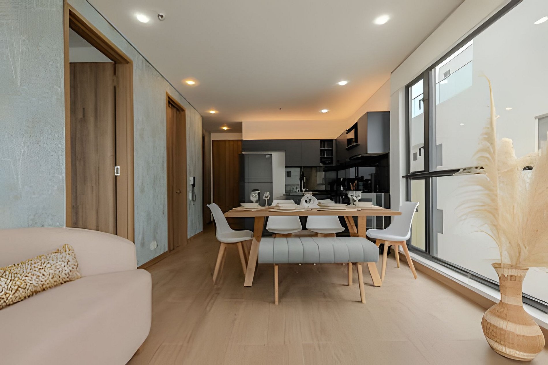 Disfruta este exclusivo y elegante apartamento nuevo en el condominio “Murano Centro” en el piso 12 con vista al Mar Caribe! Disfruta de la espectacular playa que está a una cuadra del edificio! Cuenta con todo lo necesario para pasar una estancia inolvidable. Conexión a internet banda ancha. Tiene cocina completamente dotada, lavadora y secadora (2 en 1), calentador de agua, sala de estar con aire acondicionado, baño completo en la zona social, balcón con muebles de exterior , para que disfrutes de una copa de vino o un café con la espectacular vista al Mar Caribe! También hay una sala exterior con mesa de centro para que disfrutes de un café, La habitación principal tiene cama queen, smart TV de 50”, aire acondicionado, closet y baño completo. La segunda habitación tiene un camarote con dos camas sencillas (1.20), smart TV y aire acondicionado. Ofrecemos almohadas, toallas, sábanas y cobijas, shampoo, acondicionador, jabón corporal y jabón para manos. Nuestro apartamento es ideal para estadías cortas o largas. Disfruta de un ambiente sostenible y eficiente, donde podrás reducir tu consumo de energía y contribuir al cuidado del medio ambiente. ¡Vive de manera responsable y cómoda en este alojamiento lleno de innovación y tecnología! Este apartamento cuenta con un moderno sistema de ahorro de energía tipo hotelero. Al momento de su llegada se le enviará la clave para abrir una caja de seguridad donde se encuentra la tarjeta que abre la cerradura y activa el suministro de energía. No se permiten visitantes, ni cambios o adiciones de huéspedes, sólo podrán ingresar las personas registradas al momento de la reserva. •No incluido en la tarifa: $20.000 (5 dólares) por huésped, correspondiente a pulsera que los identifica como huéspedes del edificio.
