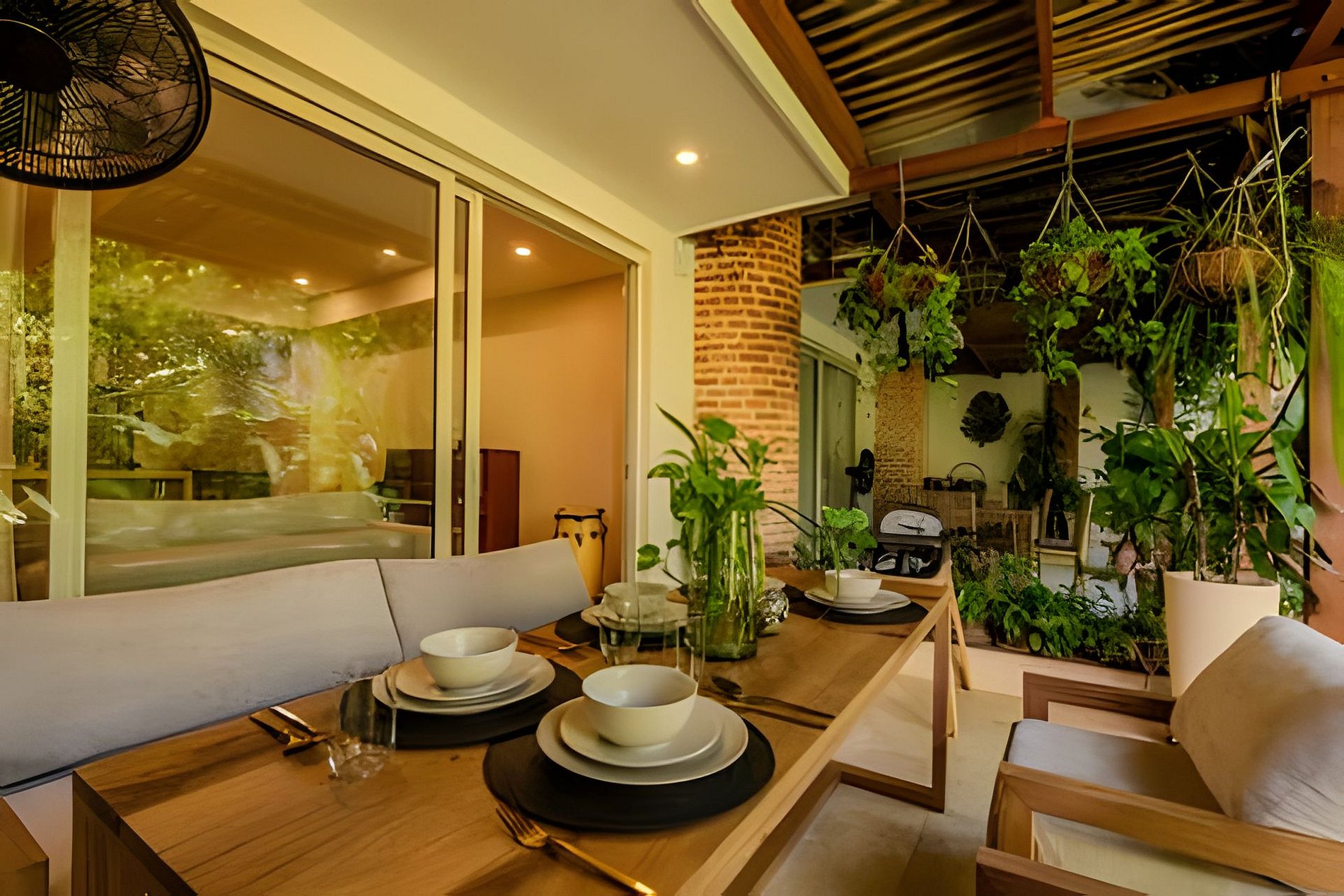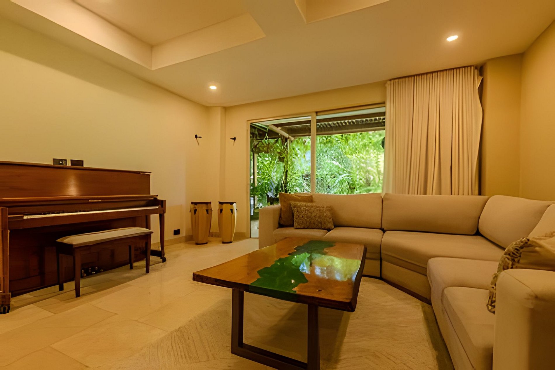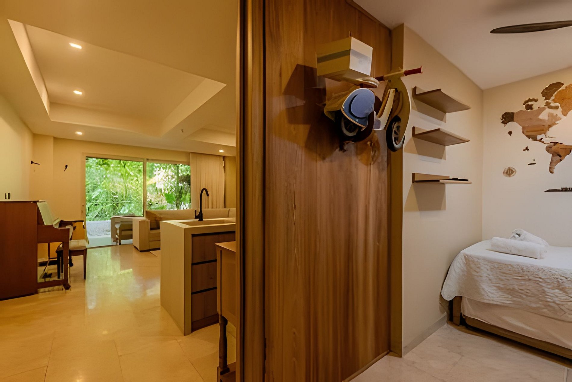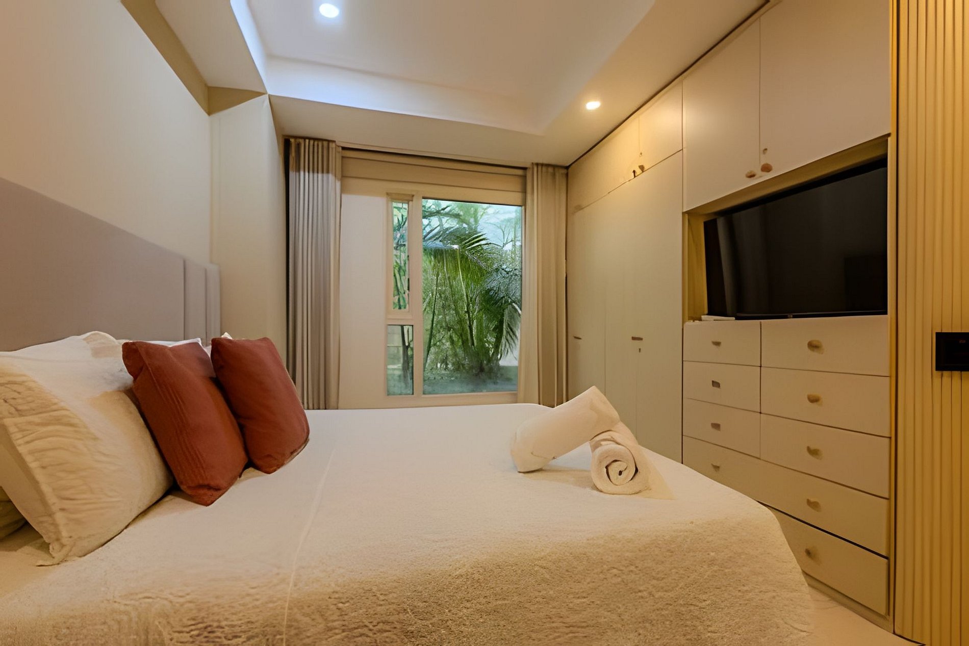 Habitación principal: Cama Queen, aire acondicionado, televisor, baño privado, closet y ambiente tranquilo para el descanso. Segunda habitación: Cama sencilla con nido, ventilador, closet y excelente iluminación natural. Sala de estar: Espaciosa y acogedora, con sofá cómodo, aire acondicionado y acceso directo a la terraza privada. Terraza privada con jardín: Espacio exclusivo rodeado de vegetación tropical, con comedor exterior y zona lounge ideal para desayunos, cenas o momentos de descanso en un entorno fresco y colonial. Cocina moderna y completamente equipada: Integrada al área social, perfecta para estadías cortas o largas. Comedor interior: Cómodo y funcional para compartir en familia. Zona de labores: Con lavadora y todas las facilidades para estadías prolongadas. Zona de lavado: Se reserva en la recepción, donde entregan la llave del cuarto de lavado. Al finalizar, es necesario devolver la llave. No dispone de parqueadero. Horario de Piscinas: Piscina grande, piso 4 (ascensor junto a recepción):