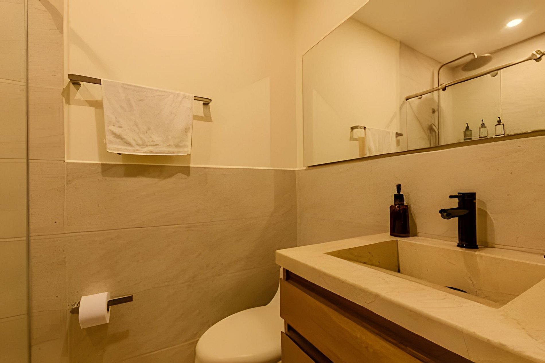 Elegante apartamento en primer piso situado en el sector San Diego, en el Centro Histórico de Cartagena. Dispone de dos habitaciones, dos baños, terraza privada, cocina completamente equipada y áreas de sala y comedor espaciosas y confortables. Es perfecto para familias o grupos que desean comodidad y autenticidad en un entorno de arquitectura colonial. El edificio cuenta con piscina de uso compartido y una ubicación inmejorable para recorrer plazas, murallas, restaurantes y cafeterías cercanas. Es una excelente opción para quienes buscan confort y una experiencia auténtica en la Cartagena histórica. Ubicado en el corazón del Centro Histórico, dentro de San Diego 974 Suites, en pleno barrio de San Diego, muy cerca de la Plaza de San Diego, plazas coloniales, iglesias, museos, cafeterías, restaurantes gourmet y tiendas locales. Permite disfrutar plenamente de la vida cultural e histórica de la ciudad, declarada patrimonio de la humanidad por la UNESCO. Rodeado de arquitectura colonial, calles adoquinadas y sitios emblemáticos, ofrece acceso inmediato a los principales atractivos turísticos, murallas y playas cercanas. Apartamento familiar totalmente equipado en San Diego – Centro Histórico: habitación principal con cama Queen, aire acondicionado, televisor, baño privado, clóset y ambiente tranquilo para descansar; segunda habitación con cama sencilla y cama nido, ventilador, clóset y excelente iluminación natural; sala de estar espaciosa y cómoda, con sofá, aire acondicionado y acceso directo a la terraza privada; terraza privada con jardín rodeada de vegetación tropical, equipada con comedor exterior y zona de descanso, ideal para desayunos, cenas o relajarse en un entorno fresco y colonial; cocina moderna integrada al área social, apta para estadías cortas o largas; comedor interior práctico y cómodo para disfrutar en familia; zona de labores con lavadora y espacios adecuados para estancias prolongadas. El acceso a la zona de lavado se gestiona en la recepción, donde se entrega la llave del cuarto de lavado, la cual debe devolverse al finalizar el uso. No cuenta con servicio de parqueadero. Horario de las piscinas: piscina grande ubicada en el cuarto piso, acceso mediante elevador junto a la recepción, de lunes a viernes de 8:00 am a 7:00 pm, sábados, domingos y festivos de 9:00 am a 9:00 pm. Piscina pequeña, acceso por elevador antes de llegar al apartamento, de lunes a viernes de 8:00 am a 7:00 pm, sábados y domingos de 9:00 am a 7:00 pm. El sauna funciona con reserva previa y se activa 15 minutos antes del uso en la recepción. No está permitido dejar maletas en la recepción.