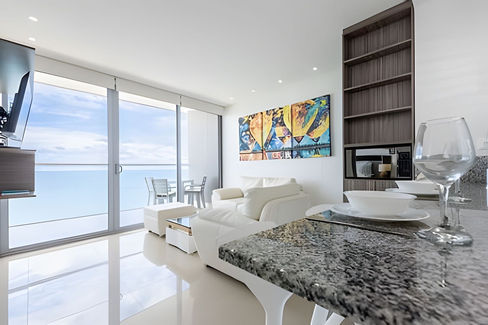Disfruta este exclusivo y elegante apartamento en el condominio “Morros City” en el piso 30, tiene una vista increible y cautivadora. De frente tienes el Mar Caribe y lateral puedes observar el Centro Histórico de la ciudad. Cuenta con todo lo necesario para pasar una estadía inolvidable. Disfruta de la espectacular playa que está al frente del edificio! Conexión muy rápida de internet, wifi fibra óptica de 500mb. Tiene cocina completa, lavadora y secadora (2 en 1), calentador de agua, sala con aire acondicionado, Smart TV de 60”, baño completo en la zona social, balcón con sillas y mesa exterior para que disfrutes de un café, un desayuno o una espectacular puesta de sol. La habitación principal también tiene vista directa al mar, y acceso al balcón, cama king, televisión, aire acondicionado, closets y baño completo. Dispones de almohadas, toallas, sábanas y cobijas. Nuestro apartamento es ideal para estadías cortas o largas. Si necesitas servicio de limpieza durante tu estadía debes avisarnos con 24h de anticipación. Este servicio tiene un costo adicional.