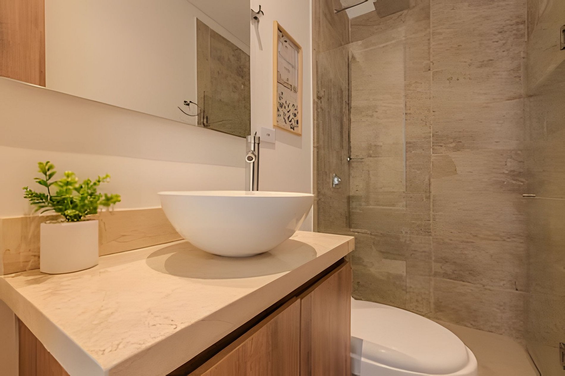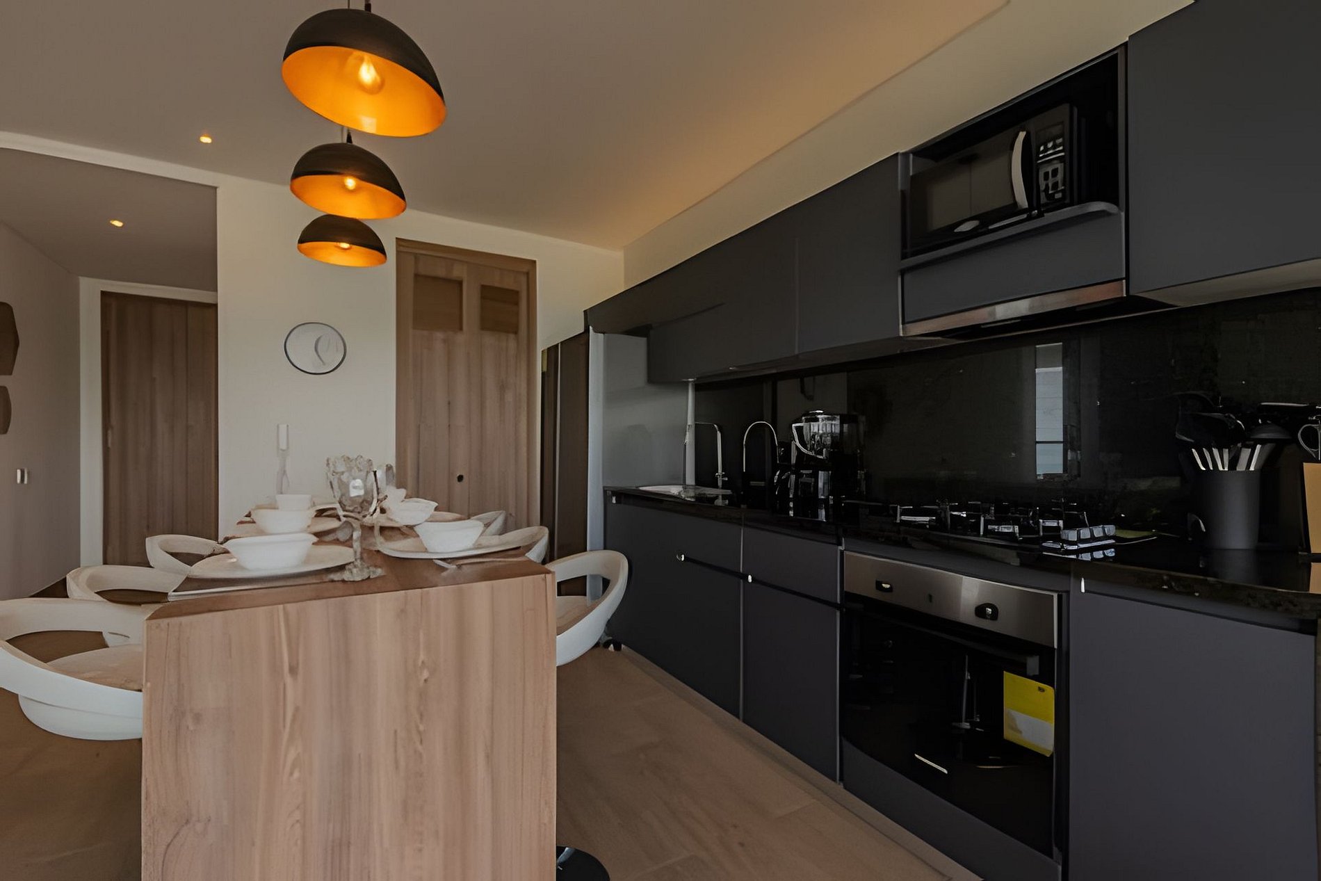 Conexión a internet banda ancha de 300mb y 40 canales de televisión en Directv Go. Tiene cocina completamente dotada, lavadora y secadora, calentador de agua, sala de estar con aire acondicionado y sofá cama doble, Smartv de 55”, baño completo en la zona social, balcón con sillas y mesa exterior que permite guardar bebidas refrigeradas para que disfrutes de un café, un desayuno o una copa de vino.