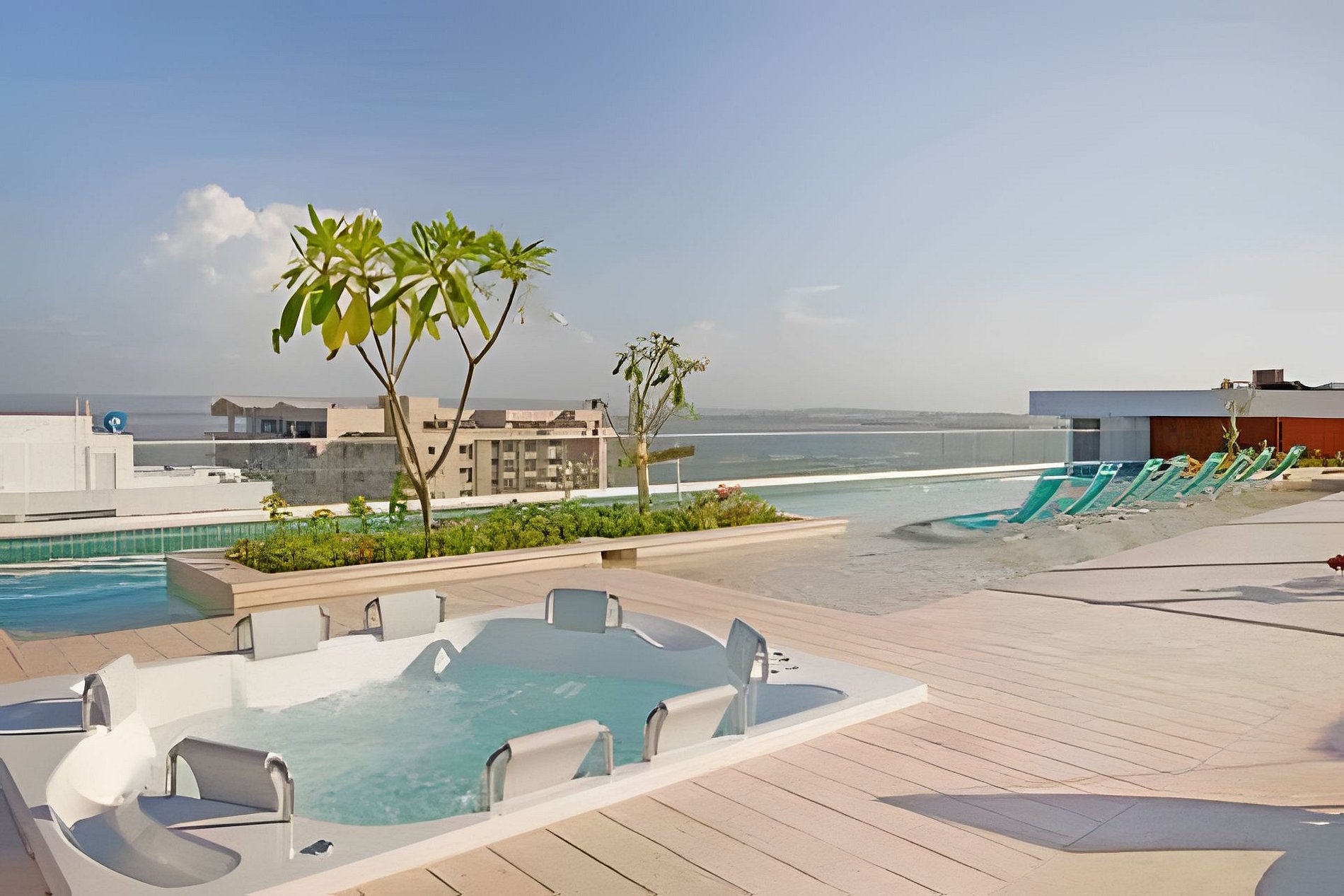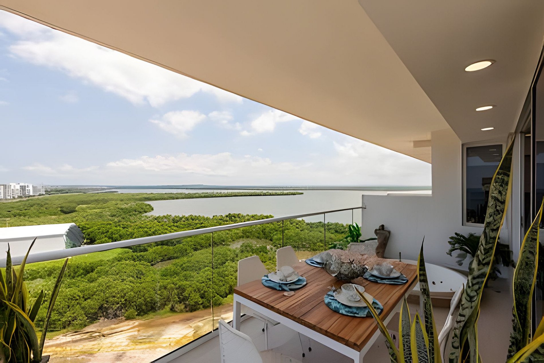 Disfruta de nuestro hermoso apartamento en “Edificio Martinique” piso 14. Con jacuzzi privado y una hermosa vista al mar y a la ciénaga. Este apartamento tiene todas las comodidades necesarias para que tengas una experiencia increíble en nuestra ciudad. Disfruta la espectacular vista que te ofrece este apartamento y todas las comodidades de este condominio. Cocina completa, cava de vinos, comedor y sala con aire acondicionado, balcón con jacuzzi privado, comedor al aire libre donde podrás disfrutar de una hermosa vista panorámica. Habitación principal con aire acondicionado, cama Queen, televisión, baño completo y vestier, ventilador de techo y acceso al balcón. Encontrarás un colchón doble debajo de la cama. Habitación 2: aire acondicionado, ventilador de techo, cama doble, televisión, armario y acceso al balcón. Conexión a WiFi fibra óptica de 500mb que te dará una navegación muy rápida y estable! Zona de labores con lavadora, secadora y calentador de agua. Tv cable en los dos televisores. Si necesitas servicio de limpieza durante tu estadía debes avisarnos con 24h de anticipación. Este servicio tiene un costo adicional Este condominio está ubicado A 500 metros de la playa de La Boquilla, cuenta con parque infantil, gimnasio, piscina panorámica (horario 9am a 7:30pm) y jacuzzi en la azotea, bbq (si deseas utilizarlo tiene un costo adicional y debe reservarse con anticipación), jardines y parqueadero privado gratuito. El barrio “Cielo Mar” está ubicado a 10 minutos en coche de la ciudad amurallada y a 4 minutos del aeropuerto. Al momento de reservar debes enviar un listado de los huéspedes y número de identificación de cada uno. No se permiten modificaciones en la reserva después de hacer check in.