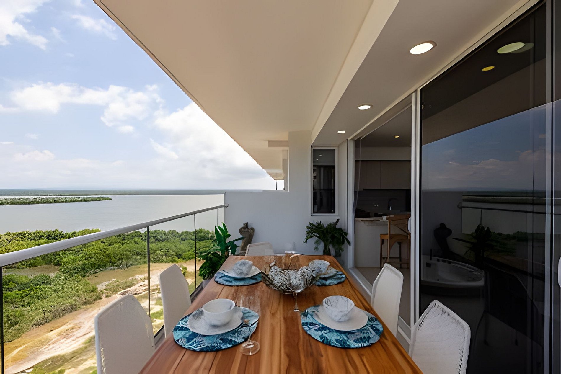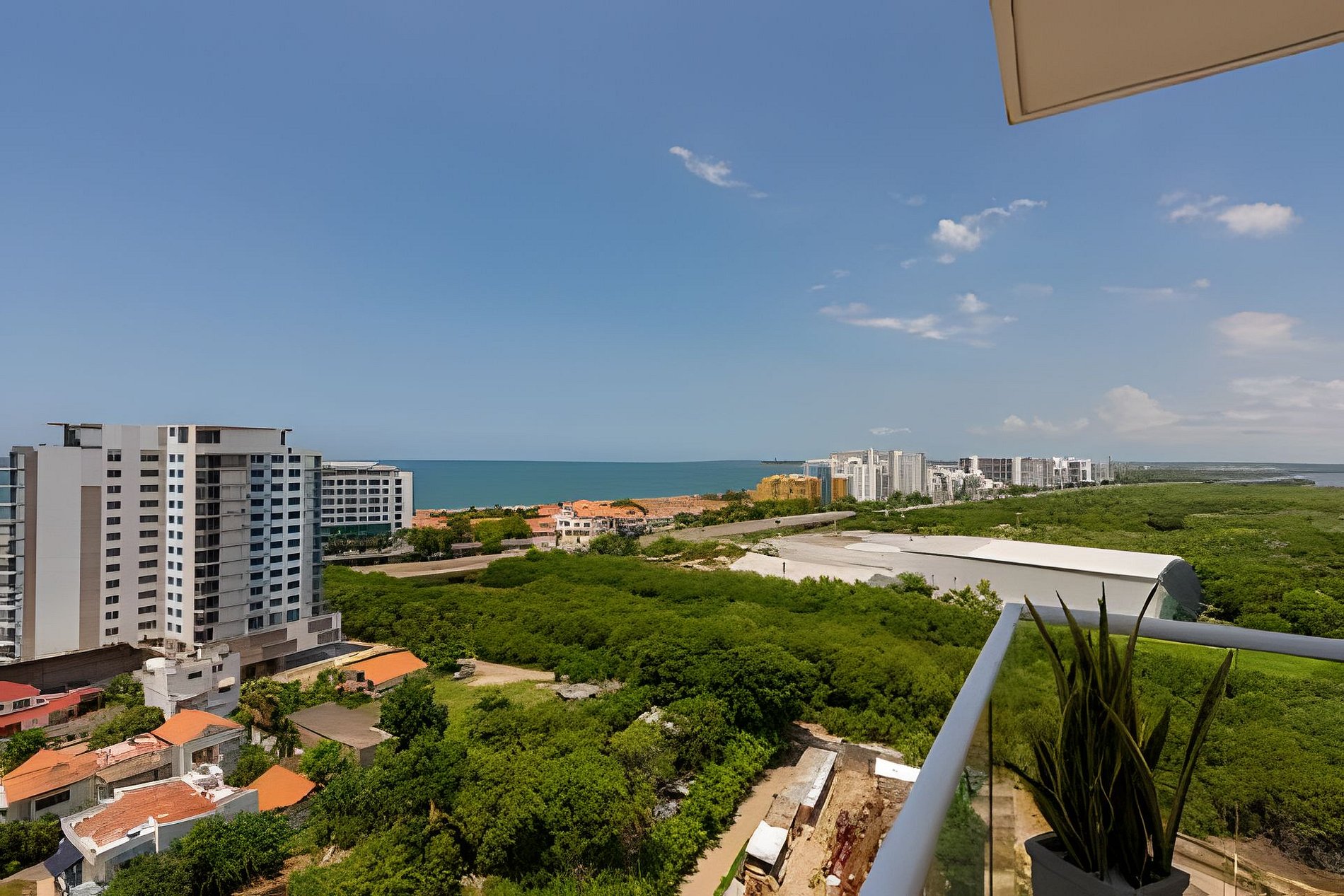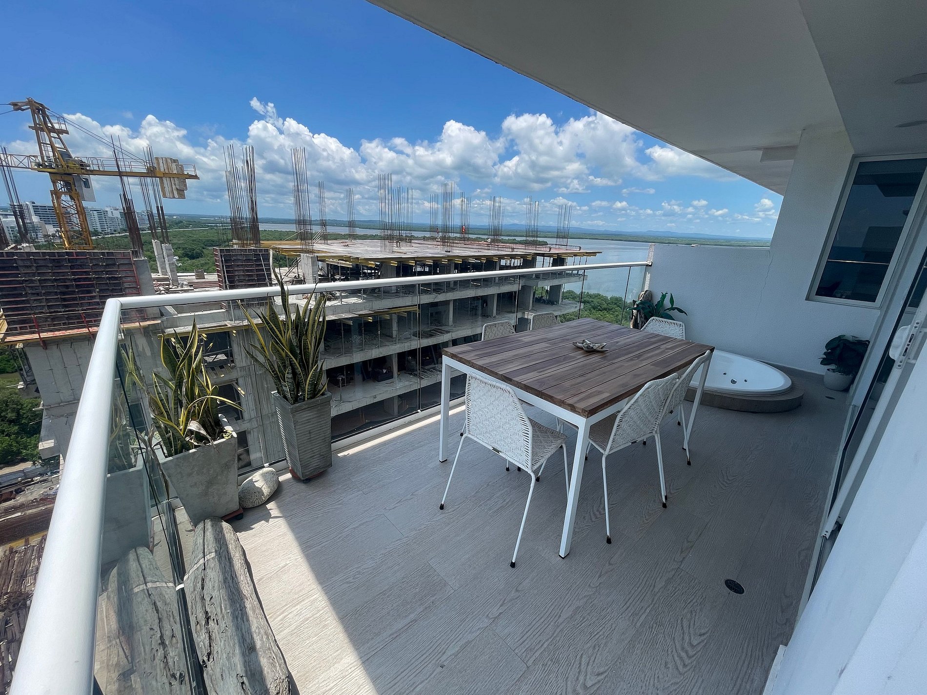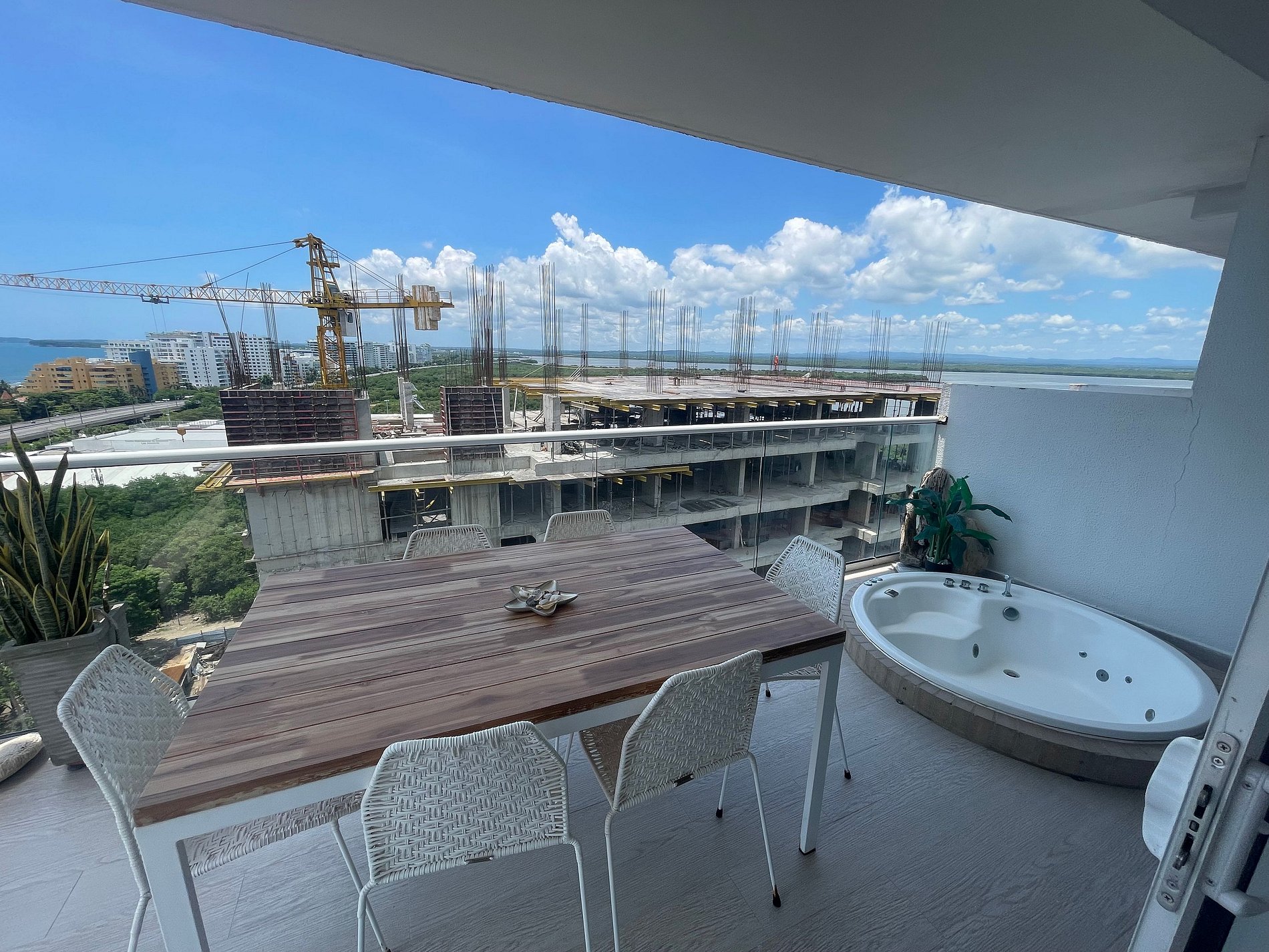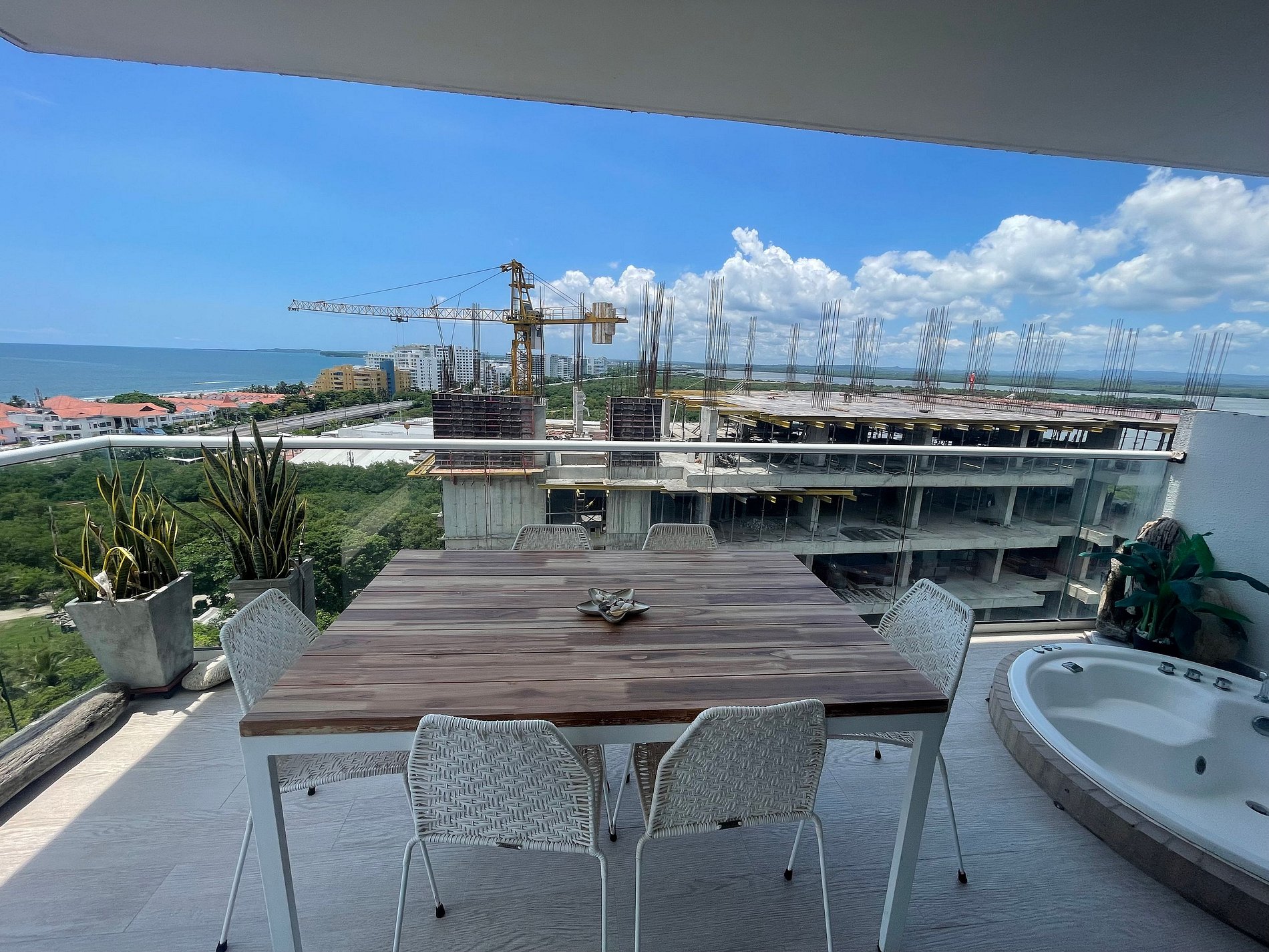 Disfruta de nuestro hermoso apartamento en “Edificio Martinique” piso 14. Con jacuzzi privado y una hermosa vista al mar y a la ciénaga. Este apartamento tiene todas las comodidades necesarias para que tengas una experiencia increíble en nuestra ciudad. Disfruta la espectacular vista que te ofrece este apartamento y todas las comodidades de este condominio. Cocina completa, cava de vinos, comedor y sala con aire acondicionado, balcón con jacuzzi privado, comedor al aire libre donde podrás disfrutar de una hermosa vista panorámica. Habitación principal con aire acondicionado, cama Queen, televisión, baño completo y vestier, ventilador de techo y acceso al balcón. Encontrarás un colchón doble debajo de la cama. Habitación 2: aire acondicionado, ventilador de techo, cama doble, televisión, armario y acceso al balcón. Conexión a WiFi fibra óptica de 500mb que te dará una navegación muy rápida y estable! Zona de labores con lavadora, secadora y calentador de agua. Tv cable en los dos televisores. Si necesitas servicio de limpieza durante tu estadía debes avisarnos con 24h de anticipación. Este servicio tiene un costo adicional Este condominio está ubicado A 500 metros de la playa de La Boquilla, cuenta con parque infantil, gimnasio, piscina panorámica (horario 9am a 7:30pm) y jacuzzi en la azotea, bbq (si deseas utilizarlo tiene un costo adicional y debe reservarse con anticipación), jardines y parqueadero privado gratuito. El barrio “Cielo Mar” está ubicado a 10 minutos en coche de la ciudad amurallada y a 4 minutos del aeropuerto. Al momento de reservar debes enviar un listado de los huéspedes y número de identificación de cada uno. No se permiten modificaciones en la reserva después de hacer check in.