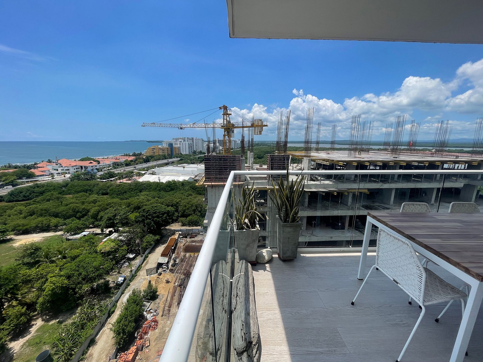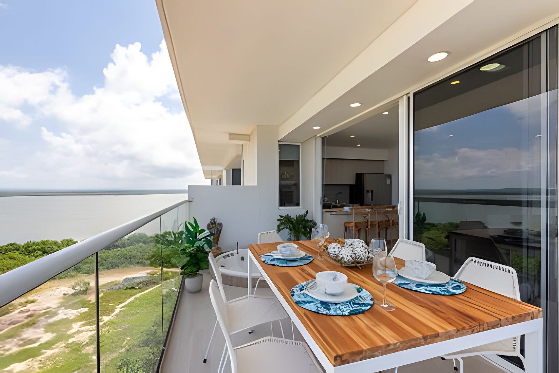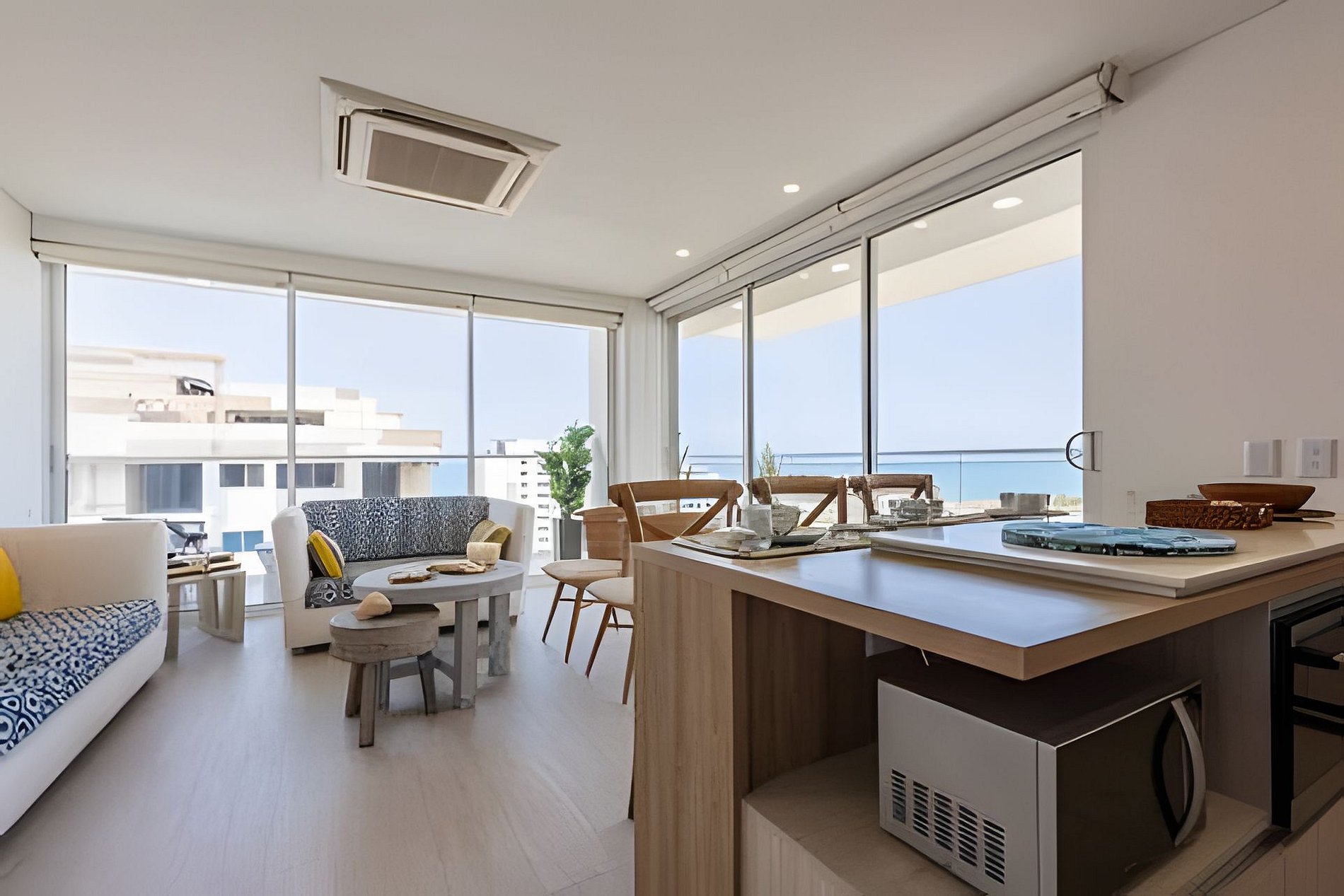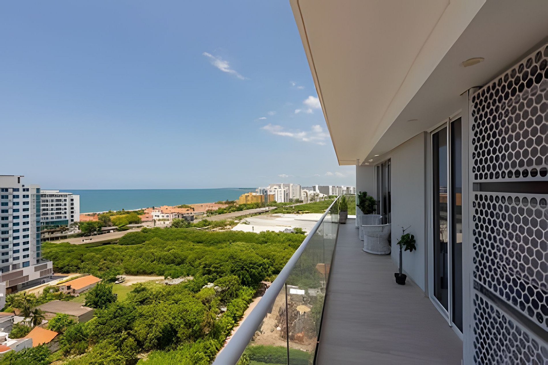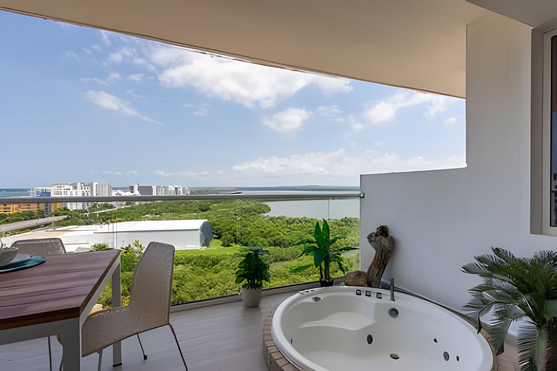 Disfruta de nuestro hermoso apartamento en “Edificio Martinique” piso 14. Con jacuzzi privado y una hermosa vista al mar y a la ciénaga. Este apartamento tiene todas las comodidades necesarias para que tengas una experiencia increíble en nuestra ciudad. Disfruta la espectacular vista que te ofrece este apartamento y todas las comodidades de este condominio. Cocina completa, cava de vinos, comedor y sala con aire acondicionado, balcón con jacuzzi privado, comedor al aire libre donde podrás disfrutar de una hermosa vista panorámica. Habitación principal con aire acondicionado, cama Queen, televisión, baño completo y vestier, ventilador de techo y acceso al balcón. Encontrarás un colchón doble debajo de la cama. Habitación 2: aire acondicionado, ventilador de techo, cama doble, televisión, armario y acceso al balcón. Conexión a WiFi fibra óptica de 500mb que te dará una navegación muy rápida y estable! Zona de labores con lavadora, secadora y calentador de agua. Tv cable en los dos televisores. Si necesitas servicio de limpieza durante tu estadía debes avisarnos con 24h de anticipación. Este servicio tiene un costo adicional Este condominio está ubicado A 500 metros de la playa de La Boquilla, cuenta con parque infantil, gimnasio, piscina panorámica (horario 9am a 7:30pm) y jacuzzi en la azotea, bbq (si deseas utilizarlo tiene un costo adicional y debe reservarse con anticipación), jardines y parqueadero privado gratuito. El barrio “Cielo Mar” está ubicado a 10 minutos en coche de la ciudad amurallada y a 4 minutos del aeropuerto. Al momento de reservar debes enviar un listado de los huéspedes y número de identificación de cada uno. No se permiten modificaciones en la reserva después de hacer check in.