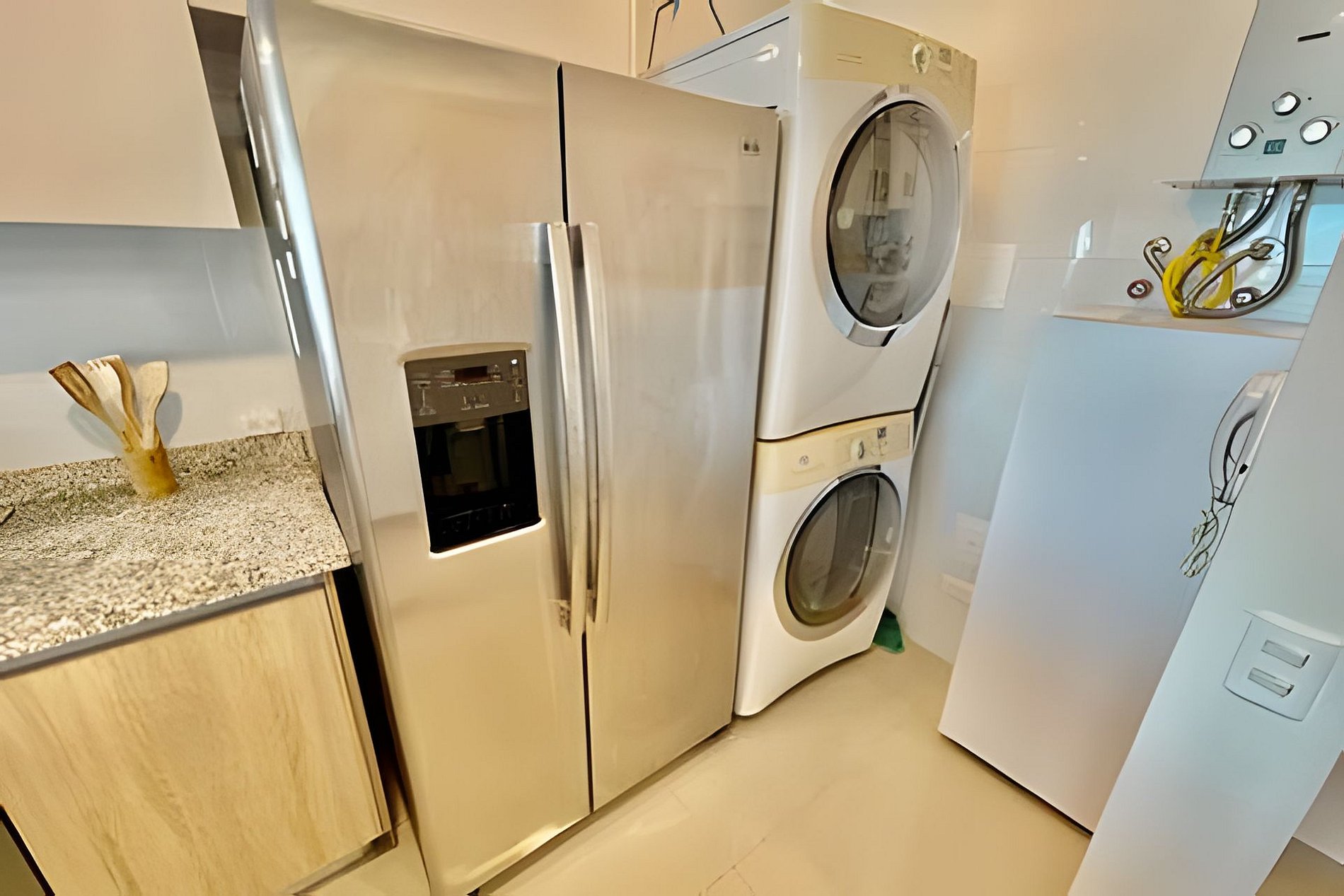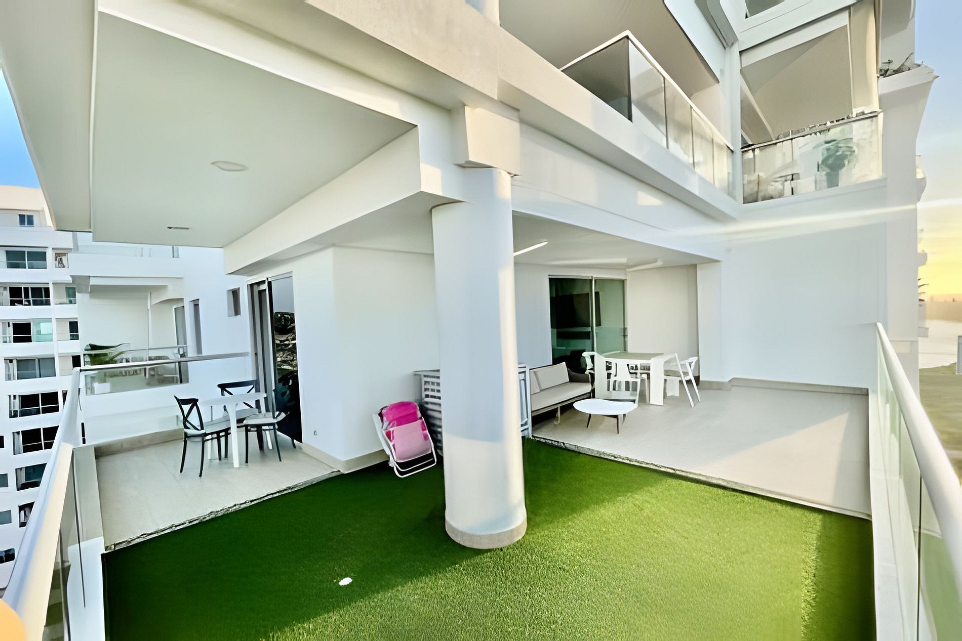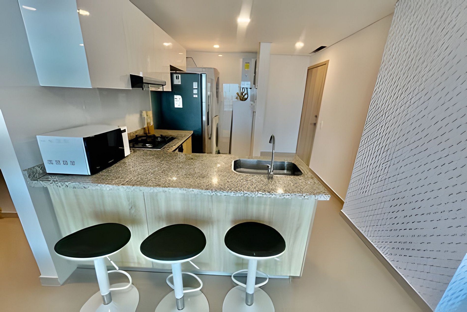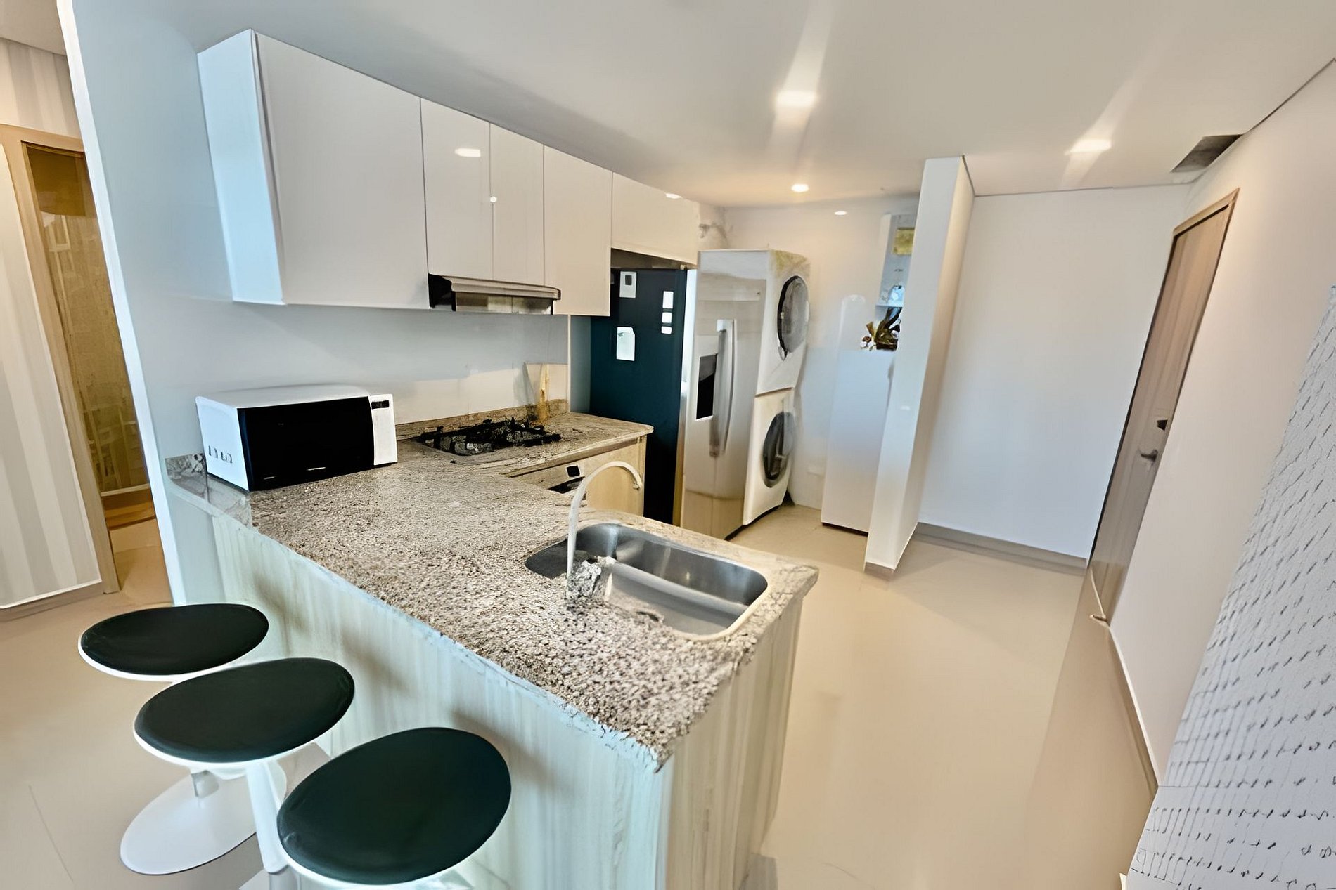 Excelente ubicación, a solo 7 Minutos del aeropuerto y del centro histórico, a solo dos calles de las playas de Marbella, apartamento con (2)dos habitaciones, (1) un sofá cama, (2)dos baños, lavadora y secadora, 2 tvs, Plancha de ropa, secador de pelo, calentador de agua, y un balcón amplio con una vista panorámica del del Mar Caribe.