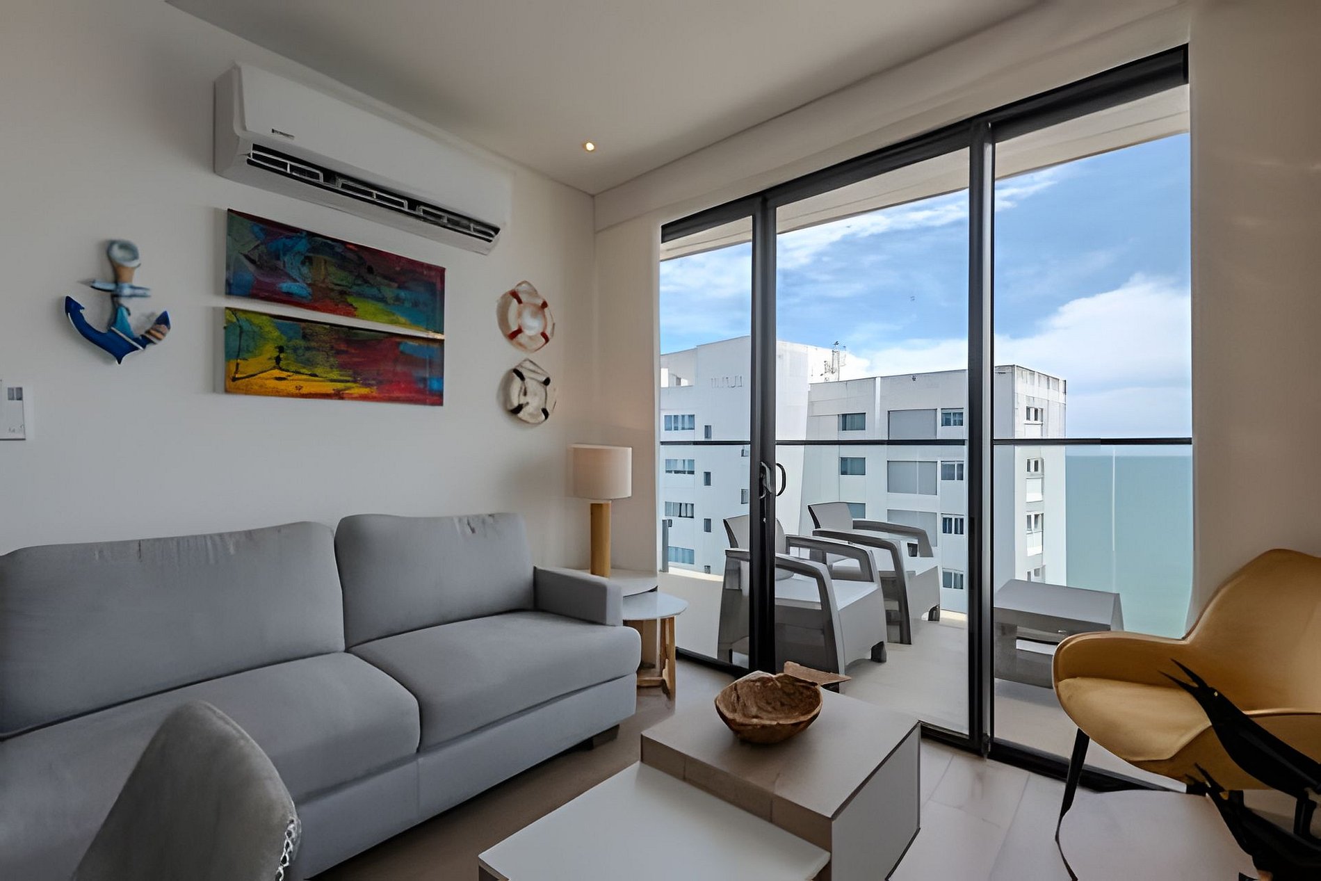 Inmobiliaria Grupo Vita te ofrece este espectacular apartamento para estrenar en el condominio Murano Centro, con una ubicación estratégica, a una cuadra del mar y a 480 metros del centro comercial la Serrezuela y Centro Histórico. Las zonas sociales te dejarán asombrado, con una vista panorámica 360 grados de la ciudad, piscina, coworking, gimnasio, turco y bar. Nuestro apartamento es perfecto para aquellos que buscan comodidad y estilo en una de las ciudades más hermosas de Colombia!