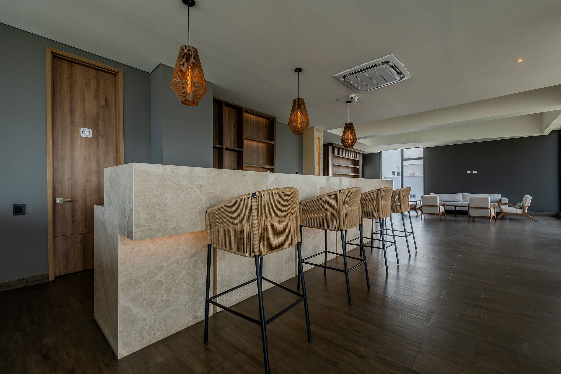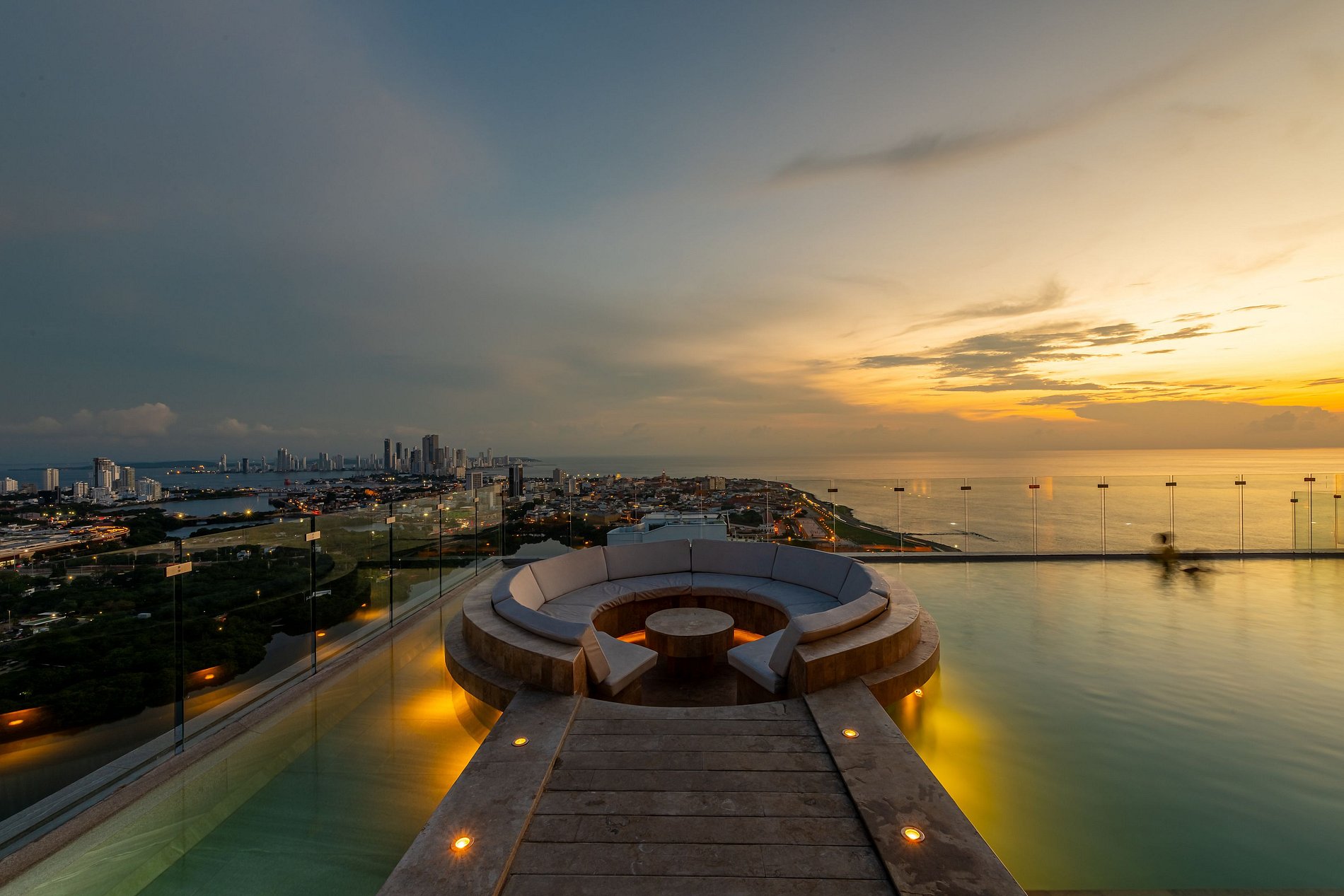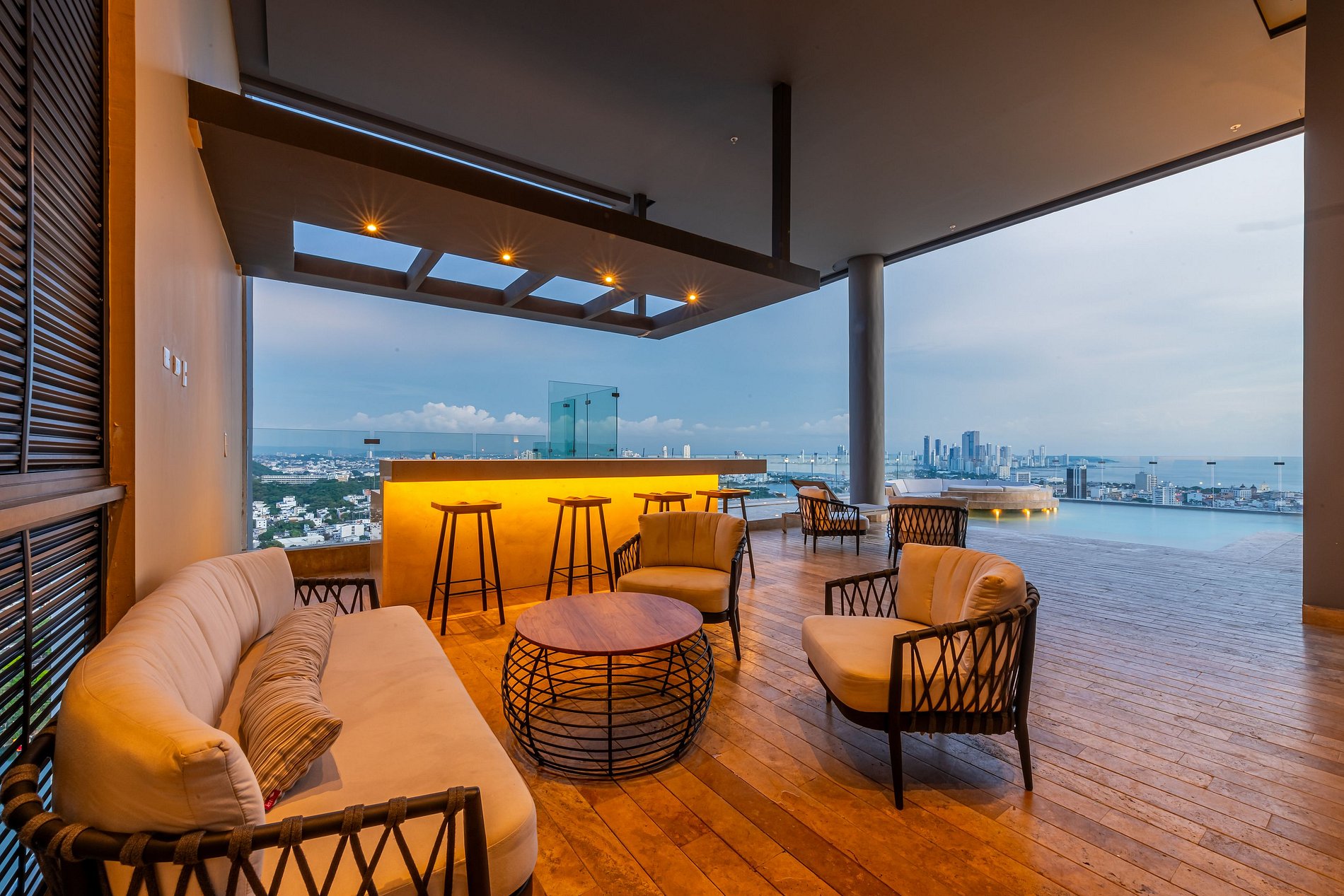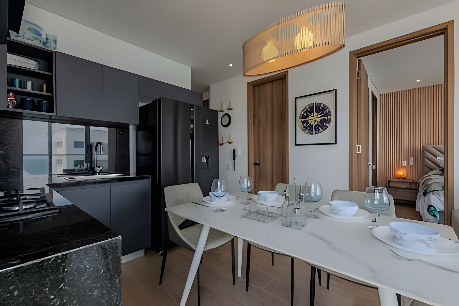 Disfruta este exclusivo y elegante apartamento nuevo en el condominio “Murano Centro” en el piso 27 con vista al Mar Caribe! Disfruta de la espectacular playa que está a una cuadra del edificio! Cuenta con todo lo necesario para pasar una estancia inolvidable. Conexión a internet banda ancha de 300mb. Tiene cocina completamente dotada, lavadora y secadora (2 en 1), calentador de agua, sala de estar con aire acondicionado, baño completo en la zona social, balcón con dos tipos de mobiliario: 4 sillas exteriores y mesa que tiene espacio para conservar el frío, para que disfrutes de una copa de vino con la espectacular vista al Mar Caribe! También hay una sala exterior con mesa de centro para que disfrutes de un café, un desayuno o una charla mientras disfrutas el paisaje! La habitación principal tiene cama queen, smart TV de 55”, aire acondicionado, closet y baño completo. La segunda habitación tiene una cama doble (1.40), smart TV de 44” y aire acondicionado. Ofrecemos almohadas, toallas, sábanas y cobijas, shampoo, acondicionador, jabón corporal y jabón para manos. Nuestro apartamento es ideal para estadías cortas o largas. Disfruta de un ambiente sostenible y eficiente, donde podrás reducir tu consumo de energía y contribuir al cuidado del medio ambiente. ¡Vive de manera responsable y cómoda en este alojamiento lleno de innovación y tecnología! Este apartamento cuenta con un moderno sistema de ahorro de energía tipo hotelero. Al momento de su llegada se le enviará la clave para abrir una caja de seguridad donde se encuentra la tarjeta que abre la cerradura y activa el suministro de energía. No se permiten visitantes, ni cambios o adiciones de huéspedes, sólo podrán ingresar las personas registradas al momento de la reserva.