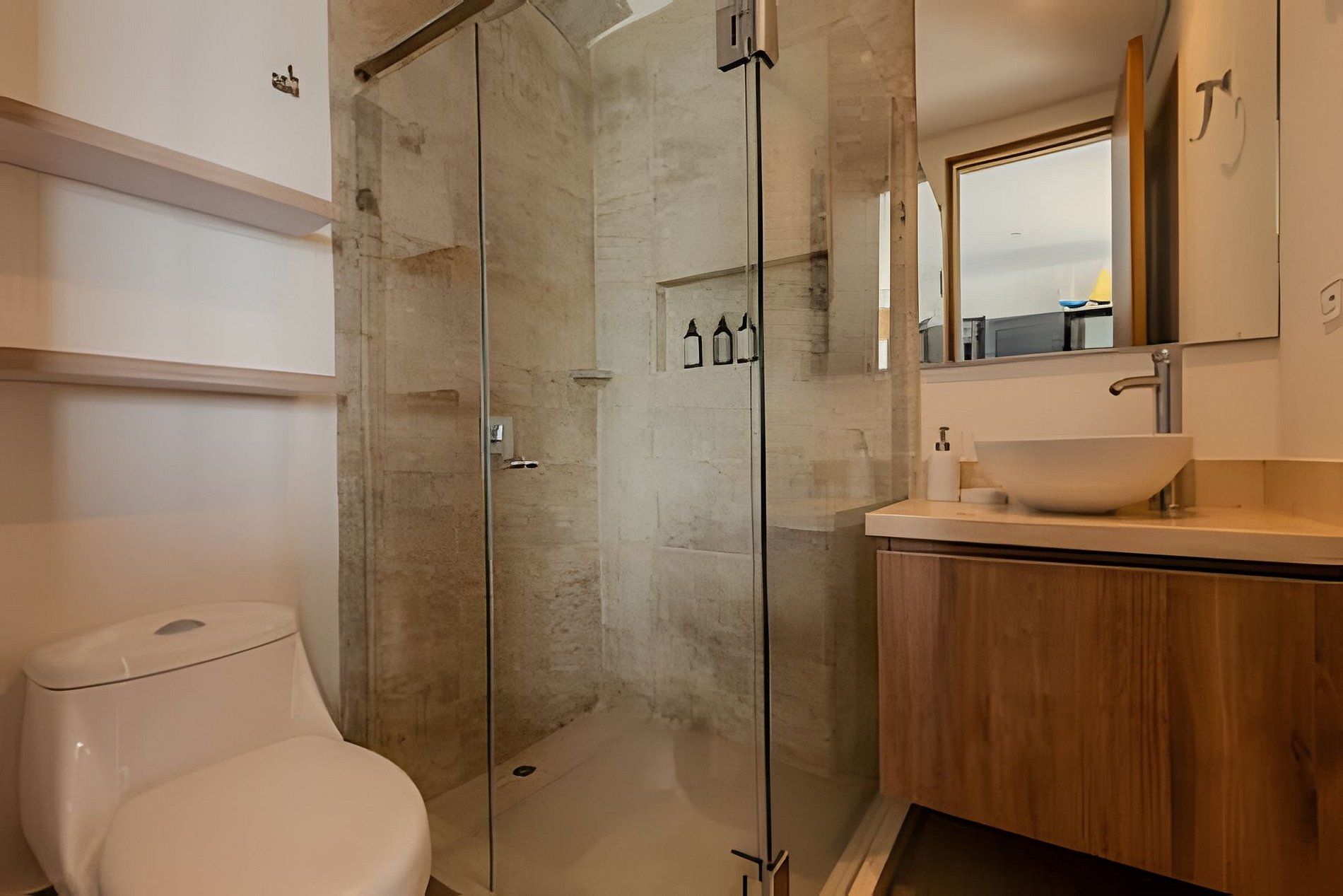 Disfruta este exclusivo y elegante apartamento nuevo en el condominio “Murano Centro” en el piso 27 con vista al Mar Caribe! Disfruta de la espectacular playa que está a una cuadra del edificio! Cuenta con todo lo necesario para pasar una estancia inolvidable. Conexión a internet banda ancha de 300mb. Tiene cocina completamente dotada, lavadora y secadora (2 en 1), calentador de agua, sala de estar con aire acondicionado, baño completo en la zona social, balcón con dos tipos de mobiliario: 4 sillas exteriores y mesa que tiene espacio para conservar el frío, para que disfrutes de una copa de vino con la espectacular vista al Mar Caribe! También hay una sala exterior con mesa de centro para que disfrutes de un café, un desayuno o una charla mientras disfrutas el paisaje! La habitación principal tiene cama queen, smart TV de 55”, aire acondicionado, closet y baño completo. La segunda habitación tiene una cama doble (1.40), smart TV de 44” y aire acondicionado. Ofrecemos almohadas, toallas, sábanas y cobijas, shampoo, acondicionador, jabón corporal y jabón para manos. Nuestro apartamento es ideal para estadías cortas o largas. Disfruta de un ambiente sostenible y eficiente, donde podrás reducir tu consumo de energía y contribuir al cuidado del medio ambiente. ¡Vive de manera responsable y cómoda en este alojamiento lleno de innovación y tecnología! Este apartamento cuenta con un moderno sistema de ahorro de energía tipo hotelero. Al momento de su llegada se le enviará la clave para abrir una caja de seguridad donde se encuentra la tarjeta que abre la cerradura y activa el suministro de energía. No se permiten visitantes, ni cambios o adiciones de huéspedes, sólo podrán ingresar las personas registradas al momento de la reserva.