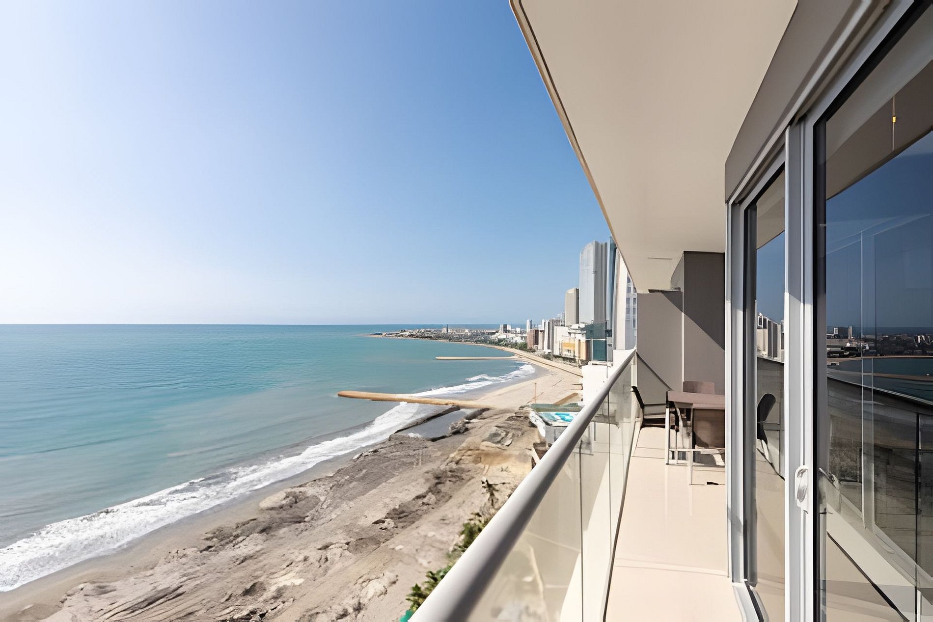 Inmobiliaria Grupo Vita te ofrece este moderno apartamento en el condominio turístico más exclusivo y seguro de Cartagena, frente al mar, ubicado en la mejor zona de la ciudad, a solo unos pasos de las playas de Bocagrande; caminando podrás encontrar restaurantes, supermercados, parques y centros comerciales. Disfruta de la espectacular playa que está al frente del edificio! Nuestra prioridad como Super Host es que tengas la mejor experiencia! No dudes en contactarnos!