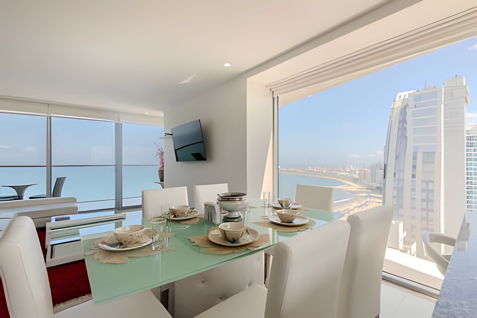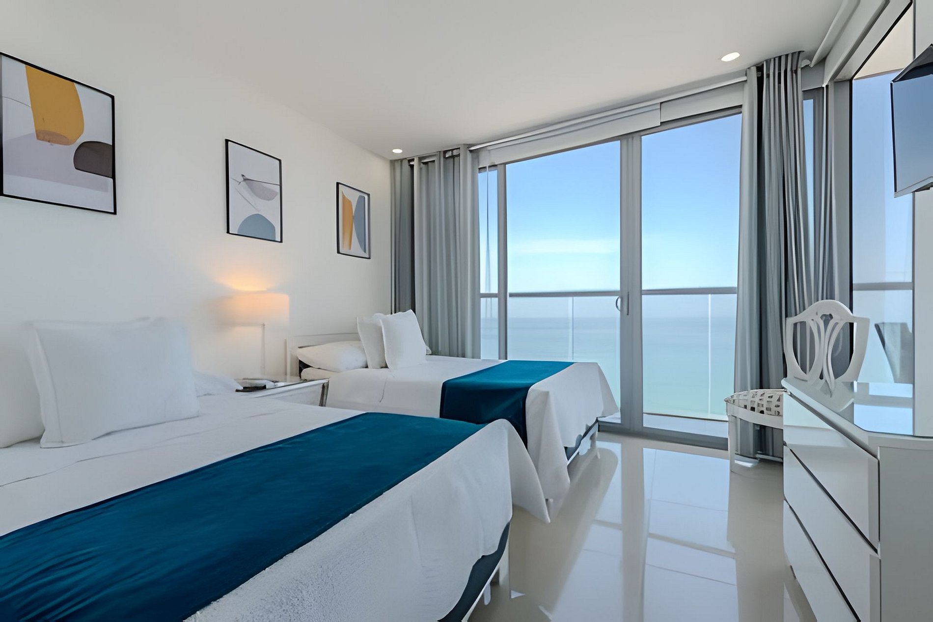 Disfruta con tu familia o amigos de este encantador apartamento en el piso 22 con vistas panorámicas al mar, el centro histórico y la bahía de Cartagena. El edificio "Morros City" se encuentra en "Bocagrande", uno de los barrios mejor ubicados y más exclusivos de la ciudad, disfrutando de acceso directo a la playa, restaurantes, centros comerciales, parques, farmacias, supermercados, casinos. A 5 minutos en taxi desde el centro histórico. Hermoso y moderno departamento, cuenta con todas las comodidades necesarias para que tengas una estancia inolvidable. Disfruta de la espectacular vista panorámica que este apartamento te ofrece a ti y todas las comodidades de este condominio. ¡La playa está enfrente del edificio! Cocina completa, comedor y sala de estar con aire acondicionado, televisión. Espectacular balcón con un comedor al aire libre donde puedes disfrutar de un café, desayunar o ver una hermosa puesta de sol. Habitación principal con cama queen, televisión, baño completo, armario y acceso al balcón. Habitación 2: aire acondicionado, televisión, dos camas de 1.20m, acceso al balcón, baño completo y armario. Habitación 3: aire acondicionado, cama queen, baño completo y armario. Zona de labores con lavadora, secadora y calentador de agua. Si necesitas servicio de limpieza durante tu estancia, debes notificárnoslo con 24 horas de anticipación, este servicio tiene un costo adicional. Conexión a Internet de 350 MB de wifi de fibra óptica que te permite una conexión rápida y estable!