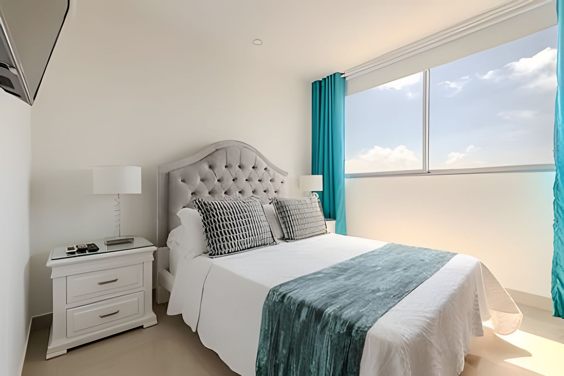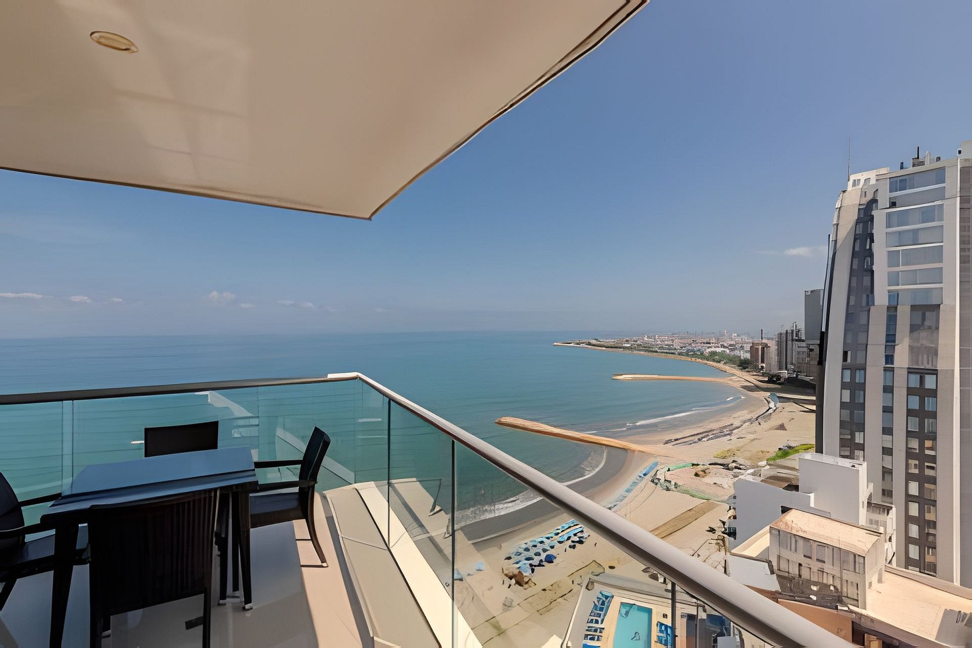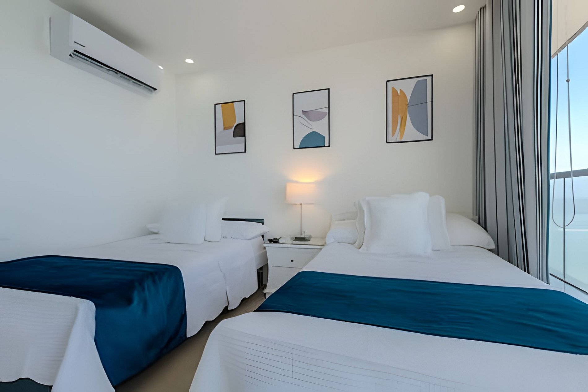 Disfruta con tu familia o amigos de este encantador apartamento en el piso 22 con vistas panorámicas al mar, el centro histórico y la bahía de Cartagena. El edificio "Morros City" se encuentra en "Bocagrande", uno de los barrios mejor ubicados y más exclusivos de la ciudad, disfrutando de acceso directo a la playa, restaurantes, centros comerciales, parques, farmacias, supermercados, casinos. A 5 minutos en taxi desde el centro histórico. Hermoso y moderno departamento, cuenta con todas las comodidades necesarias para que tengas una estancia inolvidable. Disfruta de la espectacular vista panorámica que este apartamento te ofrece a ti y todas las comodidades de este condominio. ¡La playa está enfrente del edificio! Cocina completa, comedor y sala de estar con aire acondicionado, televisión. Espectacular balcón con un comedor al aire libre donde puedes disfrutar de un café, desayunar o ver una hermosa puesta de sol. Habitación principal con cama queen, televisión, baño completo, armario y acceso al balcón. Habitación 2: aire acondicionado, televisión, dos camas de 1.20m, acceso al balcón, baño completo y armario. Habitación 3: aire acondicionado, cama queen, baño completo y armario. Zona de labores con lavadora, secadora y calentador de agua. Si necesitas servicio de limpieza durante tu estancia, debes notificárnoslo con 24 horas de anticipación, este servicio tiene un costo adicional. Conexión a Internet de 350 MB de wifi de fibra óptica que te permite una conexión rápida y estable!