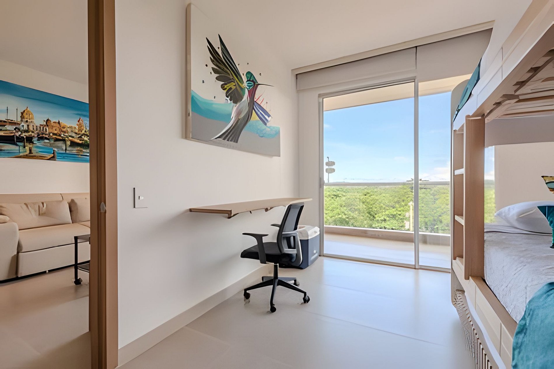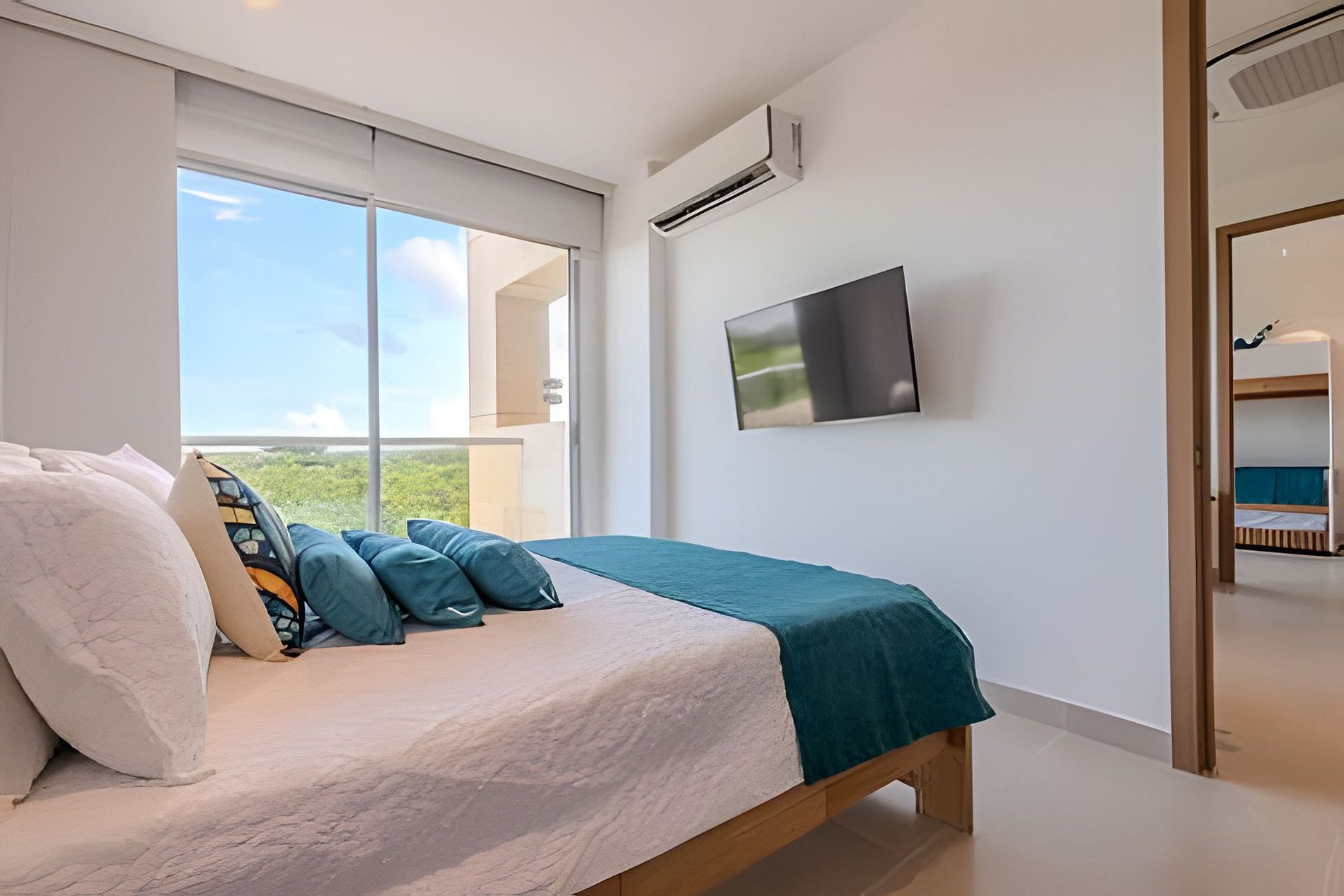 Grupo Vita te invita a reservar nuestro alojamiento ubicado en la zona norte de Cartagena, a solo 15 minutos del centro histórico, en este espectacular condominio con gigantesca laguna cristalina y playa blanca! Podrás descansar, realizar deportes acuáticos, tomar el sol, ideal para viajeros que buscan lujo, confort y tranquilidad! NOTA: Condominio en construcción, apartamento 100% habilitado y zonas comunes disponibles en gran parte. Bienvenido a nuestro hermoso apartamento en Baia Kristal, Nuestro espacio está cuidadosamente decorado creando un ambiente acogedor y especial. Te ofrecemos todos los servicios y comodidades necesarias para una estancia inolvidable. Nuestro apartamento tiene dos habitaciones amplias, la primera con cama Queen Smartv, aire acondicionado y baño privado. La segunda habitación tiene acceso al balcón, un escritorio y silla cómodos para trabajar, una litera tamaño sencillo con cama nido (cama que se saca en la parte de abajo) para acomodar a tres personas, baño con acceso compartido desde la habitación y la zona común del apartamento. En la sala un espectacular sofá cama amplio y cómodo, Smartv, cocina integrada completamente dotada, aire acondicionado en las habitaciones y sala, zona de labores con lavadora y secadora y un hermoso balcón con mobiliario exterior para que disfrutes una relajante vista al bosque tropical. Nota: aunque el condominio Baia Kristal aún está en construcción, el apartamento esta completamente terminado y amoblado, podrás disfrutar plenamente de la laguna cristalina y sus actividades, como kayak, ten en cuenta que los trabajos en el condominio se hacen del lunes a sábado de 8am a 6pm, agradecemos tu comprensión. Ingresarán al apartamento a través de código de cerradura electrónica que se les enviará al momento del check in Nuestra comunicación será principalmente a través del chat de la plataforma.