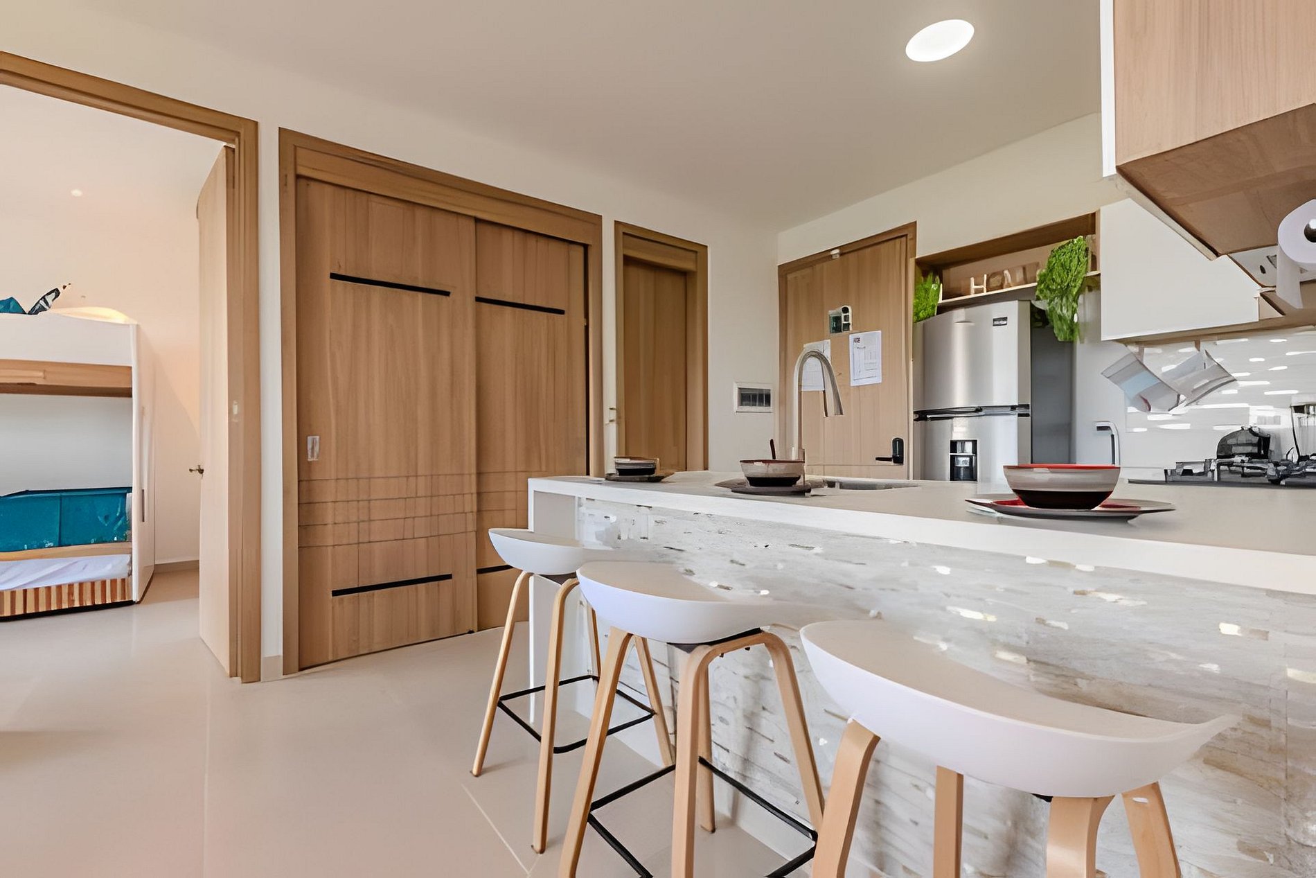 Bienvenido a nuestro hermoso apartamento en Baia Kristal, Nuestro espacio está cuidadosamente decorado creando un ambiente acogedor y especial. Te ofrecemos todos los servicios y comodidades necesarias para una estancia inolvidable. Nuestro apartamento tiene dos habitaciones amplias, la primera con cama Queen Smartv, aire acondicionado y baño privado. La segunda habitación tiene acceso al balcón, un escritorio y silla cómodos para trabajar, una litera tamaño sencillo con cama nido (cama que se saca en la parte de abajo) para acomodar a tres personas, baño con acceso compartido desde la habitación y la zona común del apartamento. En la sala un espectacular sofá cama amplio y cómodo, Smartv, cocina integrada completamente dotada, aire acondicionado en las habitaciones y sala, zona de labores con lavadora y secadora y un hermoso balcón con mobiliario exterior para que disfrutes una relajante vista al bosque tropical. Nota: aunque el condominio Baia Kristal aún está en construcción, el apartamento esta completamente terminado y amoblado, podrás disfrutar plenamente de la laguna cristalina, ten en cuenta que los trabajos en el condominio se hacen del lunes a sábado de 8am a 6pm, agradecemos tu comprensión.