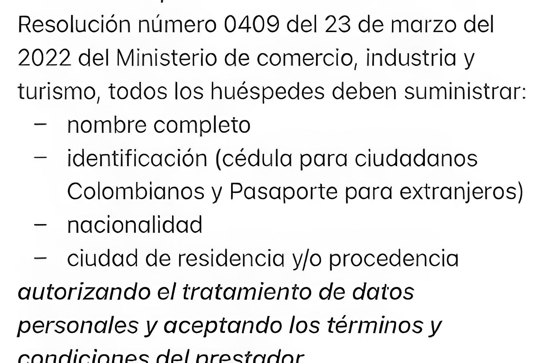 No se permiten visitantes, solo podrán ingresar las personas registradas antes del check in, no se permiten modificaciones, cambios o adiciones de huéspedes. No se permiten fiestas • No se permiten mascotas • Si hay huéspedes que son menores de edad y NO están acompañados por sus padres, deberán presentar en recepción un permiso AUTENTICADO por parte de los padres, y documento físico original de registro civil de nacimiento, de lo contrario no permitirán su ingreso. • Cualquier daño causado o artículo faltante a las pertenencias de la propiedad deberá ser notificado y será cobrado. Al reservar nuestra propiedad aceptas estas reglas.