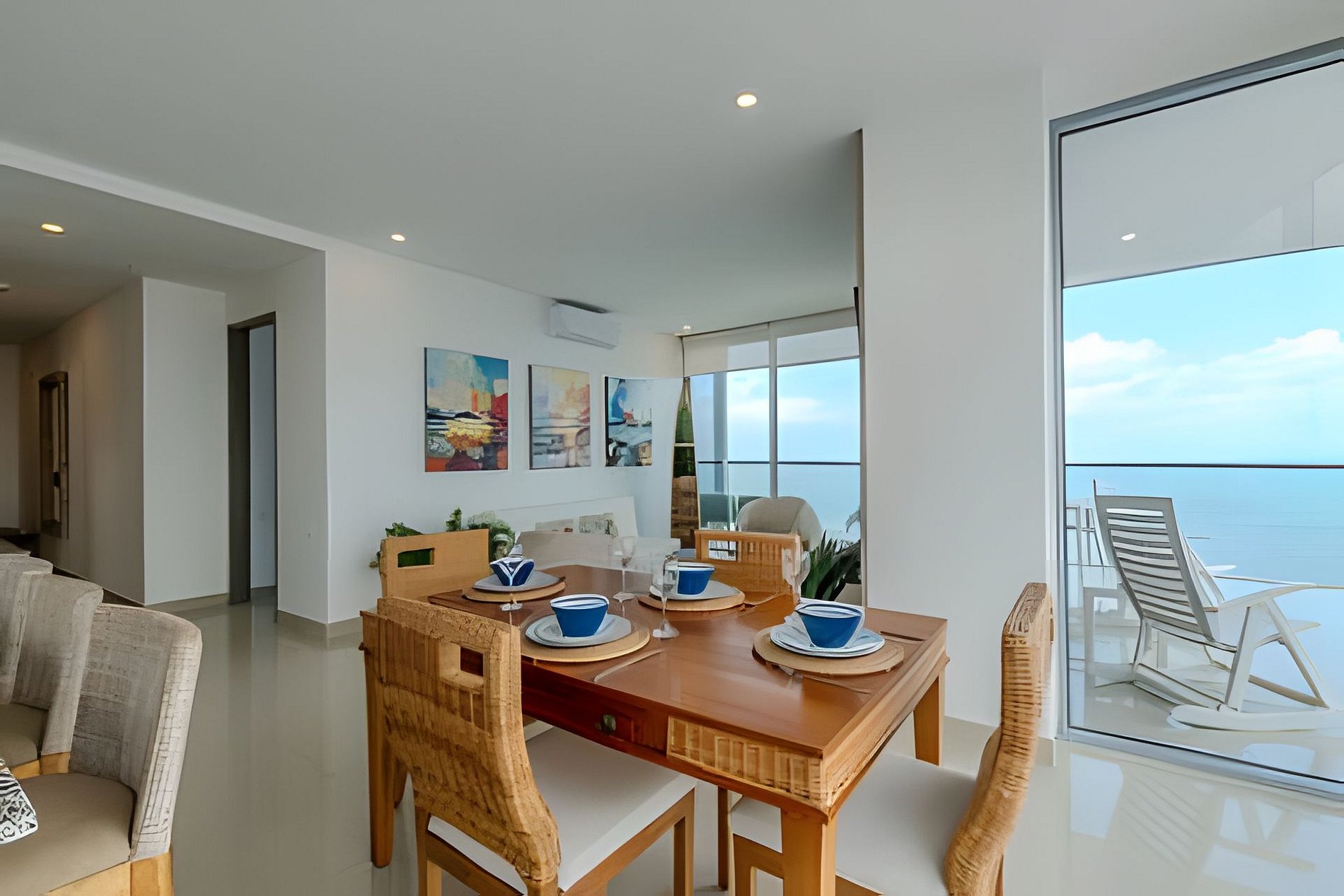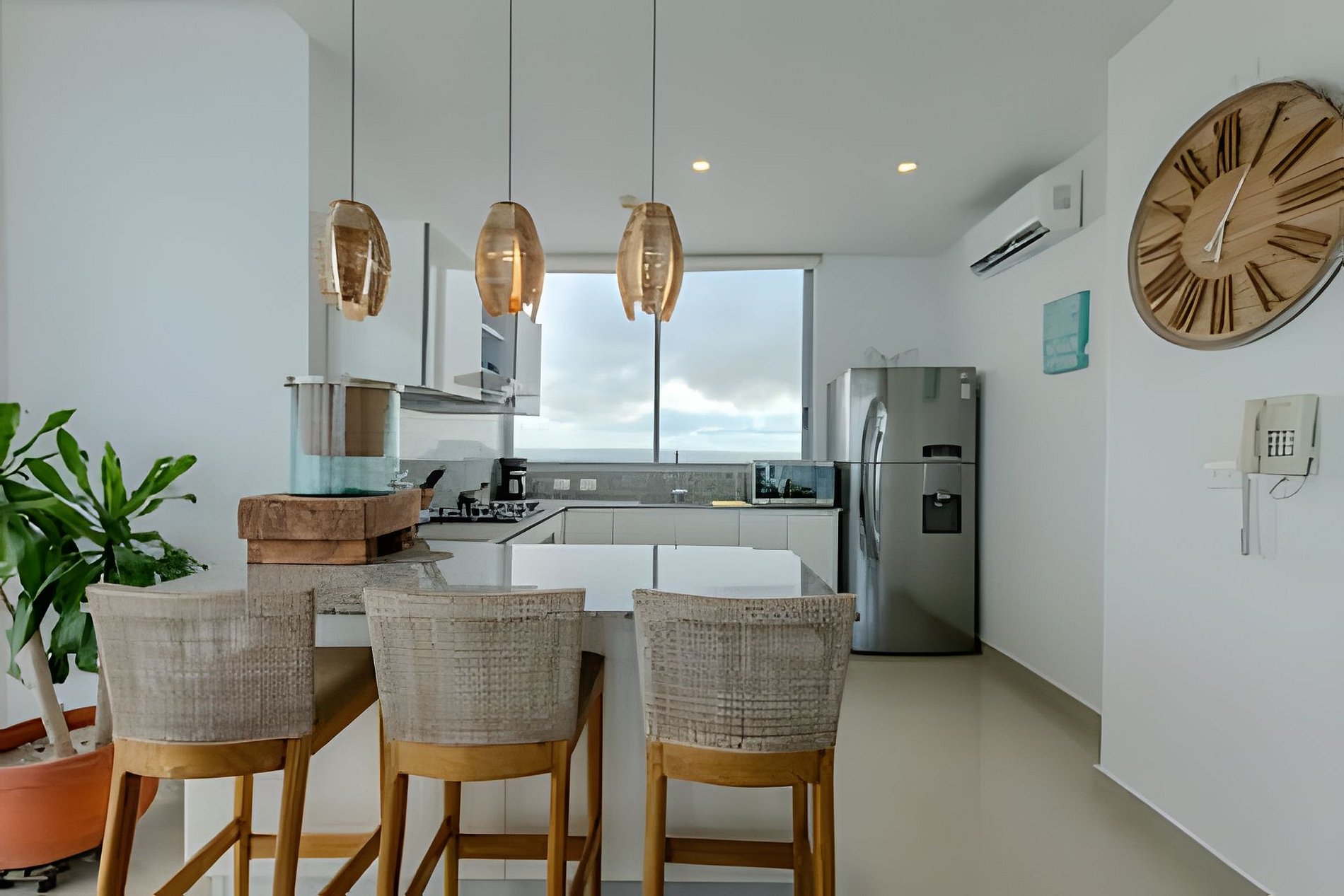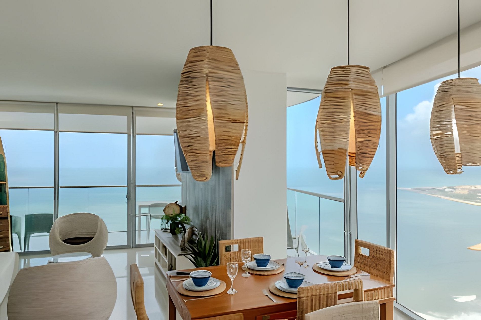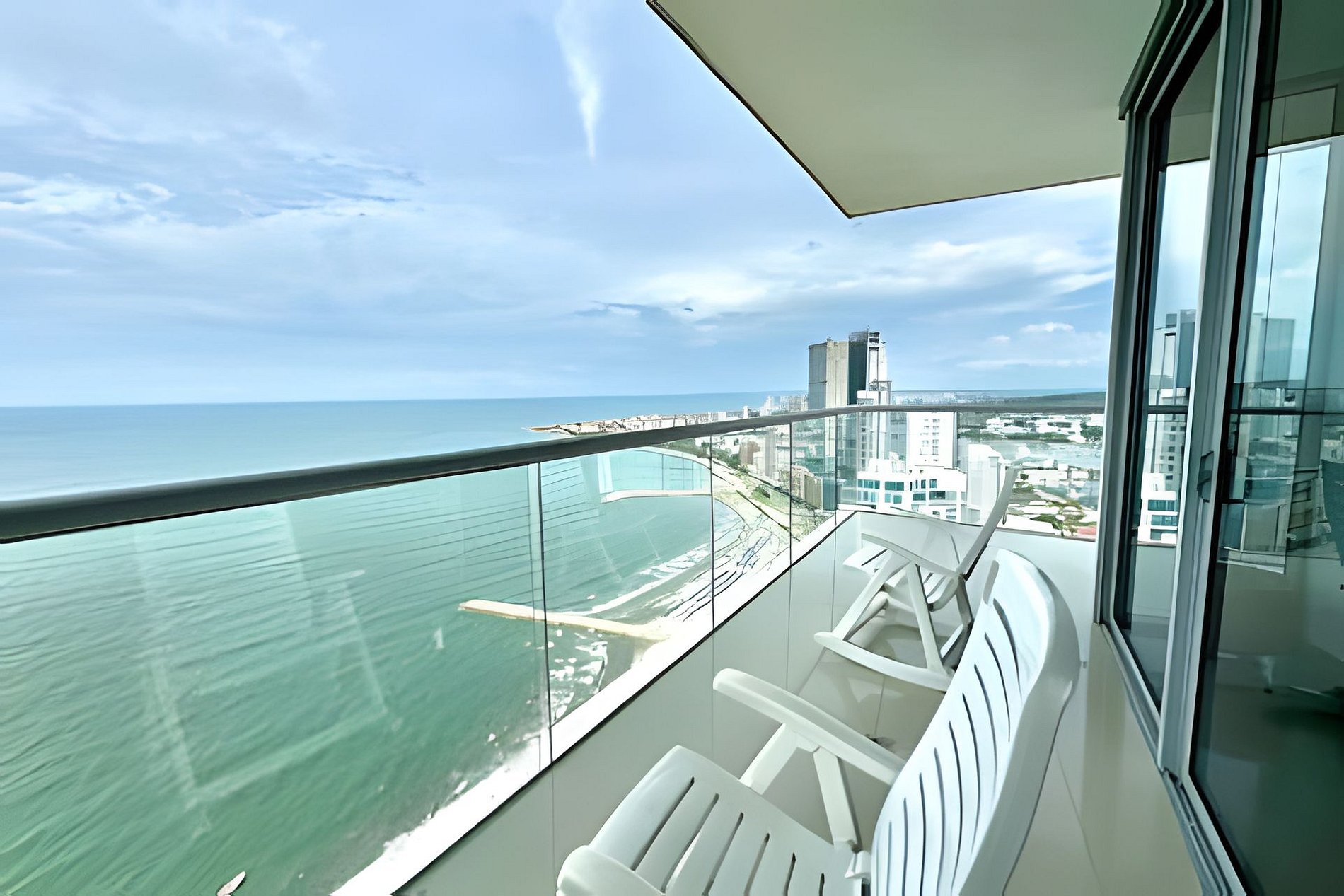 Diseño impresionante de doble altura, con ventanales de piso a techo que resaltan la belleza y exclusividad de esta unidad! Disfruta de su impresionante vista panorámica, siéntete en la cima del mundo alojándote en este Penthouse del piso 40 con un espacio amplio, abierto, luminoso y una decoración cálida y elegante! Nuestro Penthouse tiene 2 acogedoras habitaciones ideales para descansar después de un día explorando la ciudad amurallada. Cada una de las habitaciones cuenta con un baño completo para proporcionar total privacidad y comodidad a todos los huéspedes. El balcón es uno de los espacios más destacados de este apartamento, ya que ofrece una vista inigualable al mar y una espectacular vista panorámica de la ciudad amurallada, la bahía y sus alrededores. iNo hay nada como disfrutar de una puesta de sol, un desayuno, tomar una taza de café o una copa de vino en este espacio al aire libre! ¡También puedes distrutar de la espectacular playa que esta frente al edificio! Amoblado y equipado con todo lo que puedas necesitar, sala de estar con aire acondicionado, Smartv, comedor, cocina dotada, internet fibra óptica de 350mb que garantiza una conexión rápida y estable. Dormitorio principal con aire acondicionado, Smartv, cama 1.80m, baño completo, armario y acceso al balcón. Habitación 2: aire acondicionado, SmarTv, cama nido doble (se le saca otra cama por debajo, ver foto) baño completo y armario. Cuarto de lavado con lavadora, secadora y calentador de agua. Si necesitas servicio de limpieza durante tu estancia, debes solicitarlo con 24 horas de anticipación. Este servicio tiene un costo adicional. Para tu comodidad, también incluye un garaje para que puedas estacionar tu vehículo de forma gratuita y segura (informa al momento de reservar si vas a traer un vehículo). El condominio cuenta con seguridad las 24 horas, conserje y recepción con personal bilingüe para garantizar la tranquilidad de todos los huéspedes. Tiene una central eléctrica en caso de emergencia. En resumen, este apartamento lo tiene todo: ubicación privilegiada, grandes espacios, acabados modernos y una amplia gama de características internas y externas que lo hacen ideal para tener la mejor estancia. ¡No te pierdas la oportunidad de alojarte en este hermoso y exclusivo apartamento en Cartagena! Haz tu reservación hoy y prepárate para vivir unas vacaciones inolvidables en Colombia, ¡estaremos encantados de ayudarte! No se permiten visitantes en este condominio, no se permiten cambios, ni adiciones en la lista de huéspedes, sólo pueden ingresar las personas mencionadas al momento de la reserva.