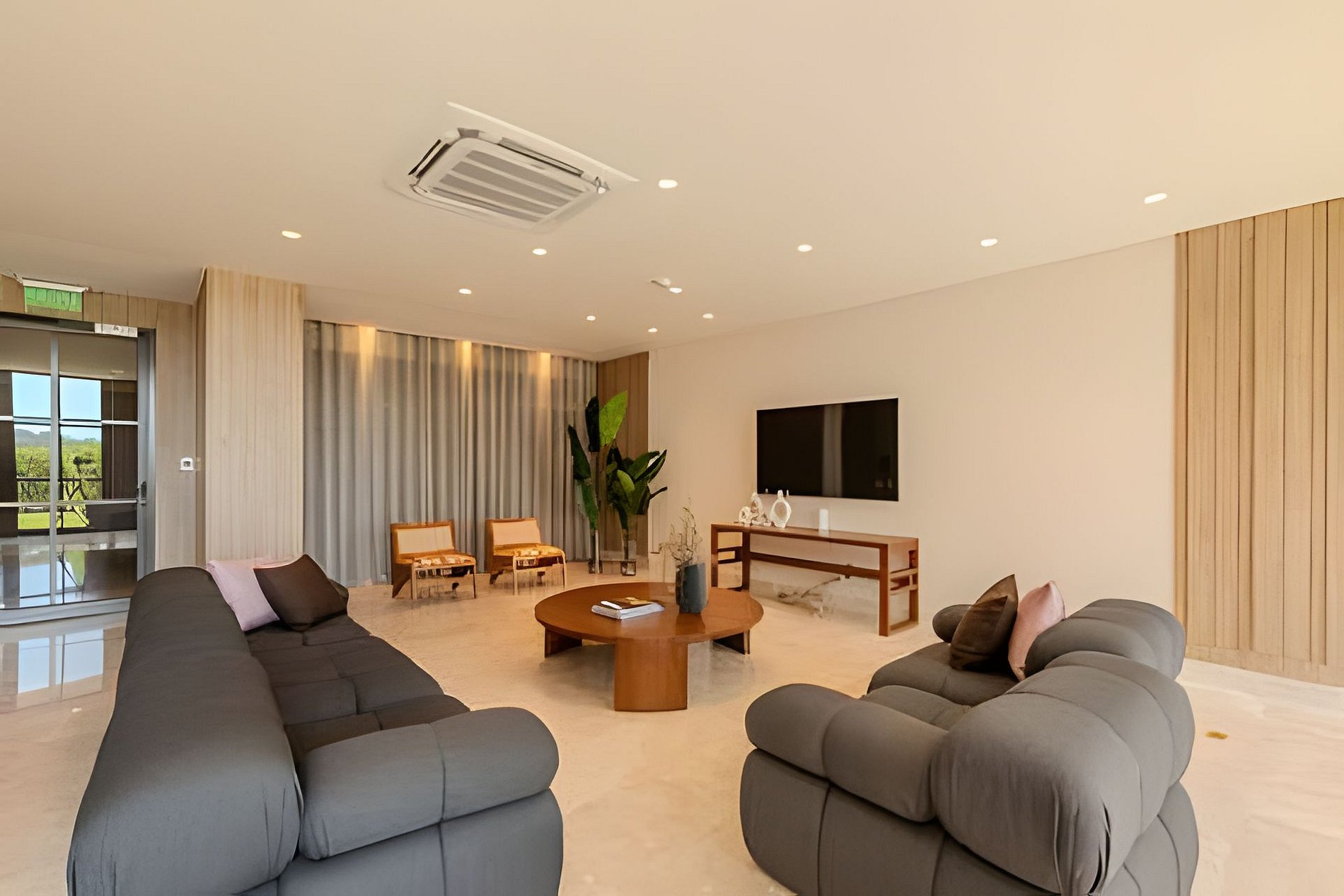 • Zona social moderna y acogedora, con sala equipada con Smart TV, Sofá Cama Queen y muebles elegantes para tu comodidad.