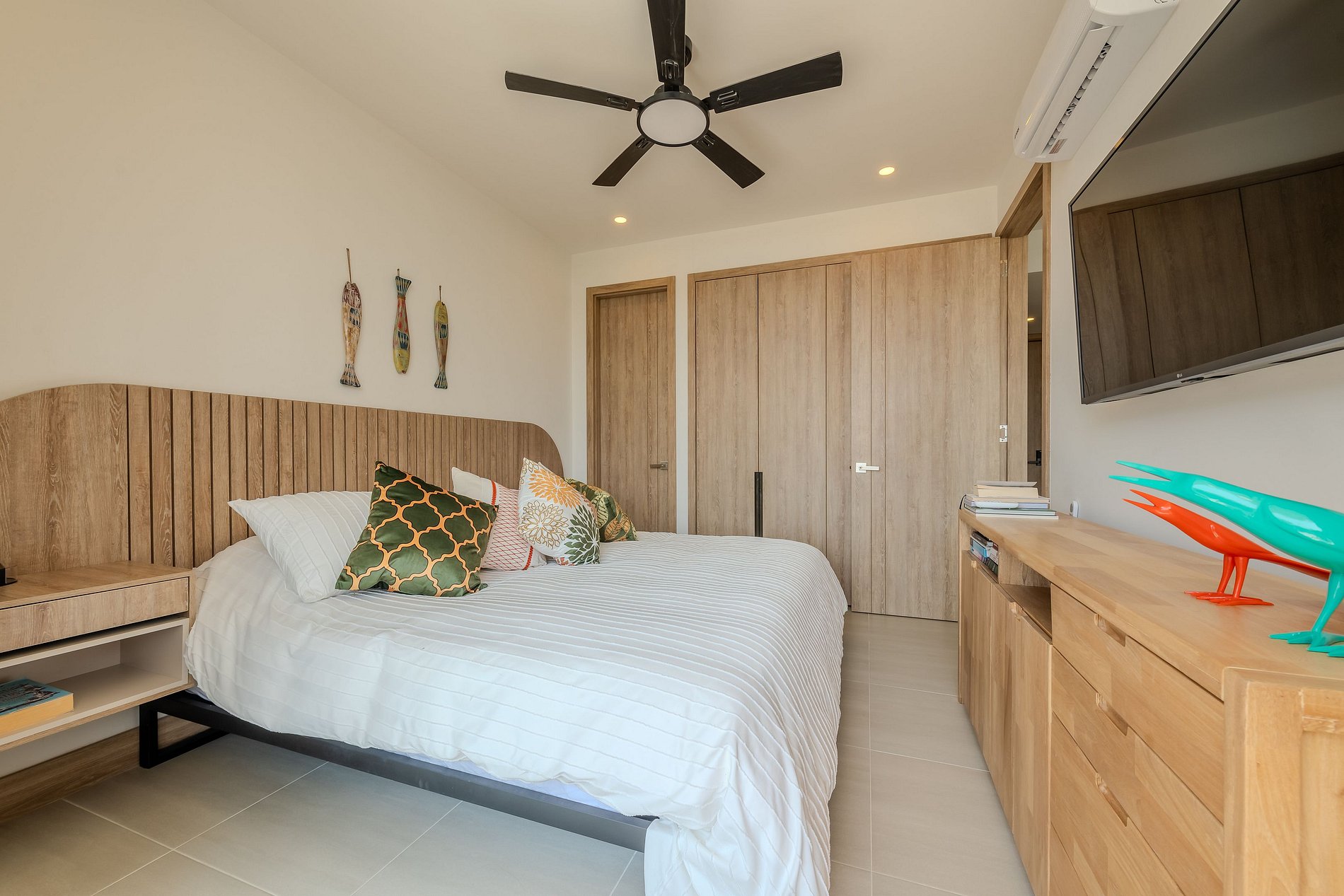 • Habitación principal con cama King, baño privado, aire acondicionado, ventilador de techo y Smart TV con Netflix, Disney+ y Amazon Prime.