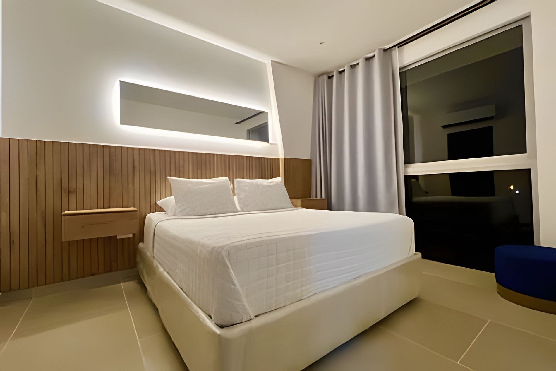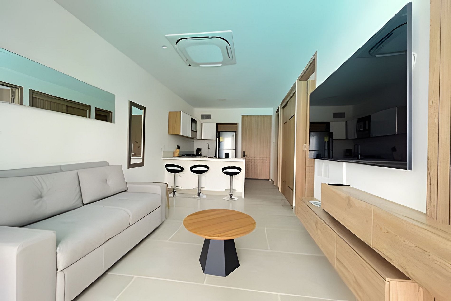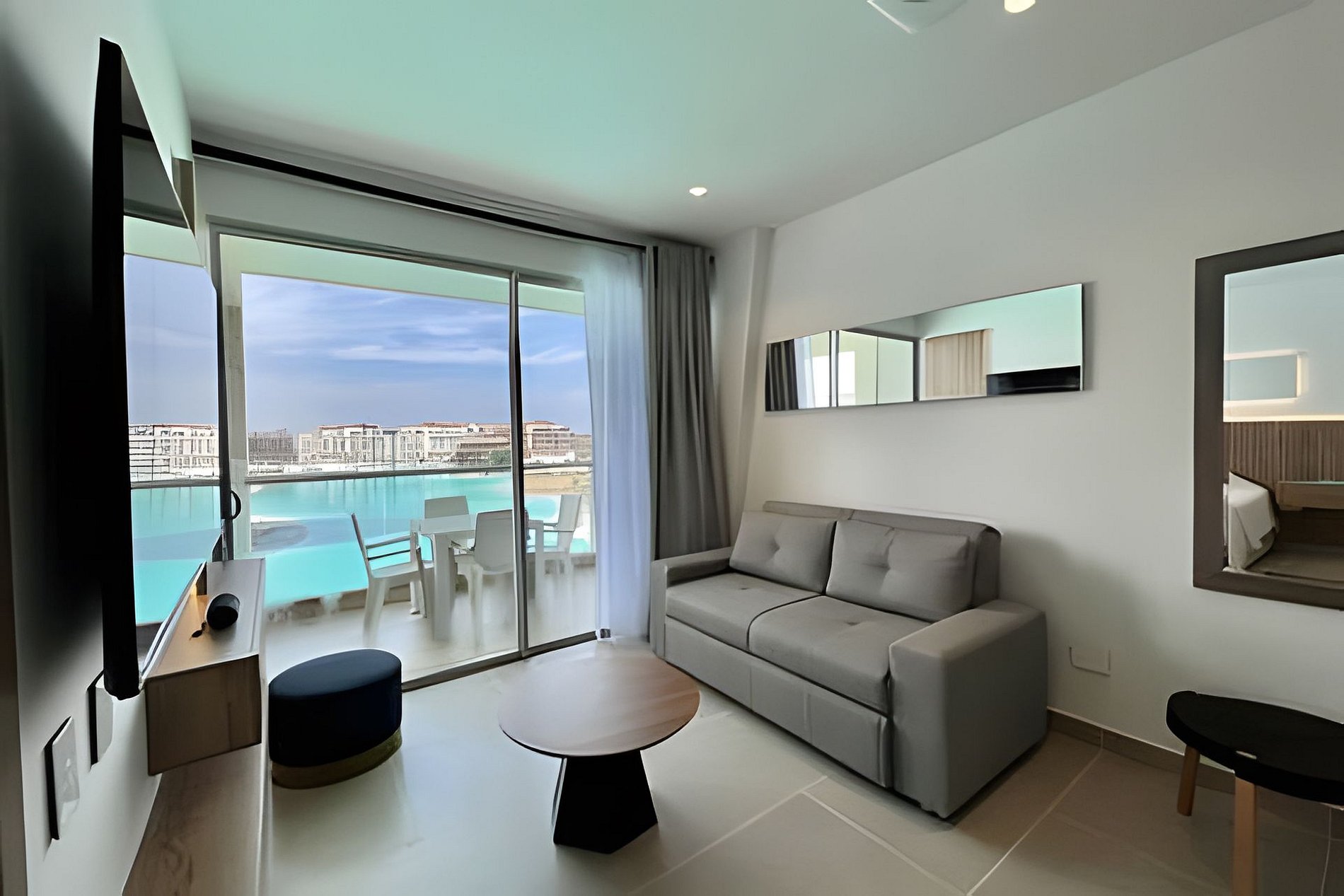 Bienvenido a nuestro exclusivo alojamiento en “Baia Kristal”, diseñado para ofrecerte una experiencia única y lujosa. Nuestro espacio está cuidadosamente decorado con un diseño sofisticado y acabados de alta calidad, creando un ambiente acogedor y elegante. Te ofrecemos todos los servicios y comodidades necesarias para una estancia ¡Inolvidable! Te invitamos a vivir una experiencia de lujo y confort, nuestro apartamento tiene una habitación, con cama Queen, en la sala un espectacular sofá cama Doble y muy cómodo, Smart TV de 65”, cocina integrada completamente dotada. Hay aire acondicionado en la habitación y en la sala de estar, zona de labores con lavadora y secadora, y un hermoso balcón con mobiliario exterior para que disfrutes una vista increíble a la laguna cristalina y playa blanca!. Nota: aunque el condominio Baia Kristal aún está en construcción, el apartamento está completamente terminado y amoblado, podrás disfrutar plenamente de la laguna cristalina y sus actividades, como el kayak, ten en cuenta que los trabajos en el condominio se hacen del lunes a sábado de 8am a 6pm, agradecemos tu comprensión.