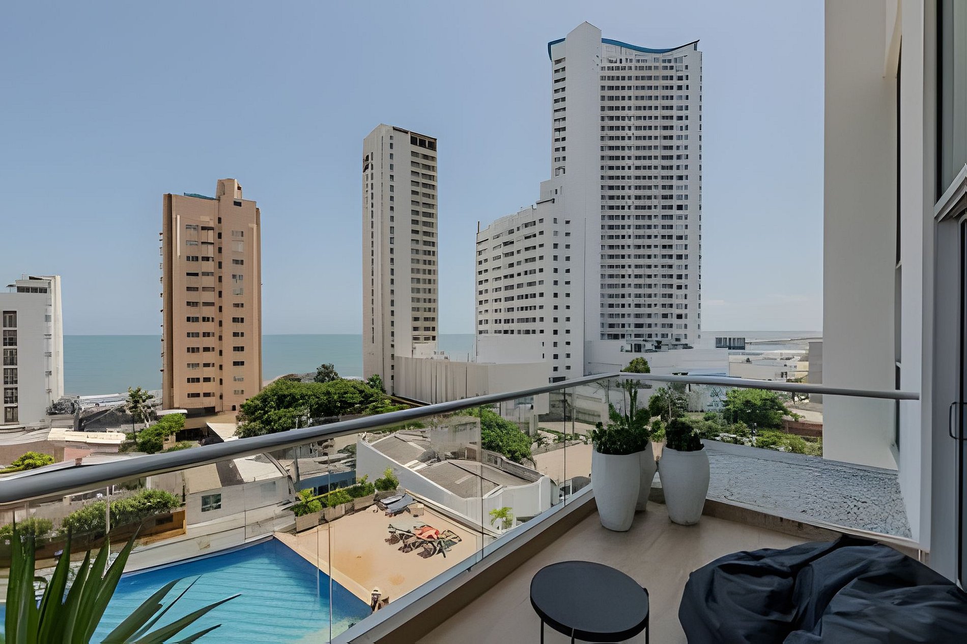 Disfrute al máximo su estadía en Cartagena mientras pasa tiempo en este nuevo apartamento duplex, Dos (2) habitaciones con con impresionantes vistas del océano. La ubicación perfecta en el barrio de Marbella, cerca de todo lo que ofrece la ciudad en una zona residencial, a solo unos pasos de la playa, restaurantes, droguerías y supermercados, será un placer tenerte de huéspedes en nuestro hermoso alojamiento. El condominio ofrece tres piscinas, un gimnasio, parque de niños Baño turco y Sauna.